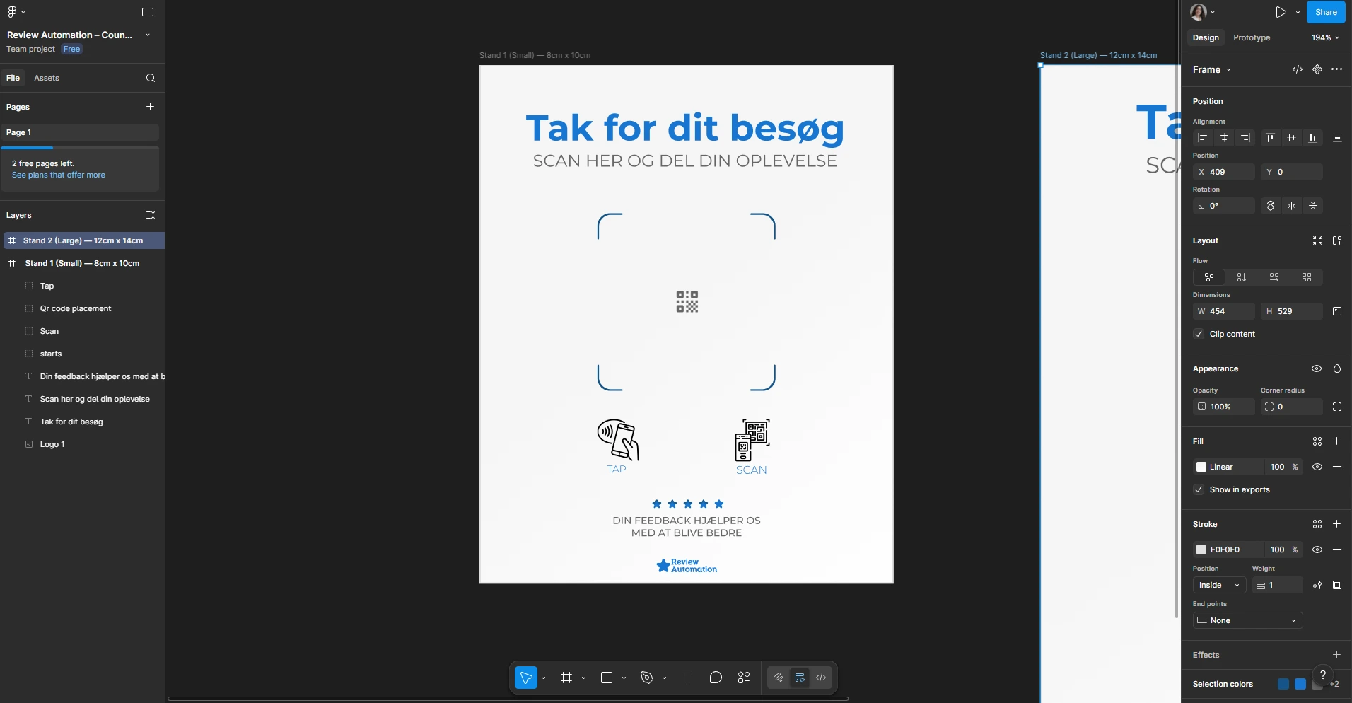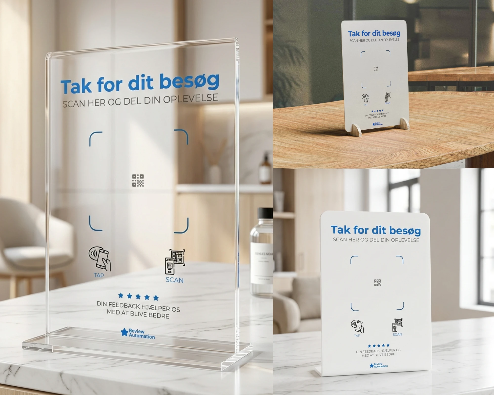 A B2B SaaS brand required a new range of premium counter stands to aid businesses in collecting Google reviews via a QR code or NFC touch. My task was to take a draft of the existing design and transform it into a print-ready version that would convert well within a clinic, salon, or restaurant environment.