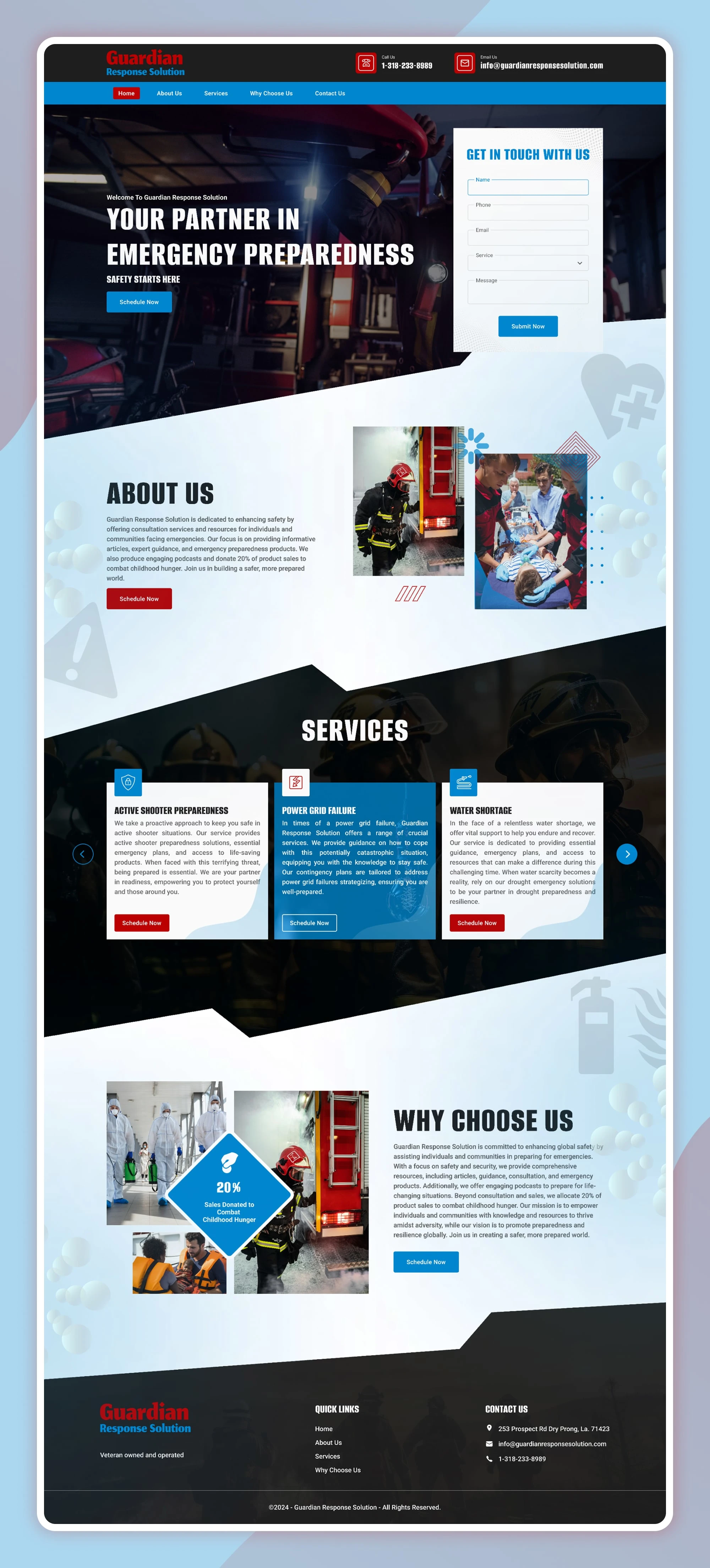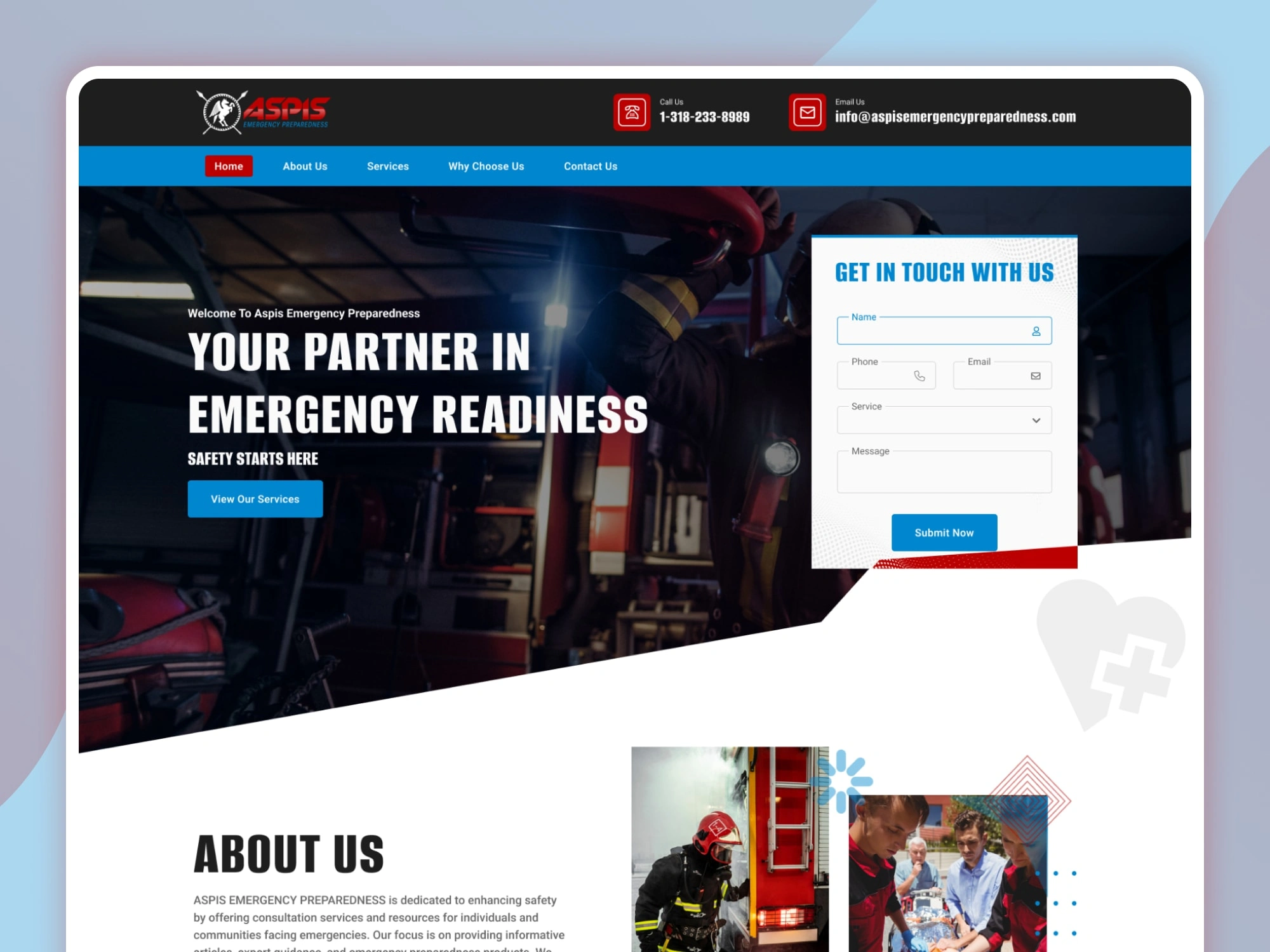 ๐จ Bold, commanding hero โ "Your Partner In Emergency Readiness โ Safety Starts Here" โ direct, clear and deeply reassuring