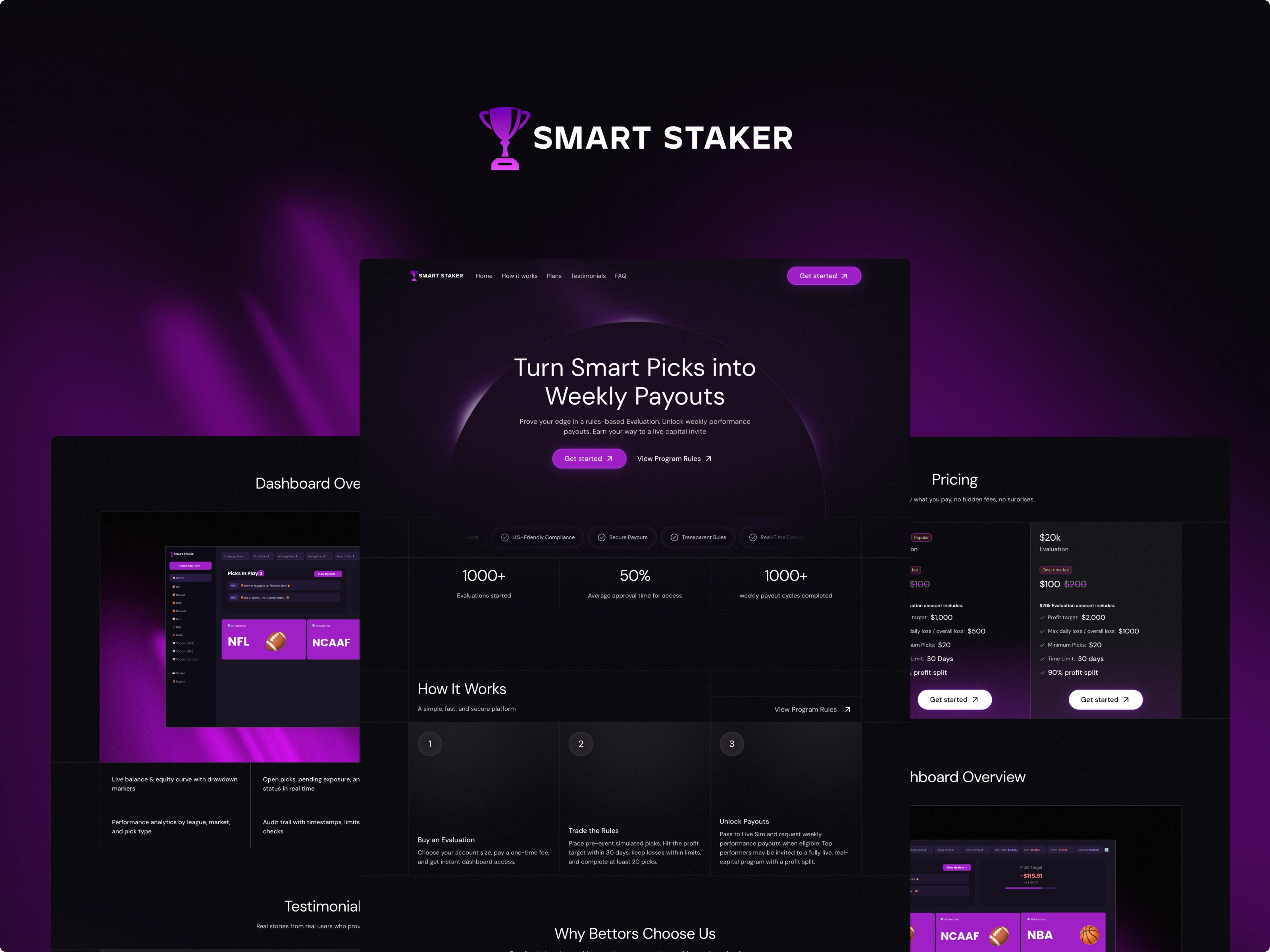 SmartStakes Futuristic purple-planet design with responsive, fast, and SEO-optimized showcasing AI analytics, SmartStakes benefits, and easy customization