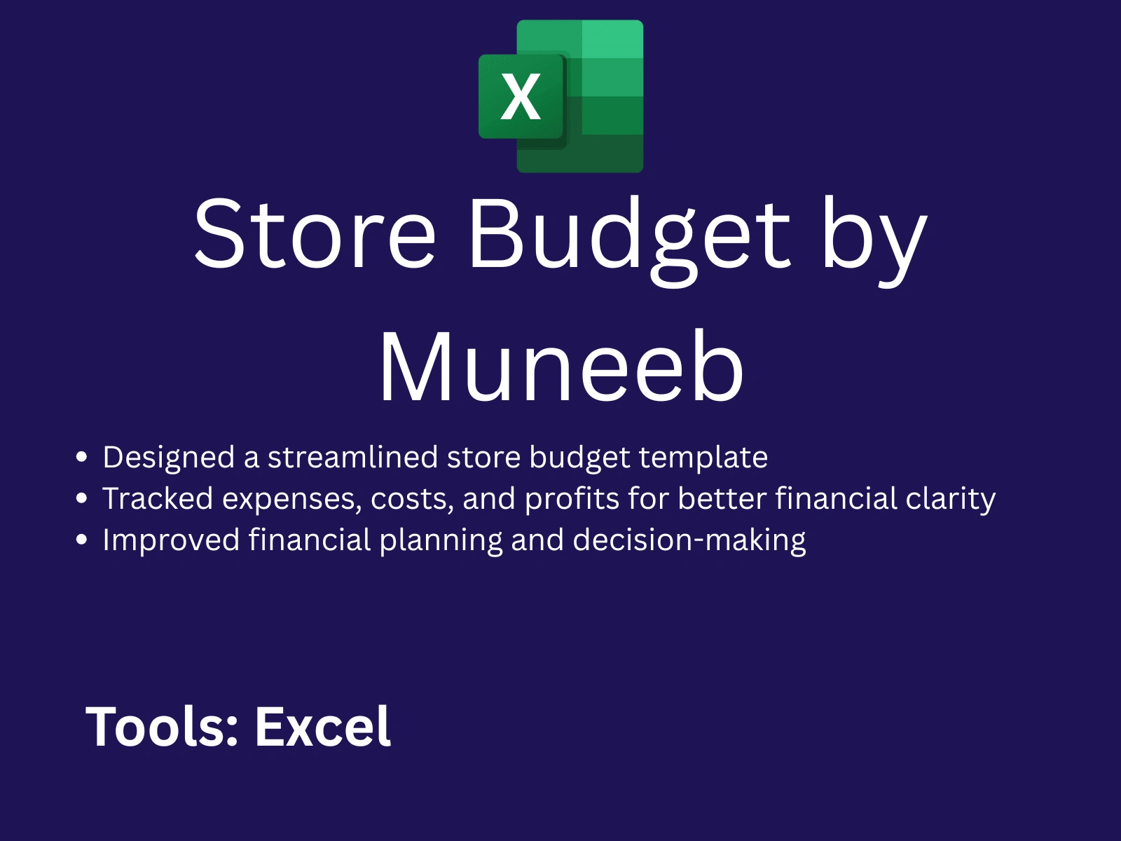 Designed a streamlined store budget template for tracking expenses, costs, and profits, improving financial clarity and planning.