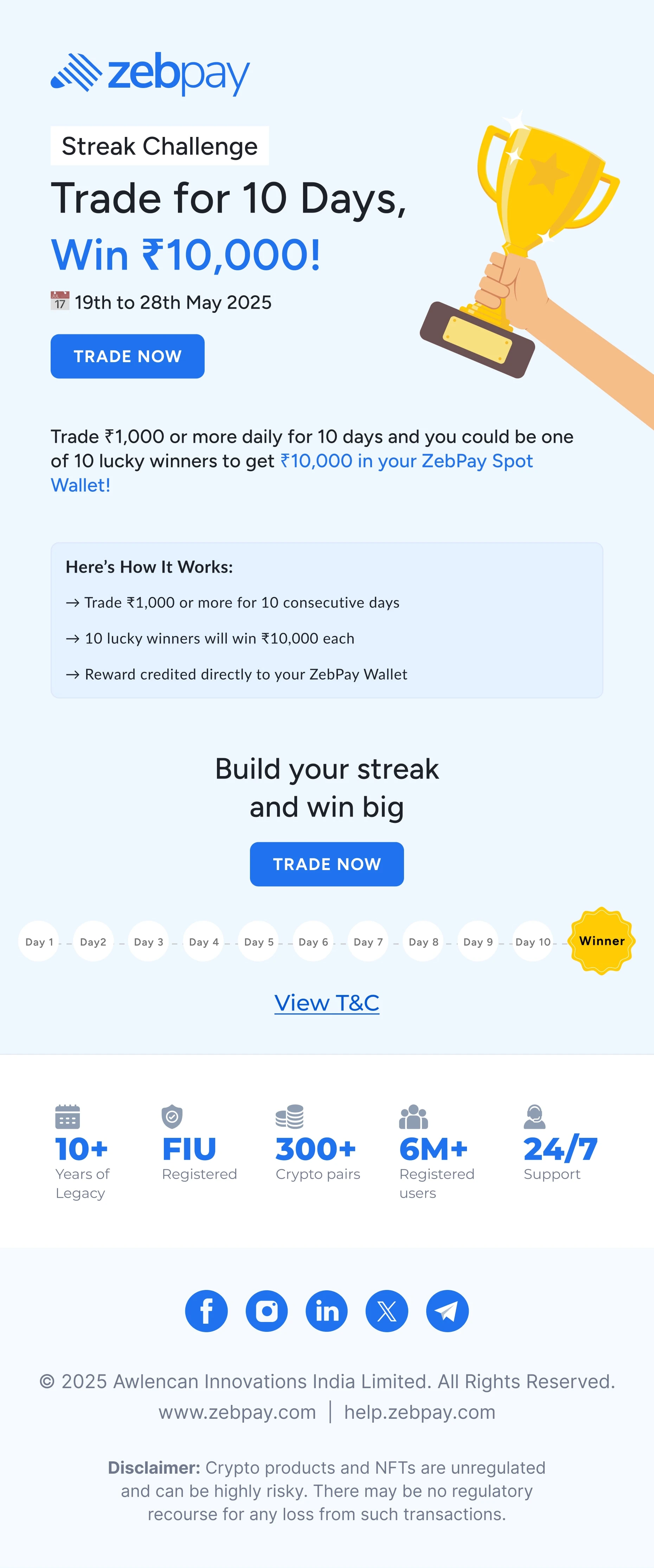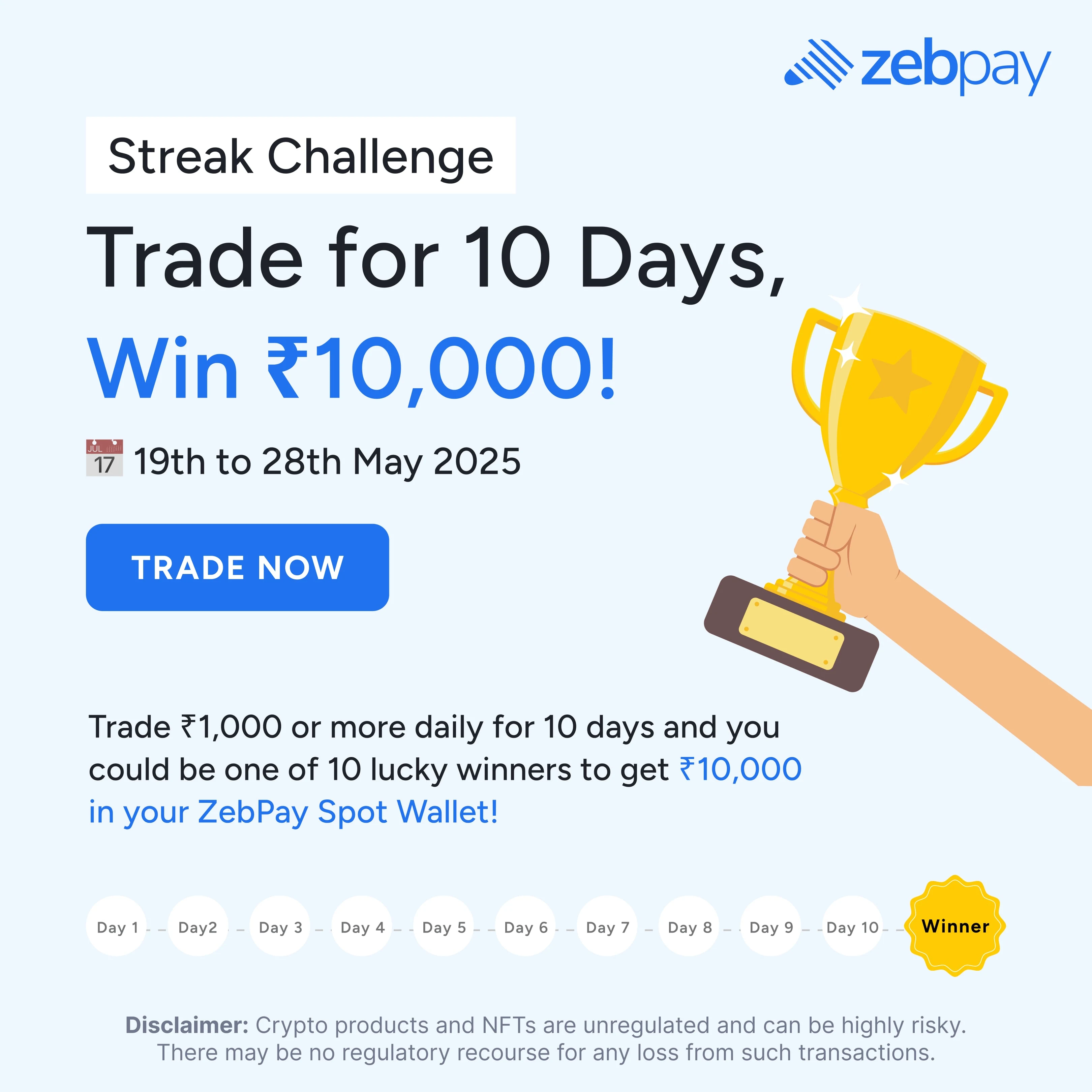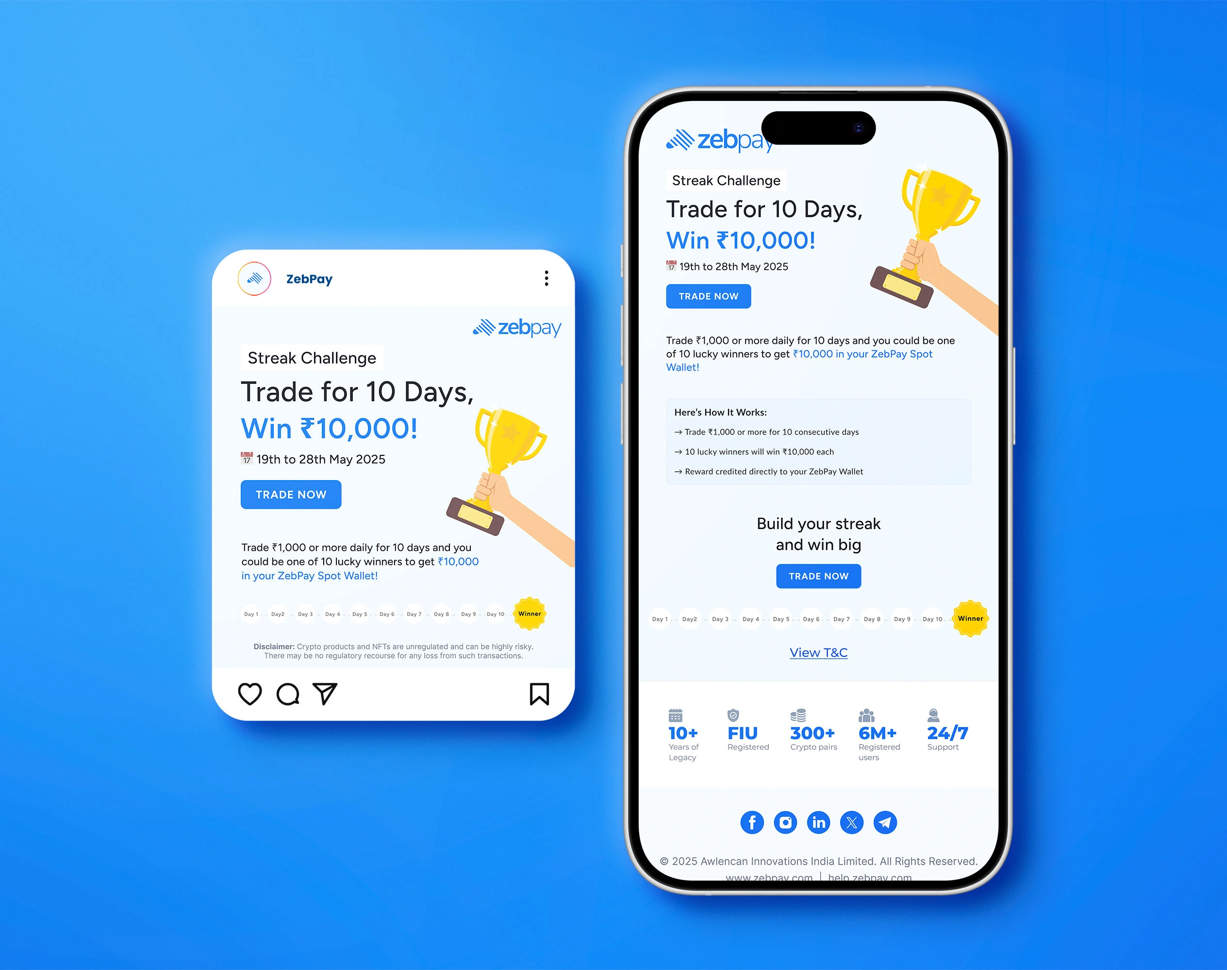 The Streak Challenge campaign was designed to increase daily trading activity by encouraging users to trade consistently for 10 consecutive days. The incentive-based model aimed to boost engagement, retention, and trading volume during a defined promotional period.