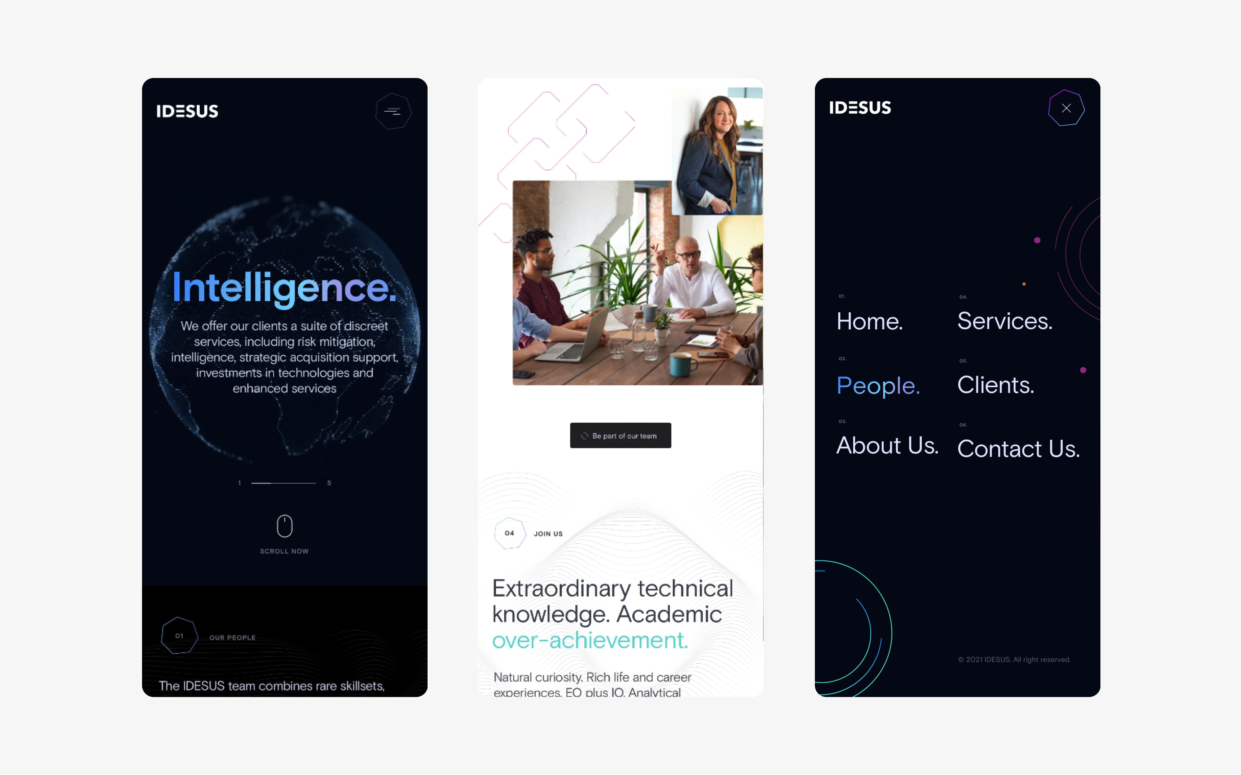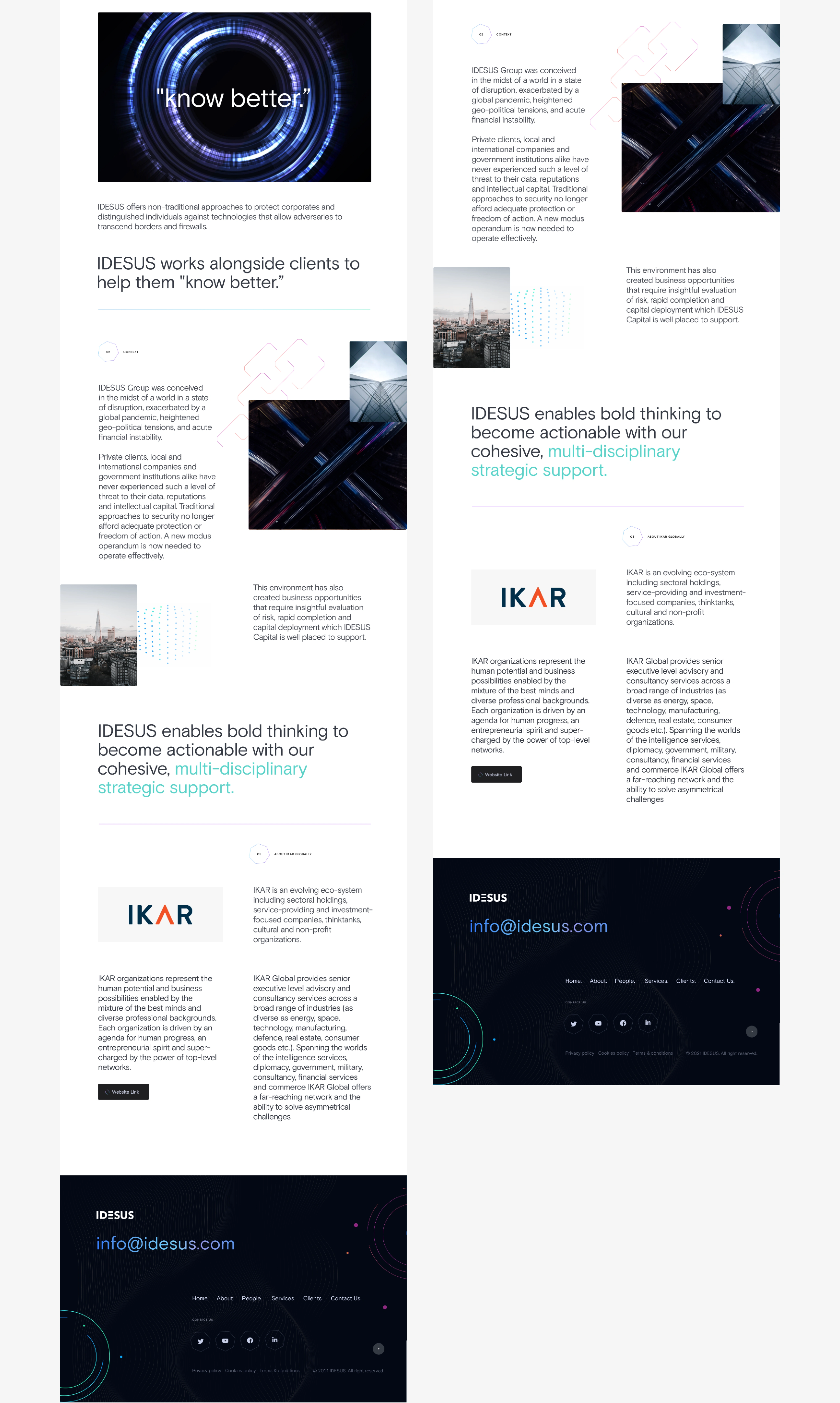 Designed a corporate UI/UX concept for IDESUS LLP, a UK-registered professional services partnership. The focus was on creating a clean, structured interface that supports clarity in complex business interactions and reflects a professional, modern identity for the dissolved entity.