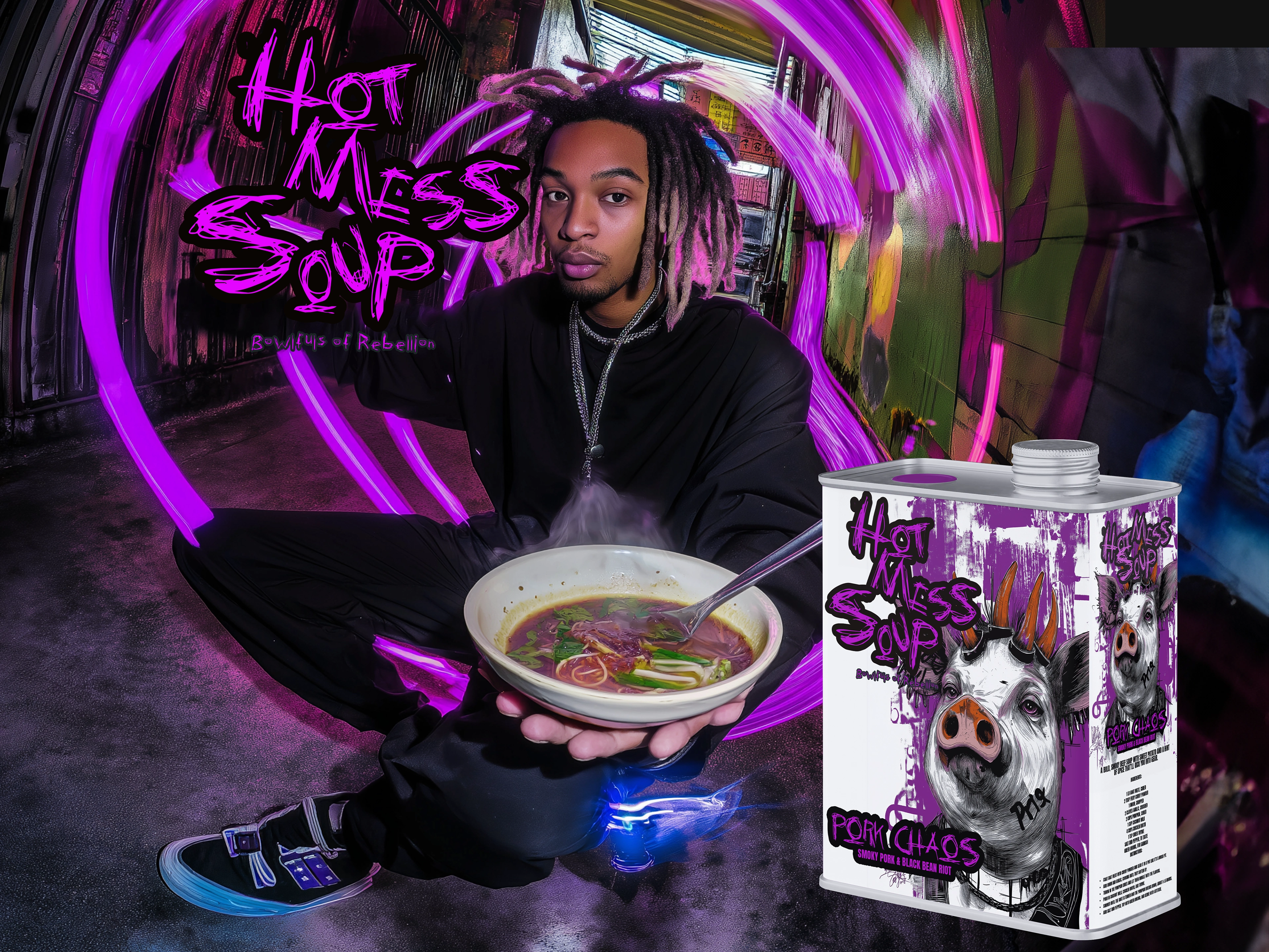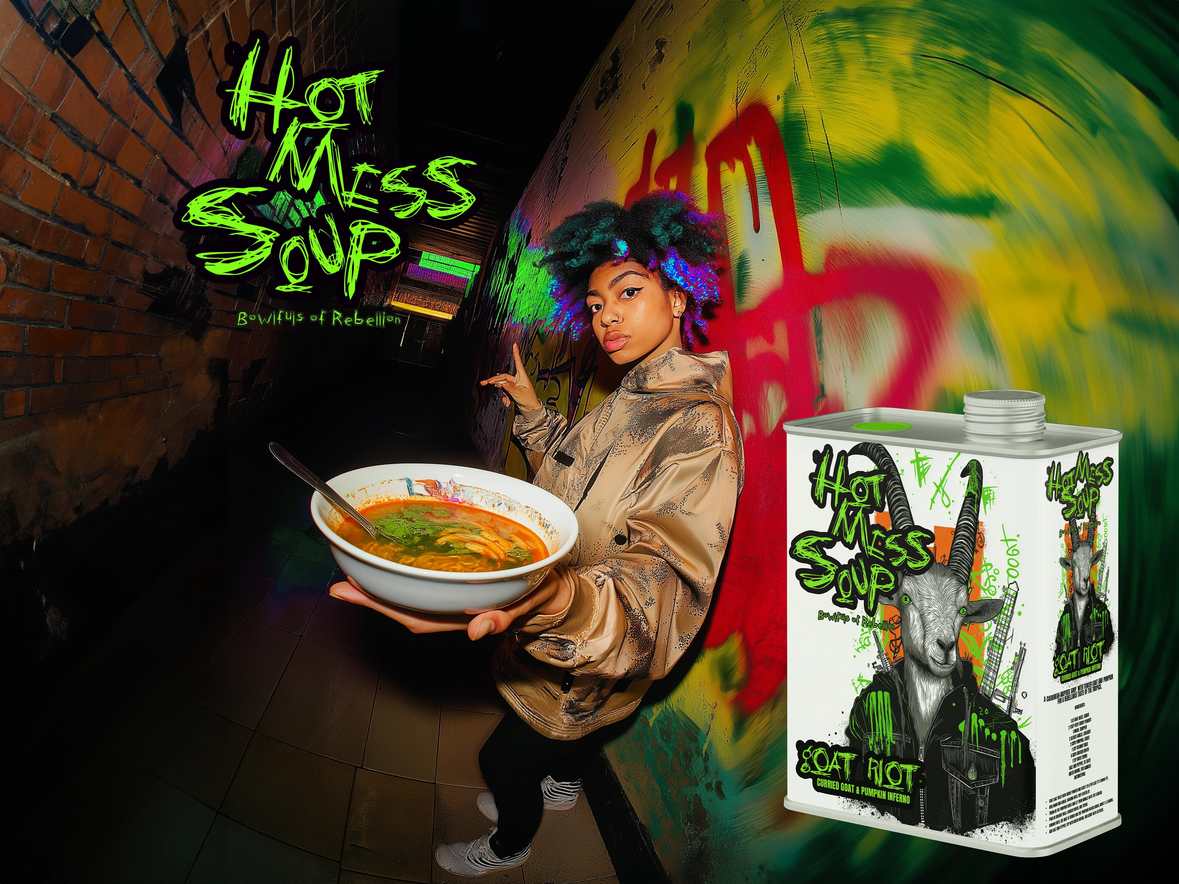 A punk-inspired lifestyle brand that transforms soup into a bold, rebellious statement.