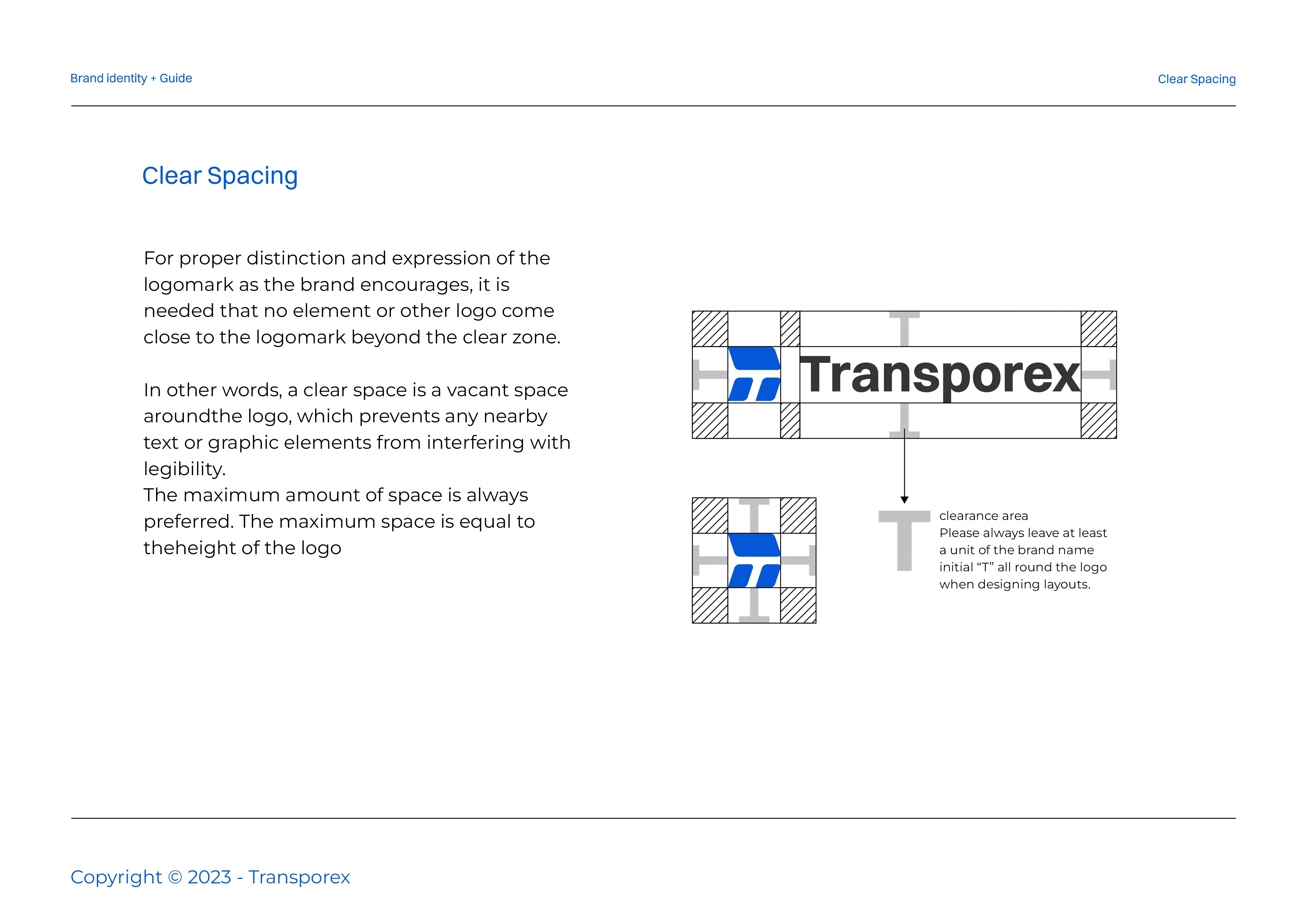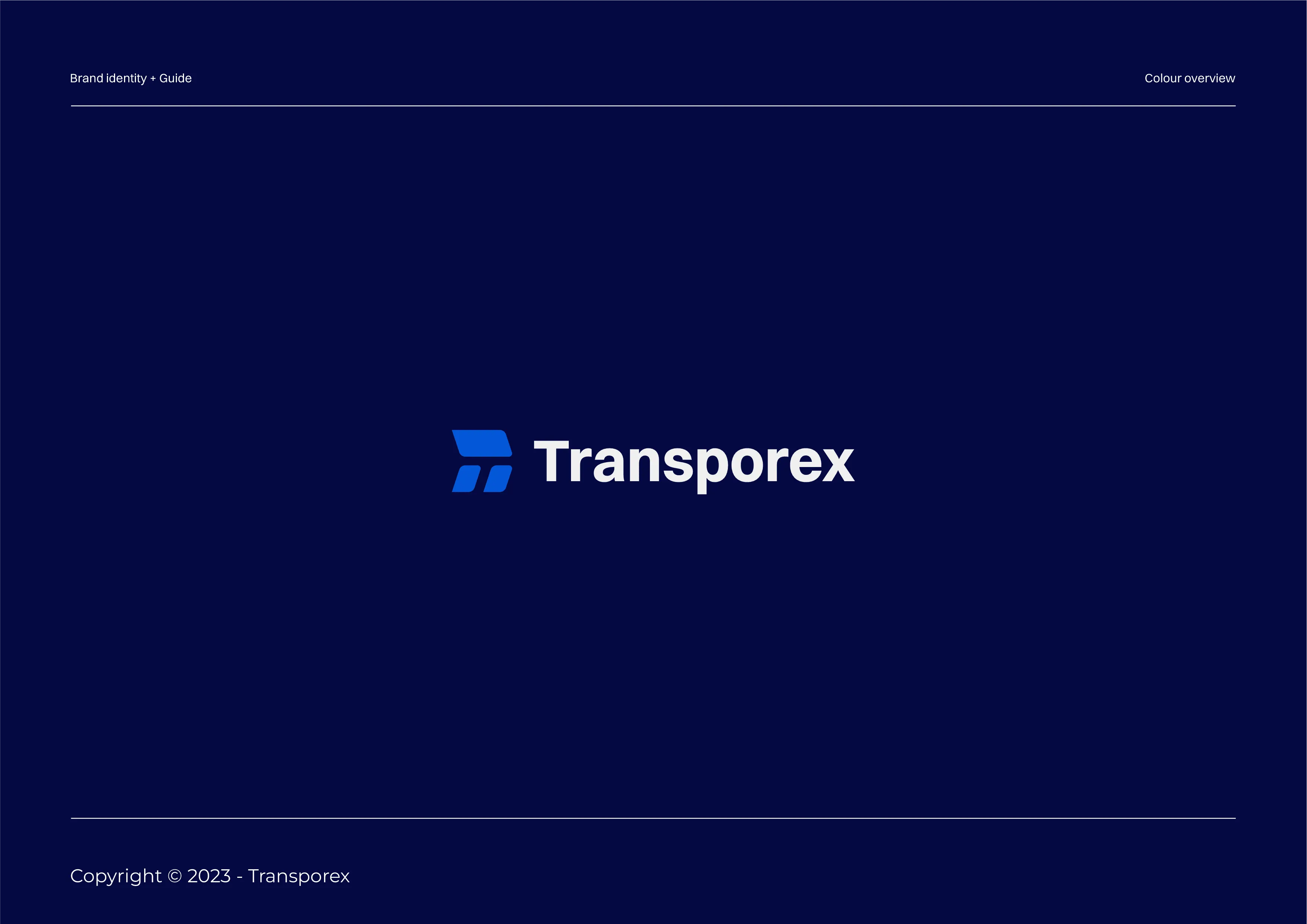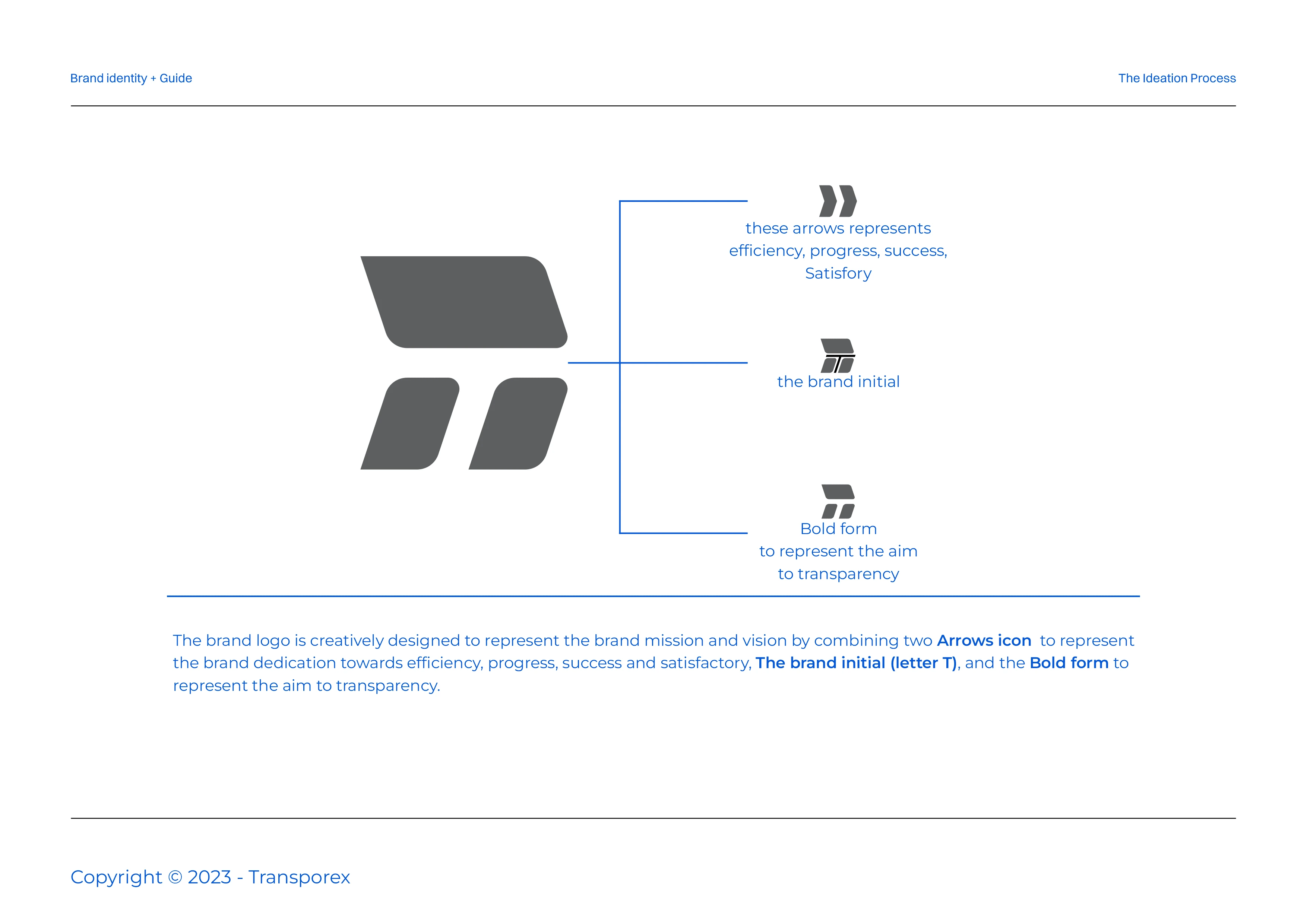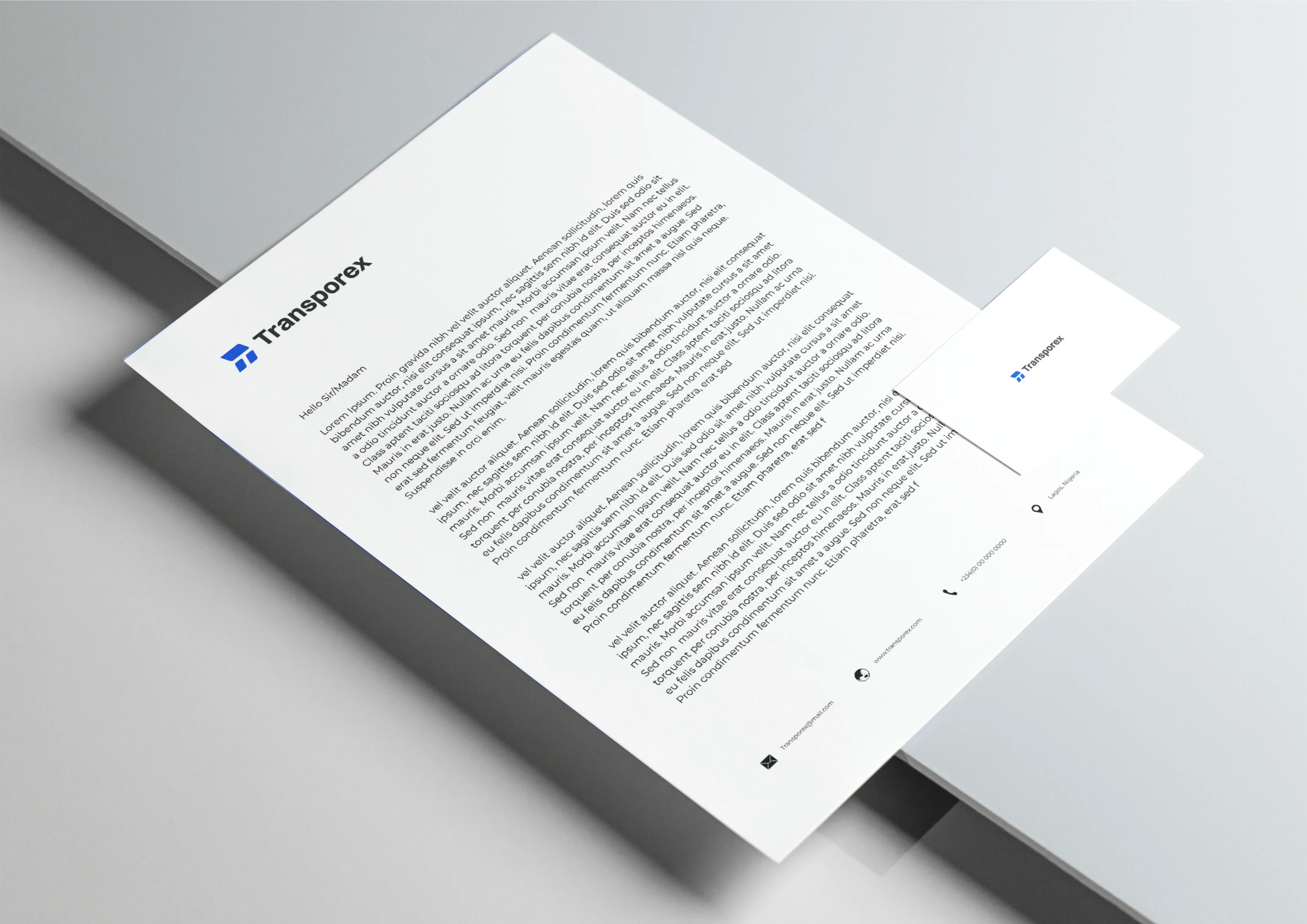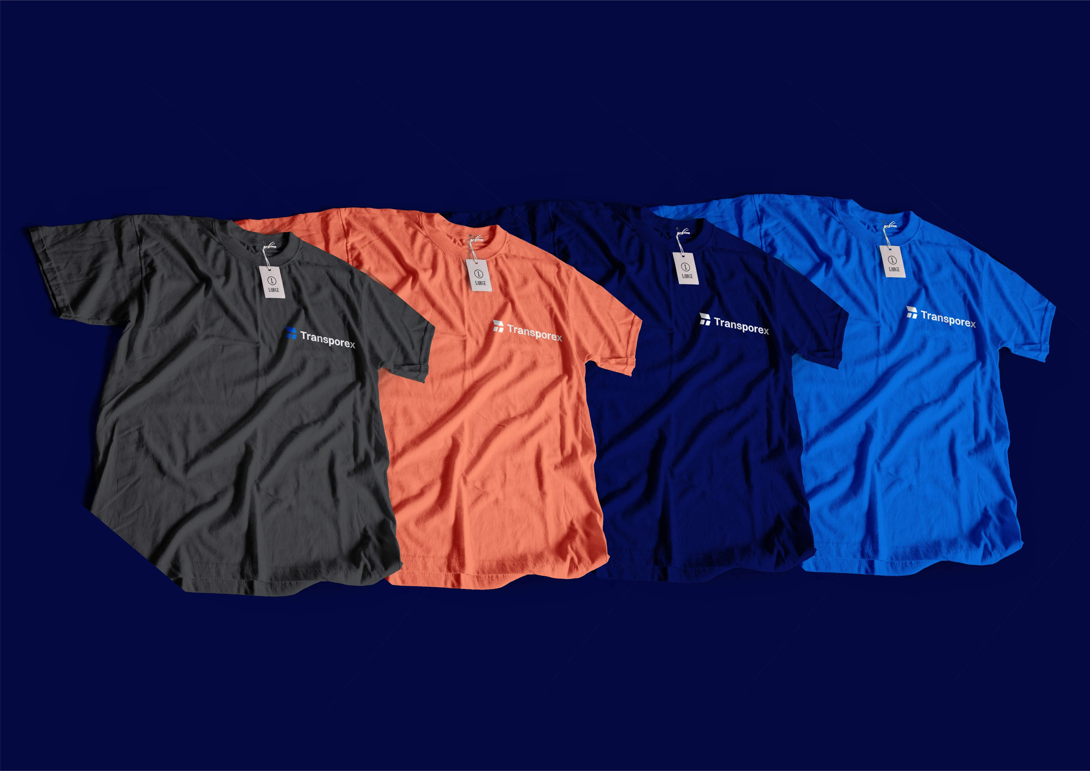 To reflect the brand's mission and vision, a unique identity was designed that captures its core essence. The brand logo combines a bold typeface with an icon. The icon integrates three elements: the brand initial "T" to represent Transporex, an arrow symbolizing the brand's commitment to efficiency and growth, and a bold form to convey trust.