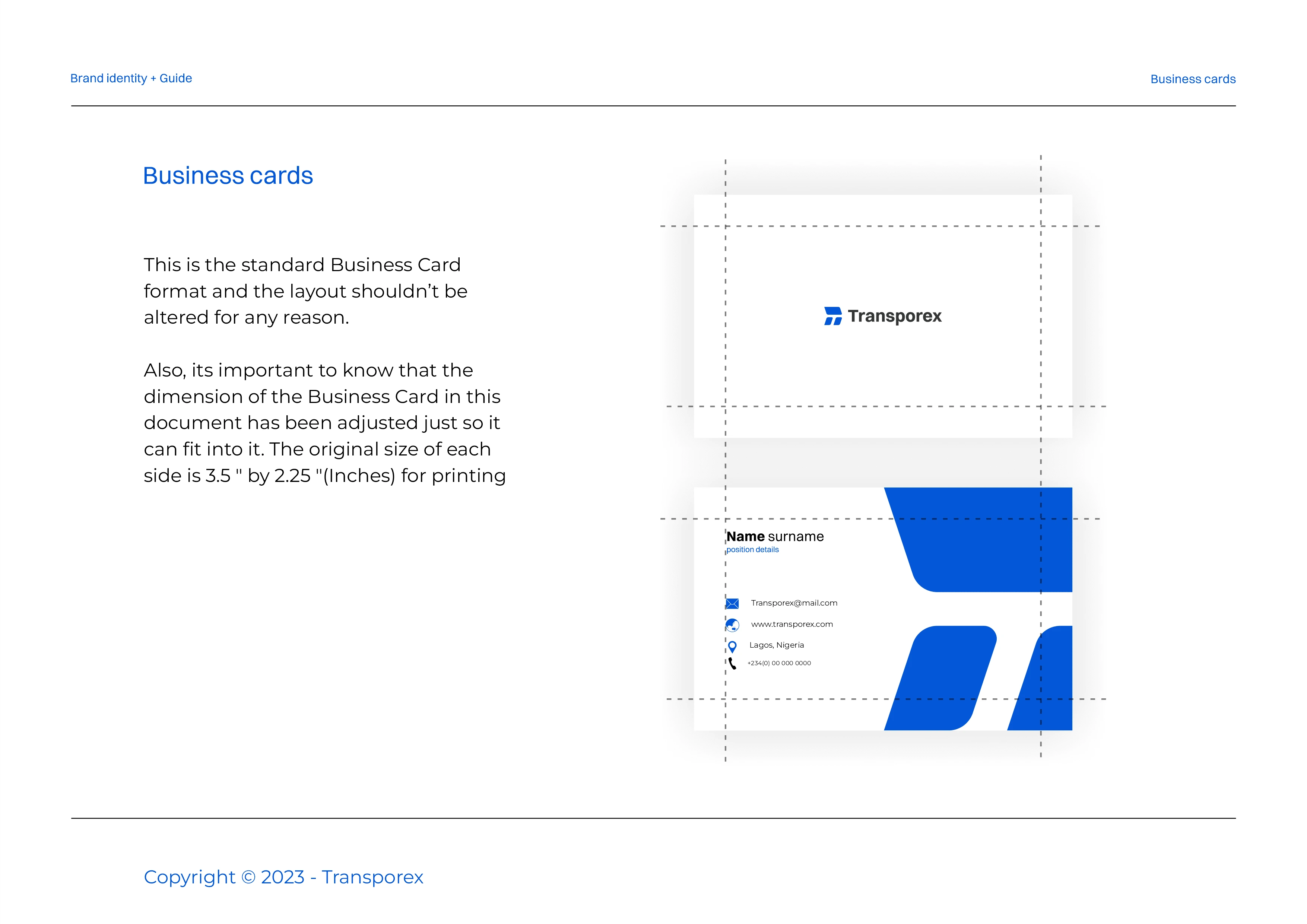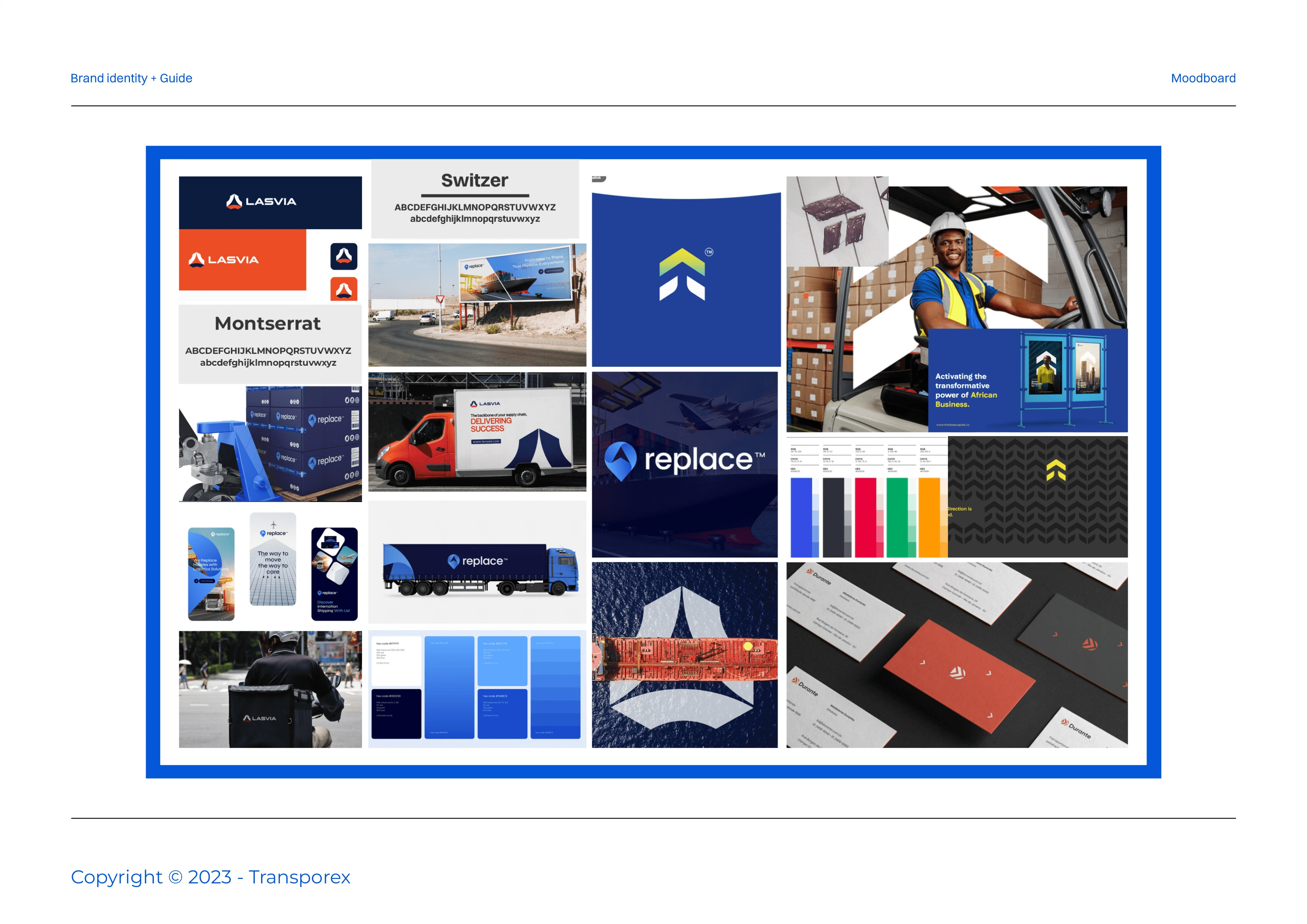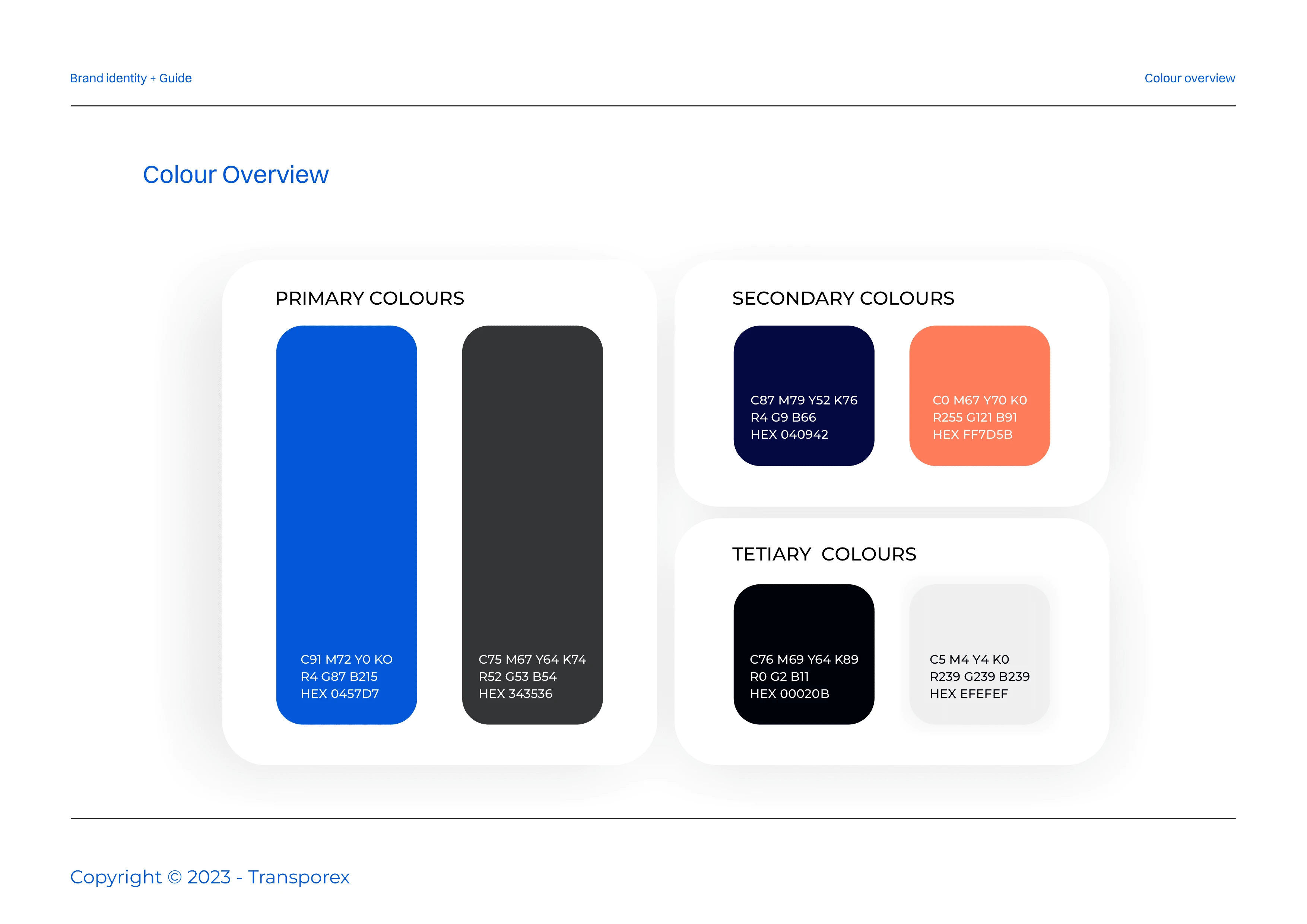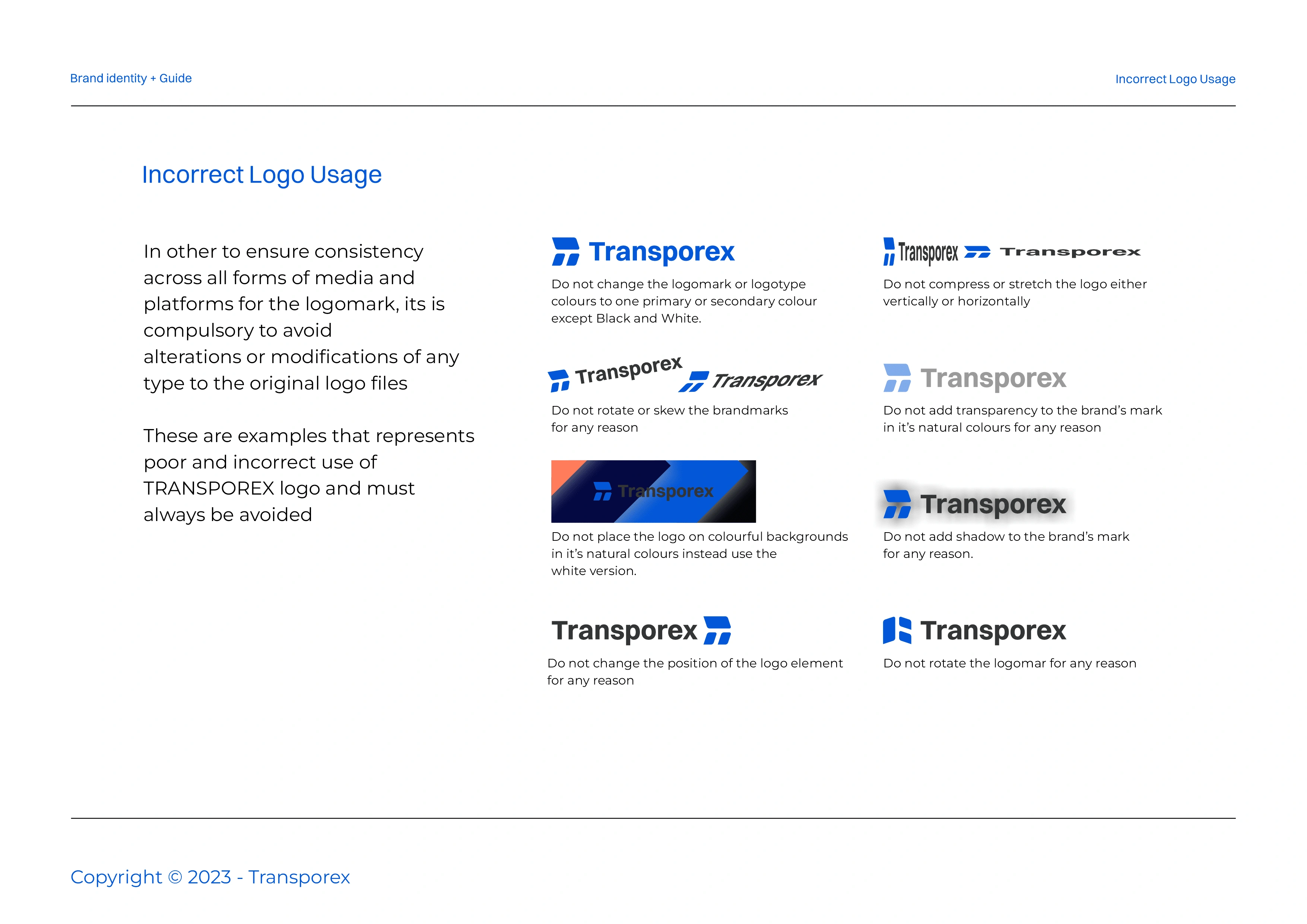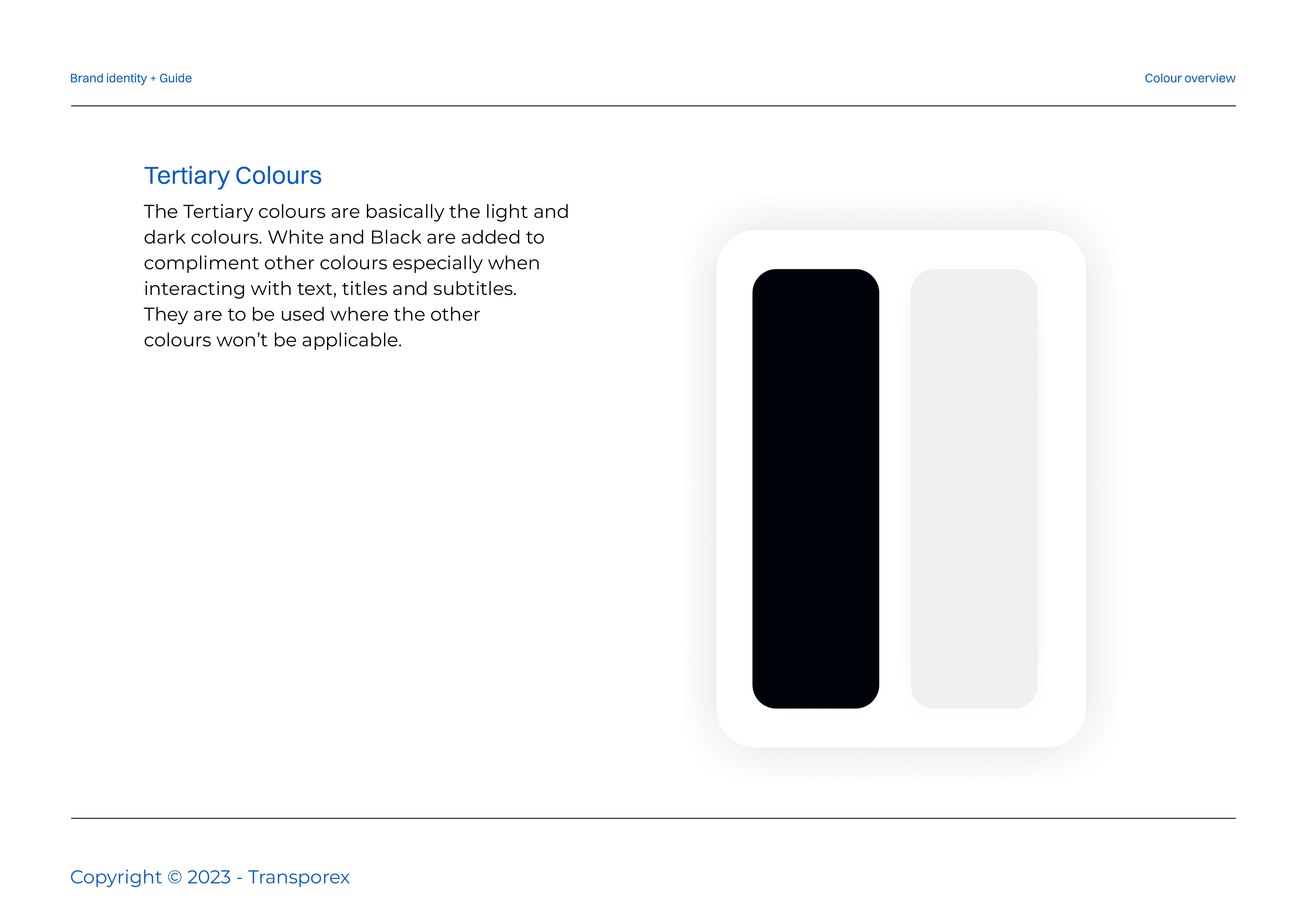 To reflect the brand's mission and vision, a unique identity was designed that captures its core essence. The brand logo combines a bold typeface with an icon. The icon integrates three elements: the brand initial "T" to represent Transporex, an arrow symbolizing the brand's commitment to efficiency and growth, and a bold form to convey trust.
