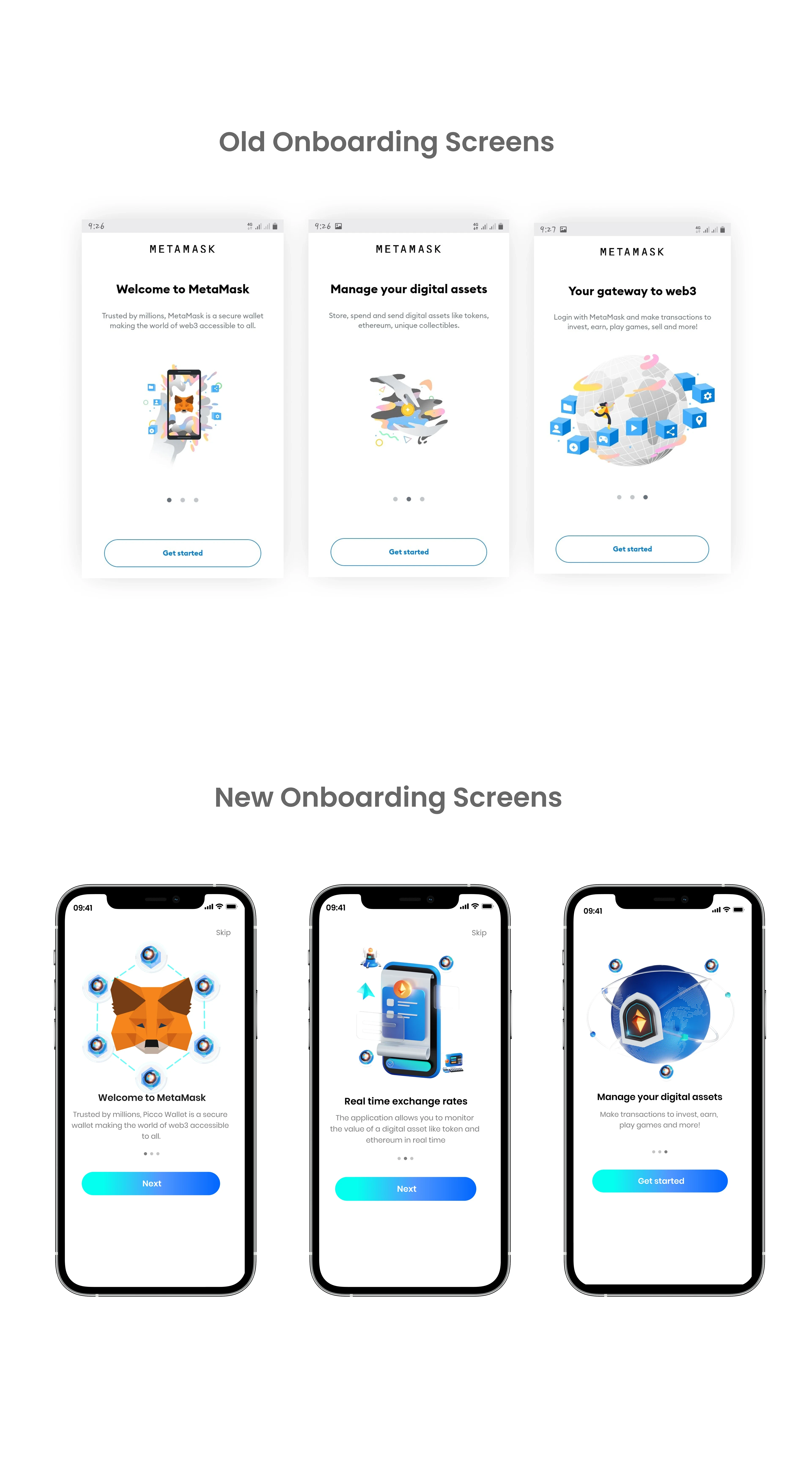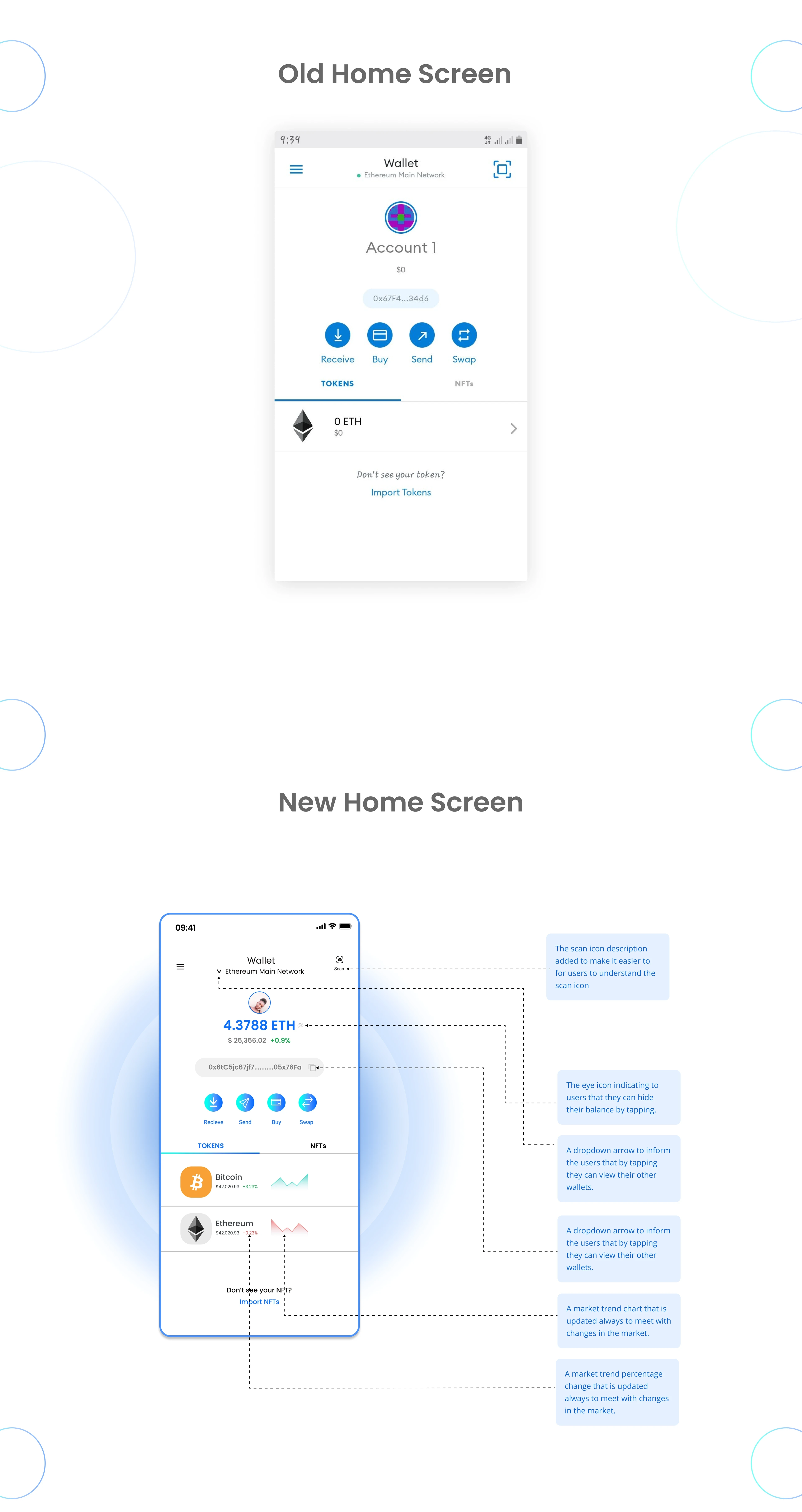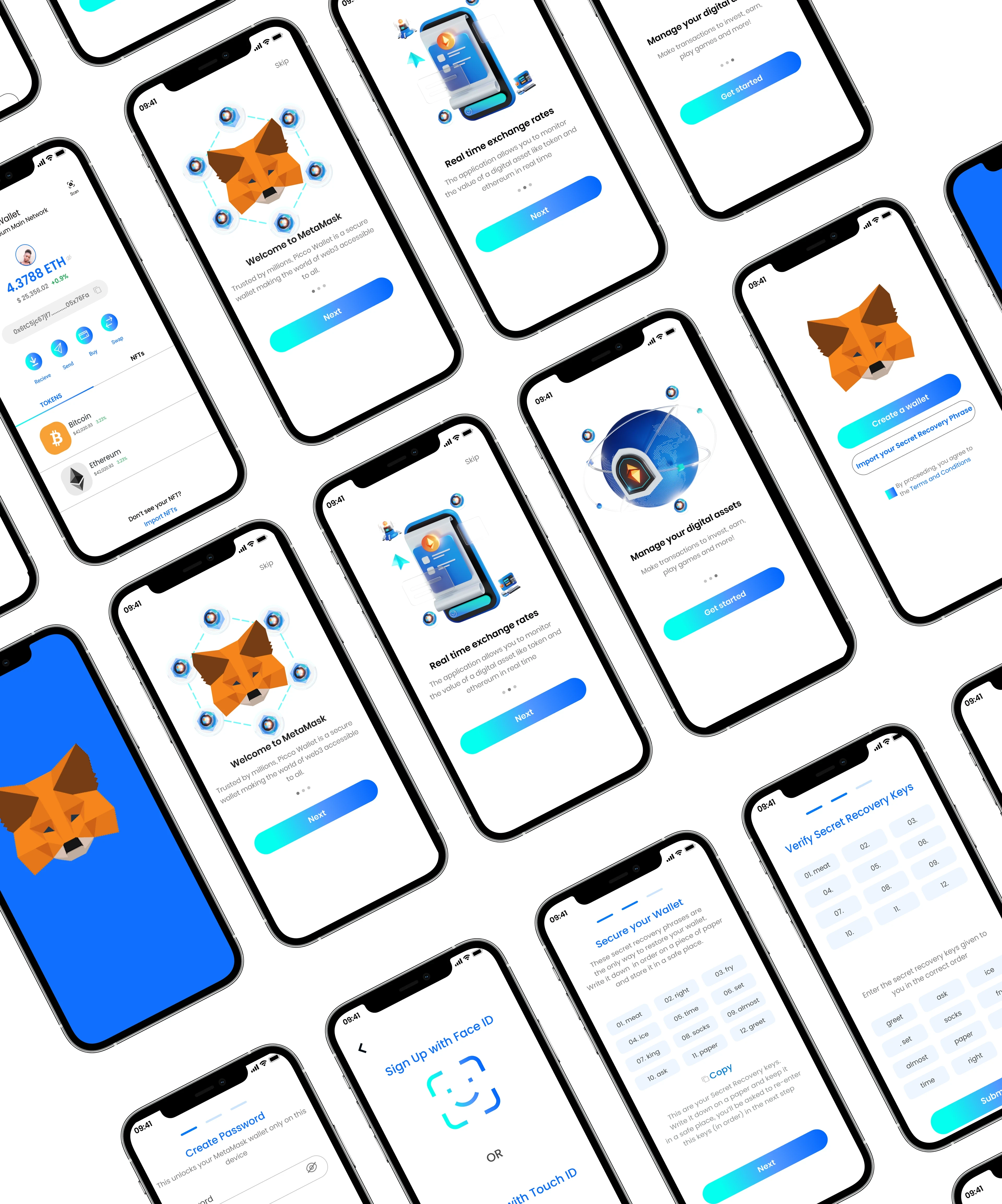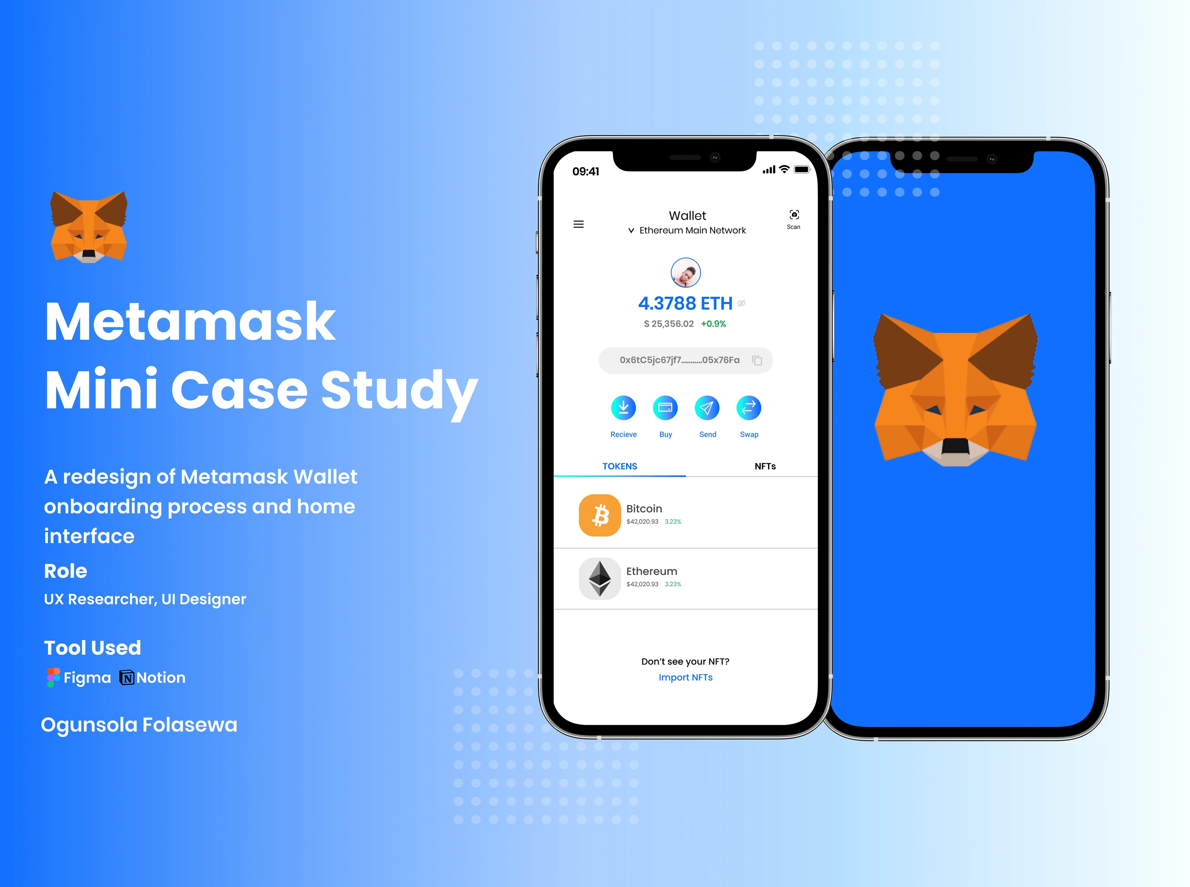 Redesigned MetaMask's mobile wallet to reduce user abandonment through streamlined onboarding and simplified transaction flows. Tools: Figma, Notion.
