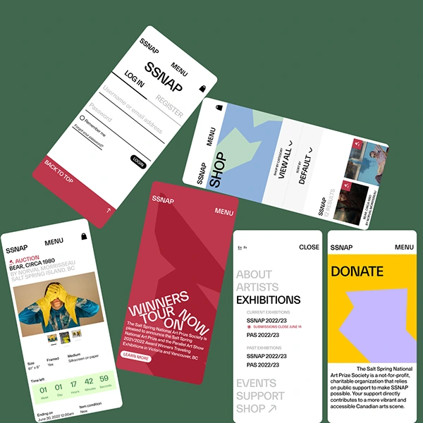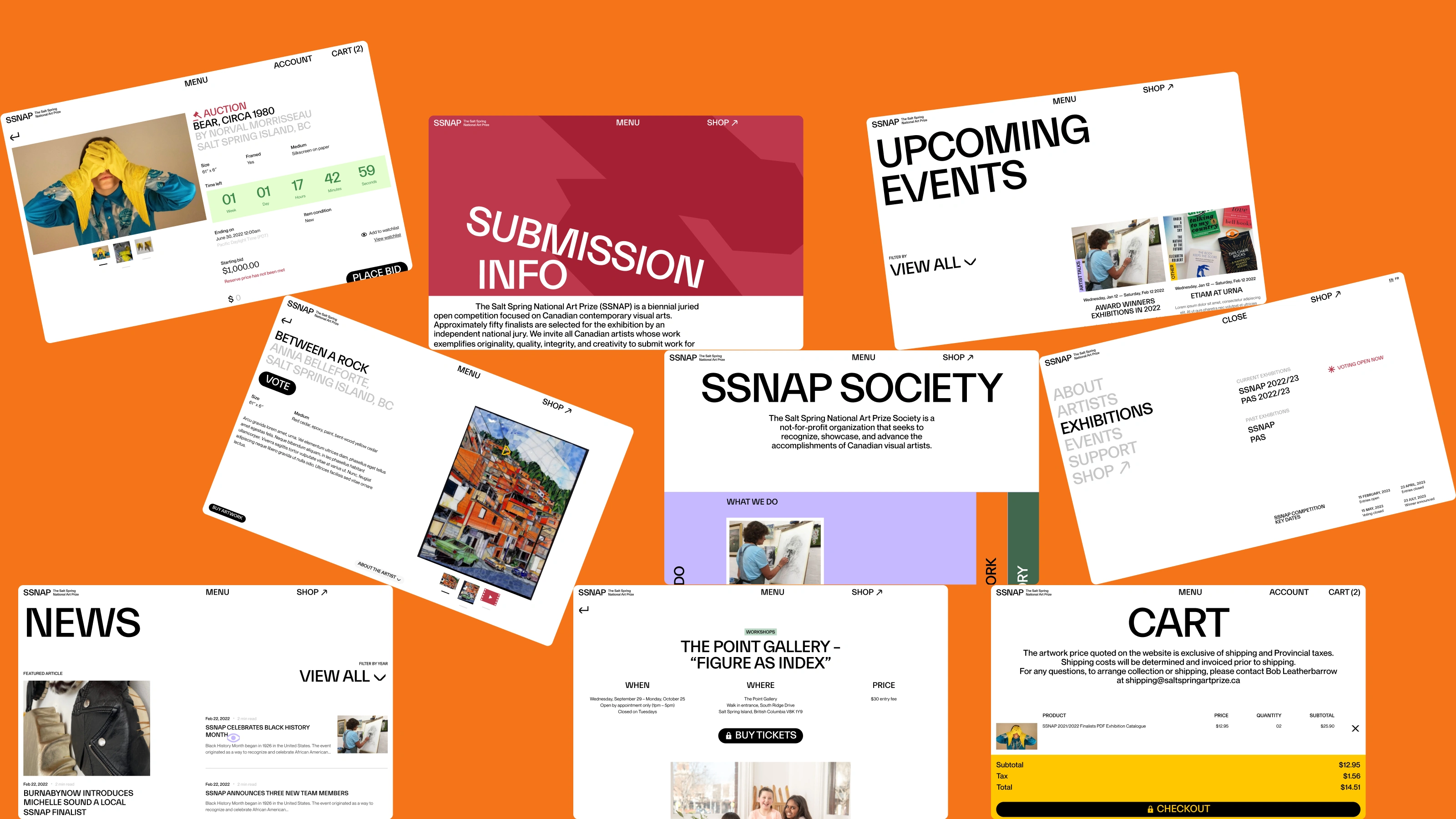 The Salt Spring National Art Prize (SSNAP) is a biennial competition of Canadian contemporary art. They needed an engaging website where they could receive artwork submissions and showcase their exhibition.