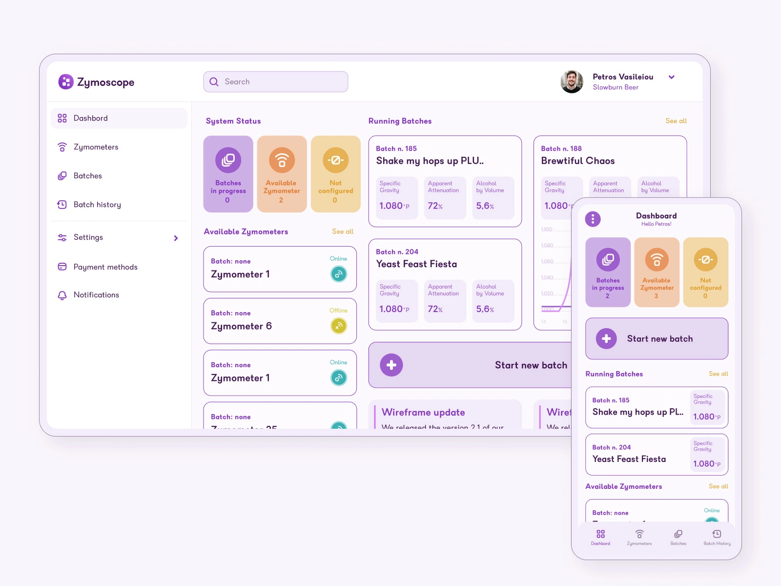 The app serves as the primary interface for connecting, configuring, and monitoring Zymoscope devices installed on fermentation tanks. With most users accessing the system from mobile, I adopted a mobile-first approach while ensuring seamless adaptability across desktop.