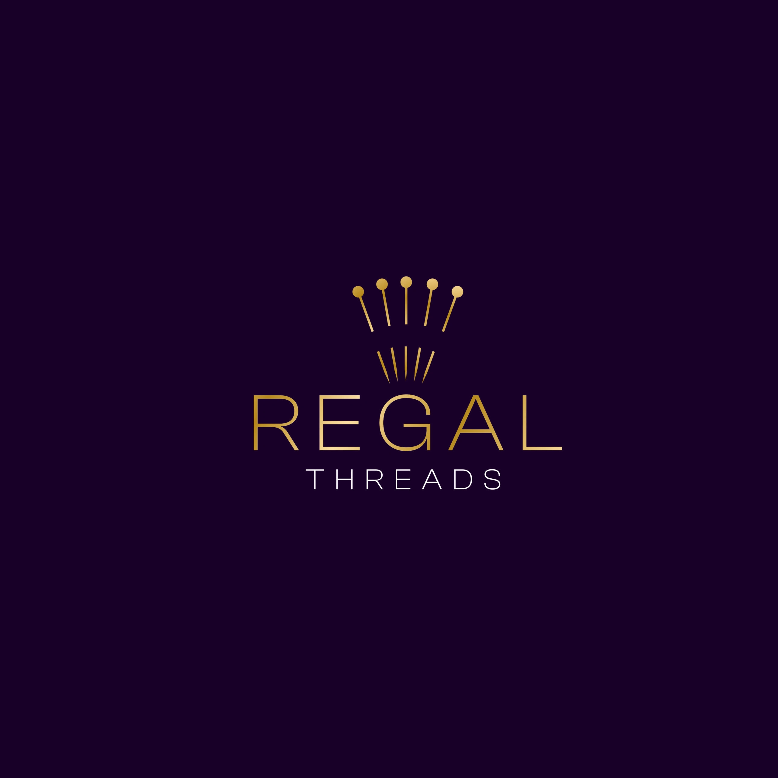 This logo was designed to embody the luxury and sophistication of the Regal Threads brand. The mark features elegant, serif typography and a refined crest or coronet icon, communicating exclusivity, high-quality craftsmanship, and timeless style. The minimalist color palette of black, gold, and deep navy reinforces a premium and authoritative presence in the fashion space.