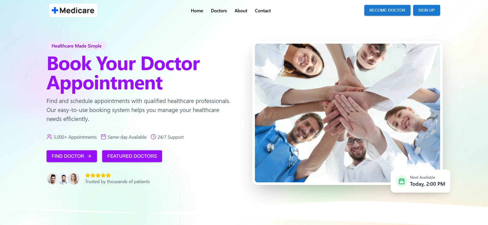 Modern doctor appointment platform with dashboards for doctors, patients, and admin manage bookings, schedules, and profiles easily.