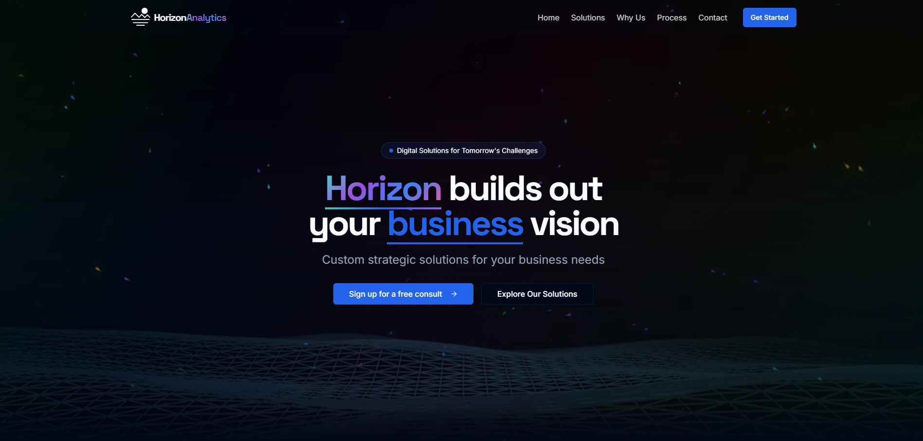 Landing page for my company that focuses on empowering businesses through innovative digital solutions and transformative technologies for the modern age.