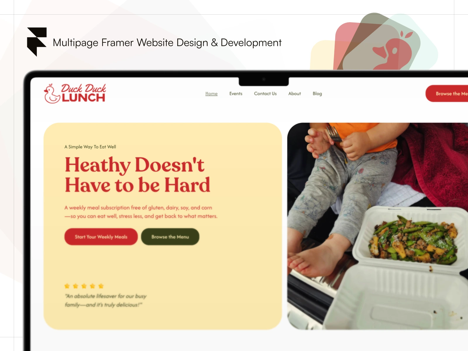 Mobile-responsive Framer website for DuckDuckLunch - SEO-optimized landing page with fast load times and intuitive UX