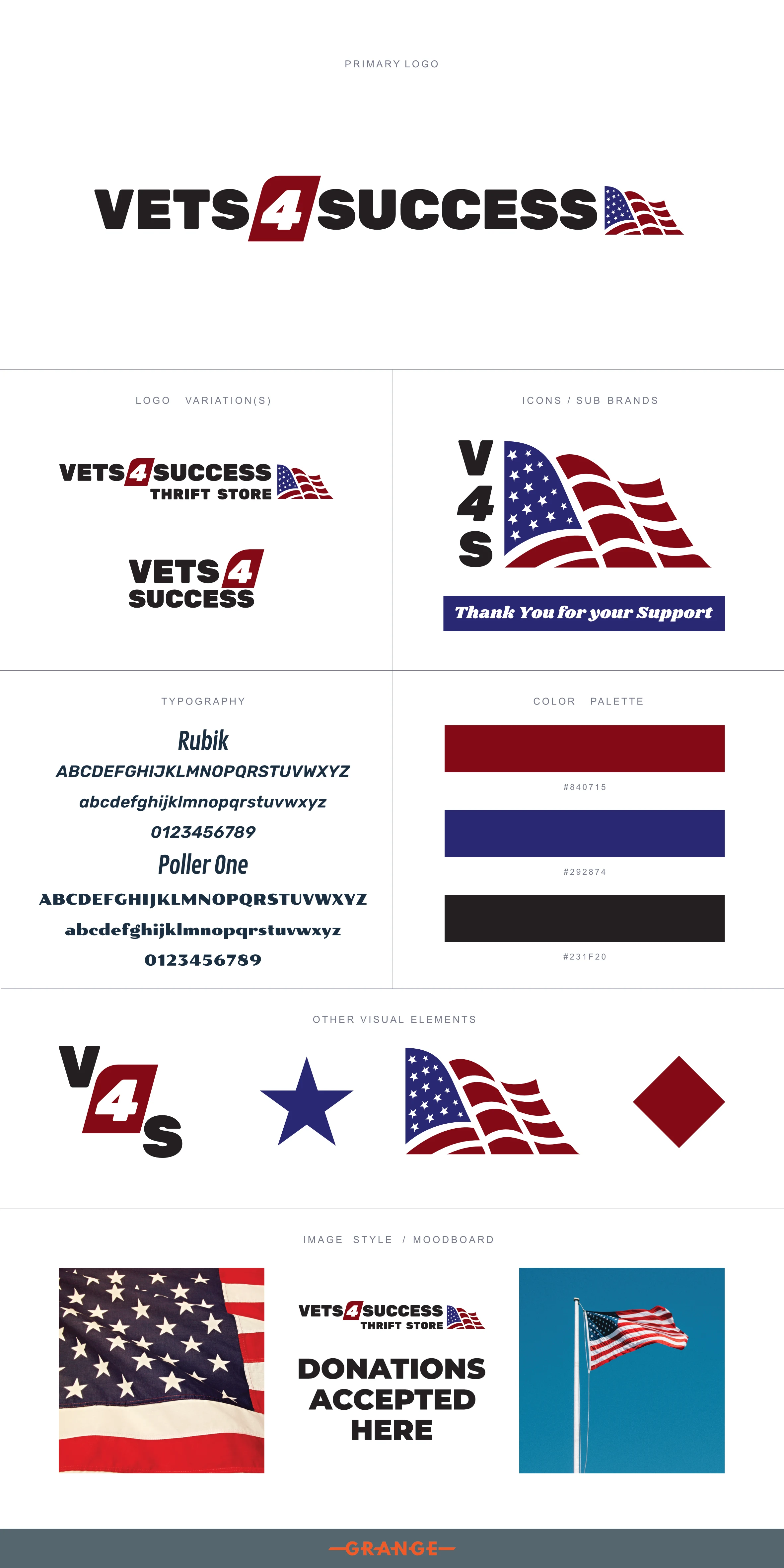 Logo and design assets for nonprofit thrift store serving Military Veterans.