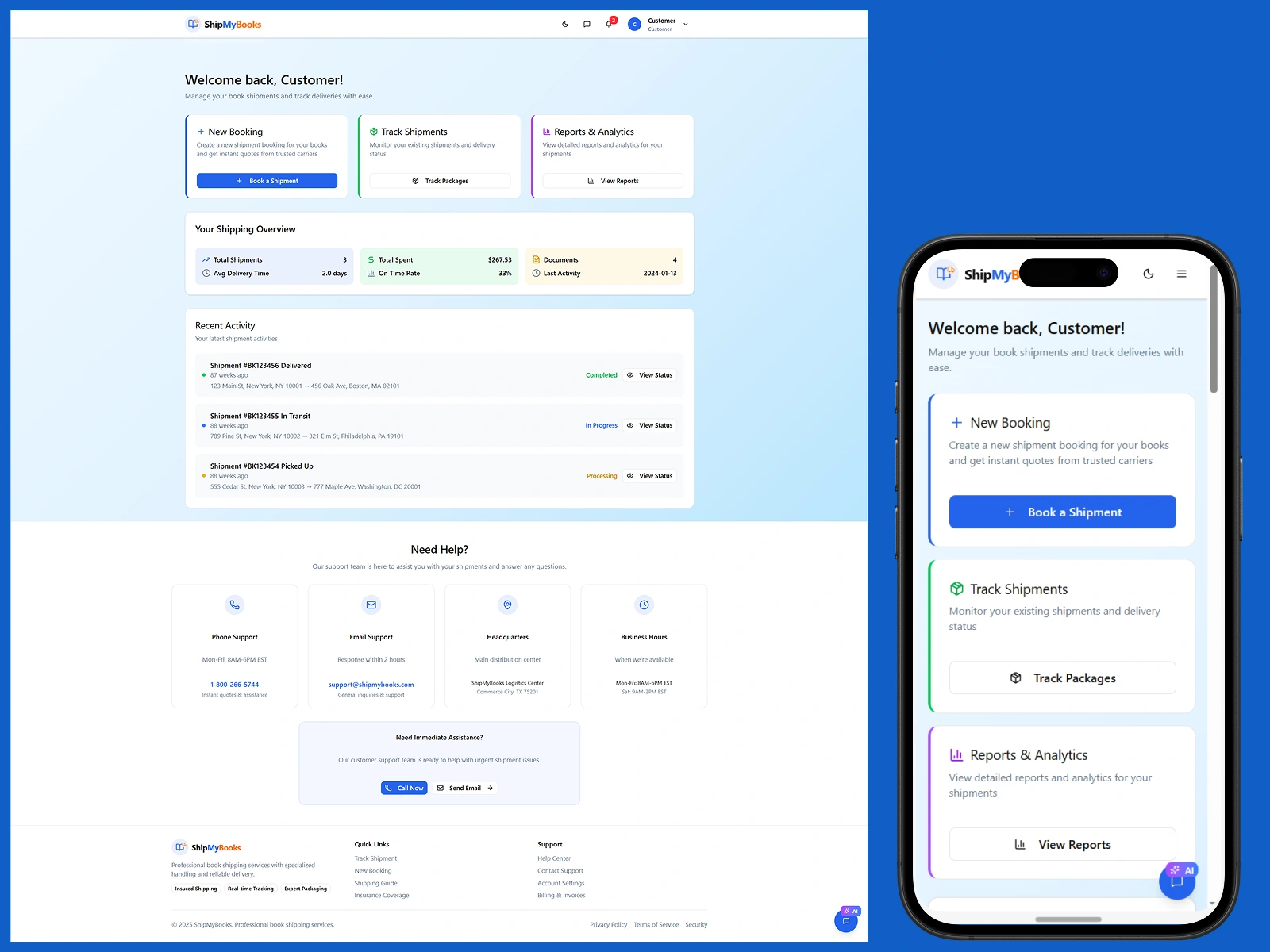 An Responsive book shipping web app with role-based dashboards for Customers, Dispatchers & Admins, managing end-to-end shipping & delivery tracking.
