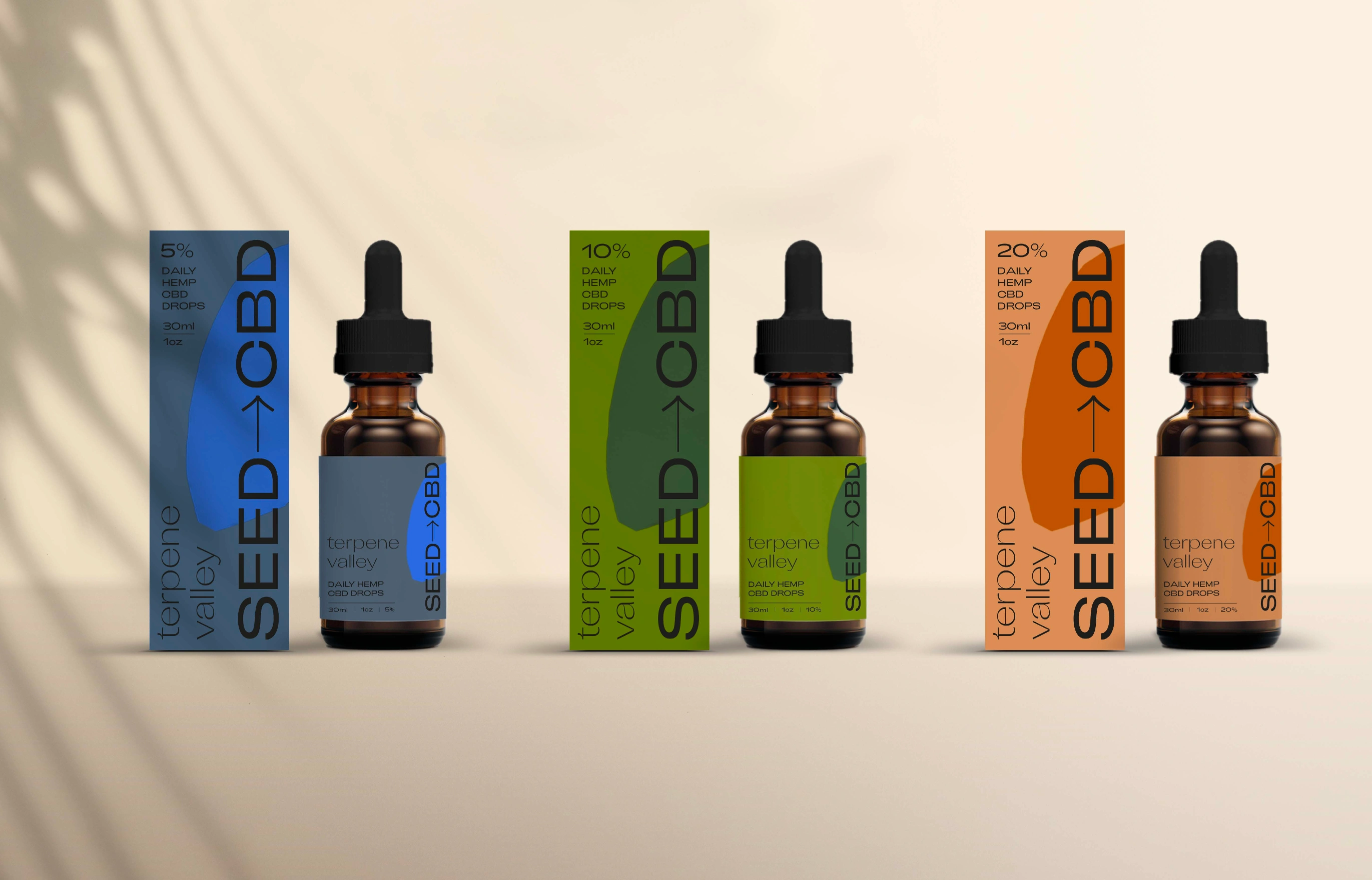 Brand identity and packaging for a CBD oil range