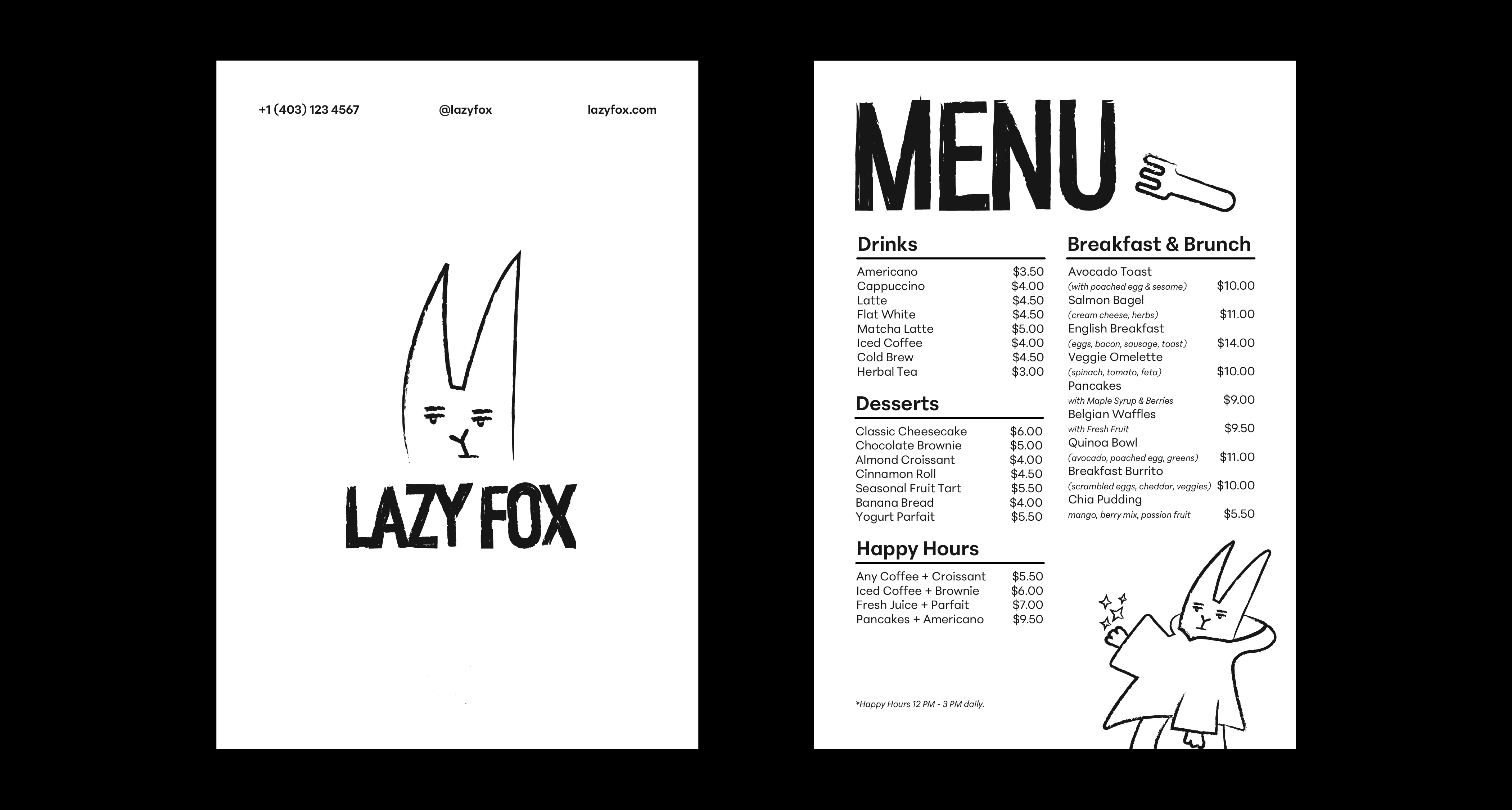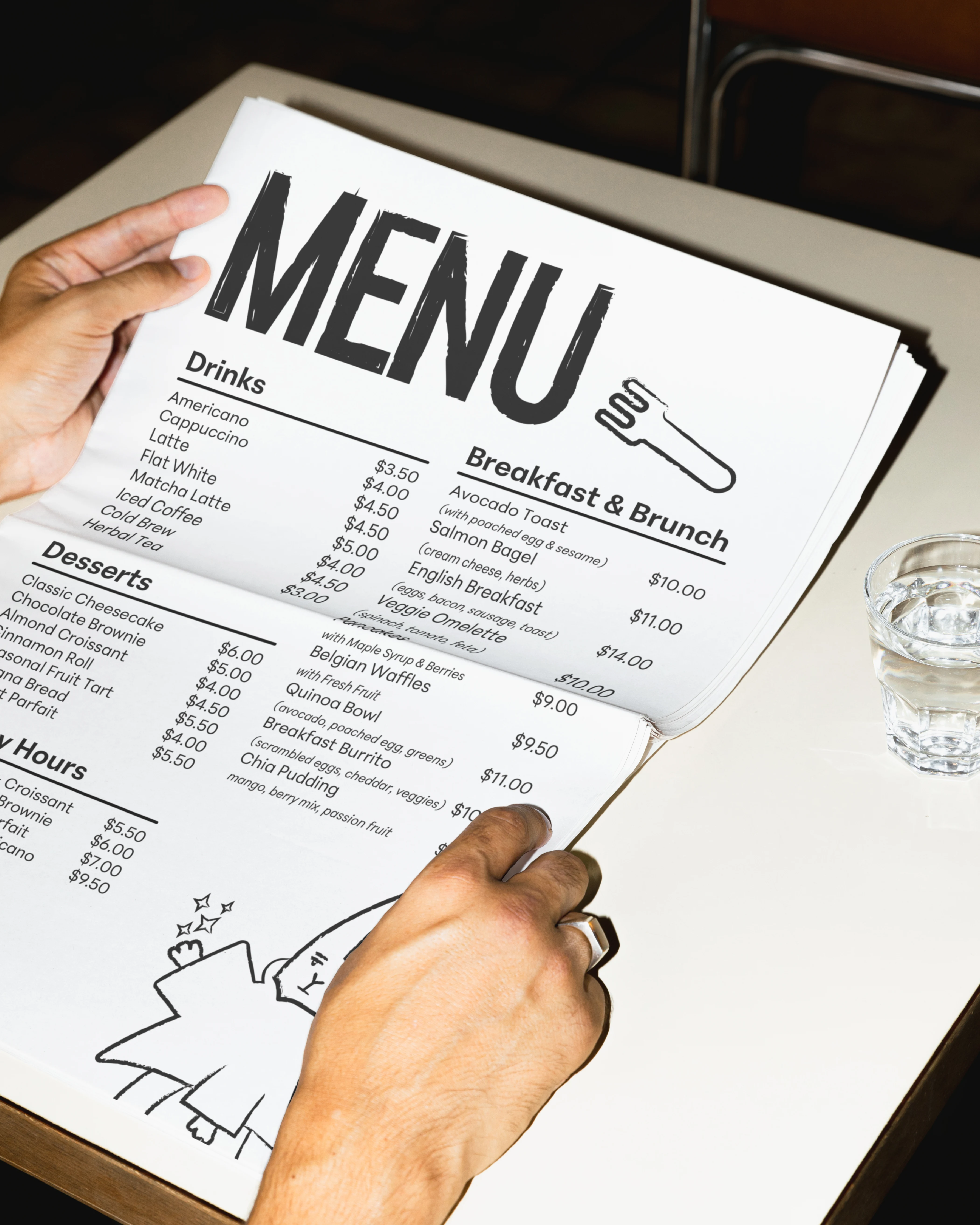 Every design element — from the menu layout to the logo and color palette — was created to mirror the quiet confidence of a place that doesn’t try too hard.