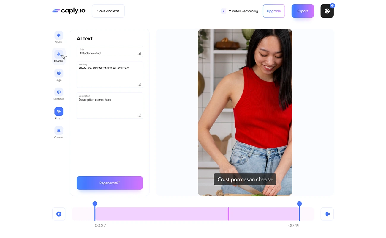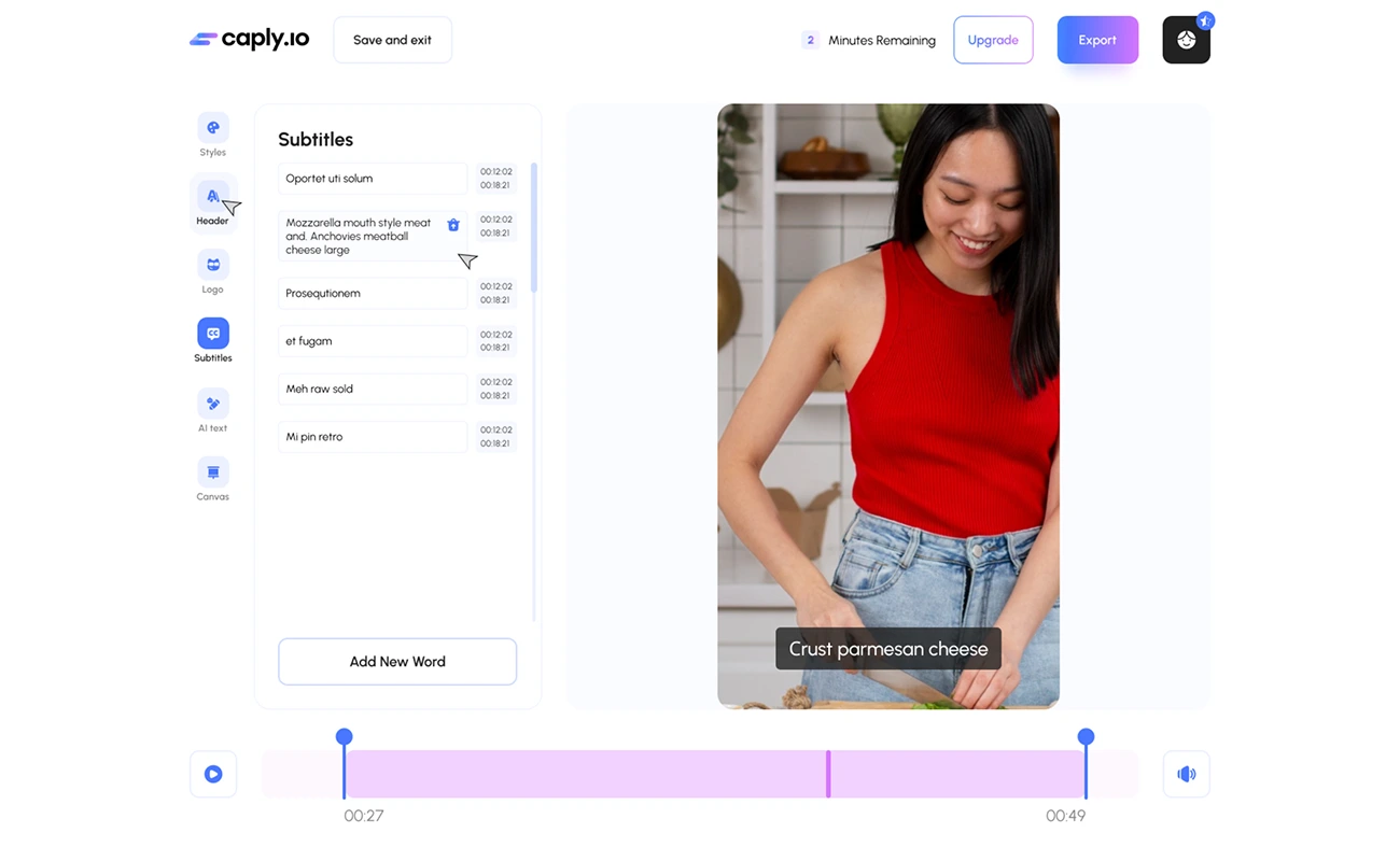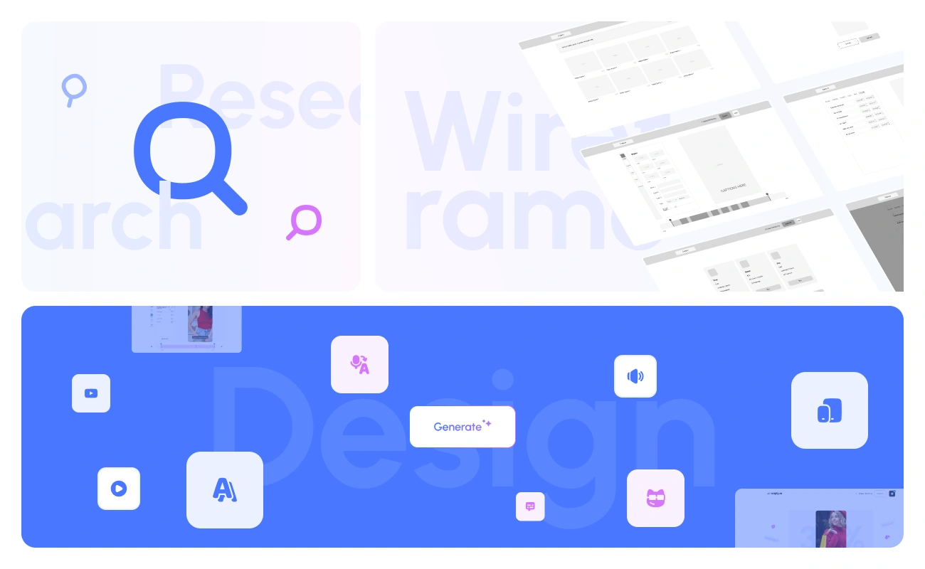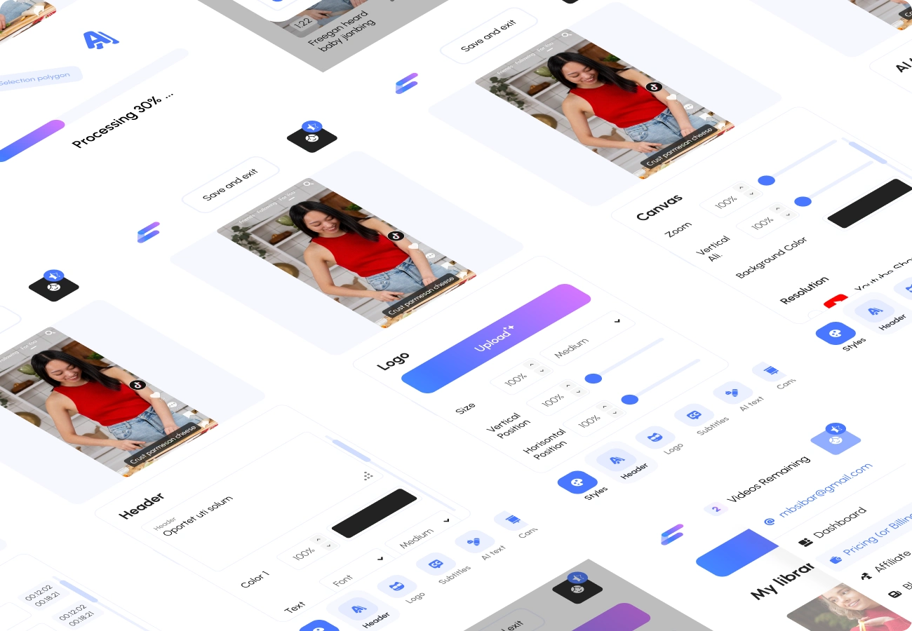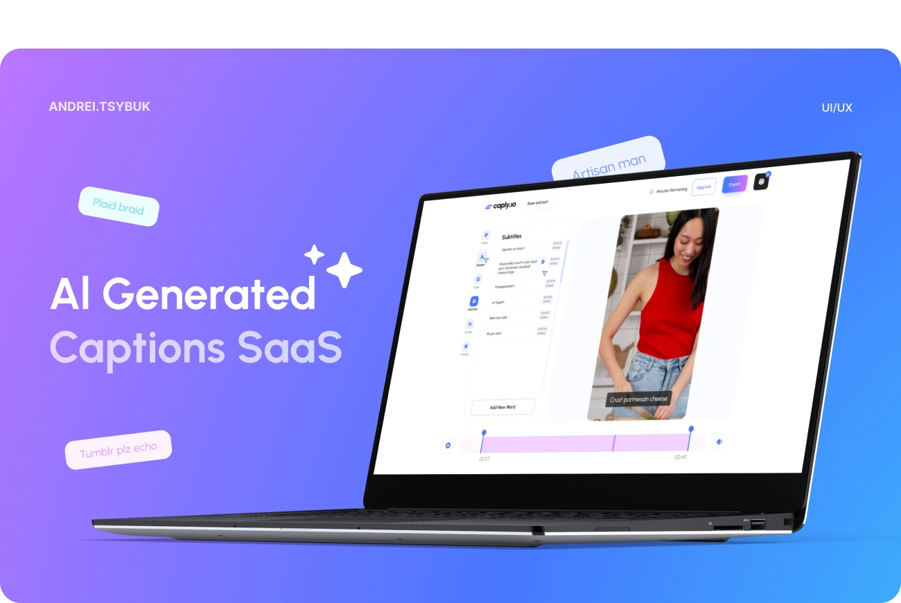 Design a saas application for subtitling with ii, and video editing. A sleek and modern interface and a mobile version have been developed.