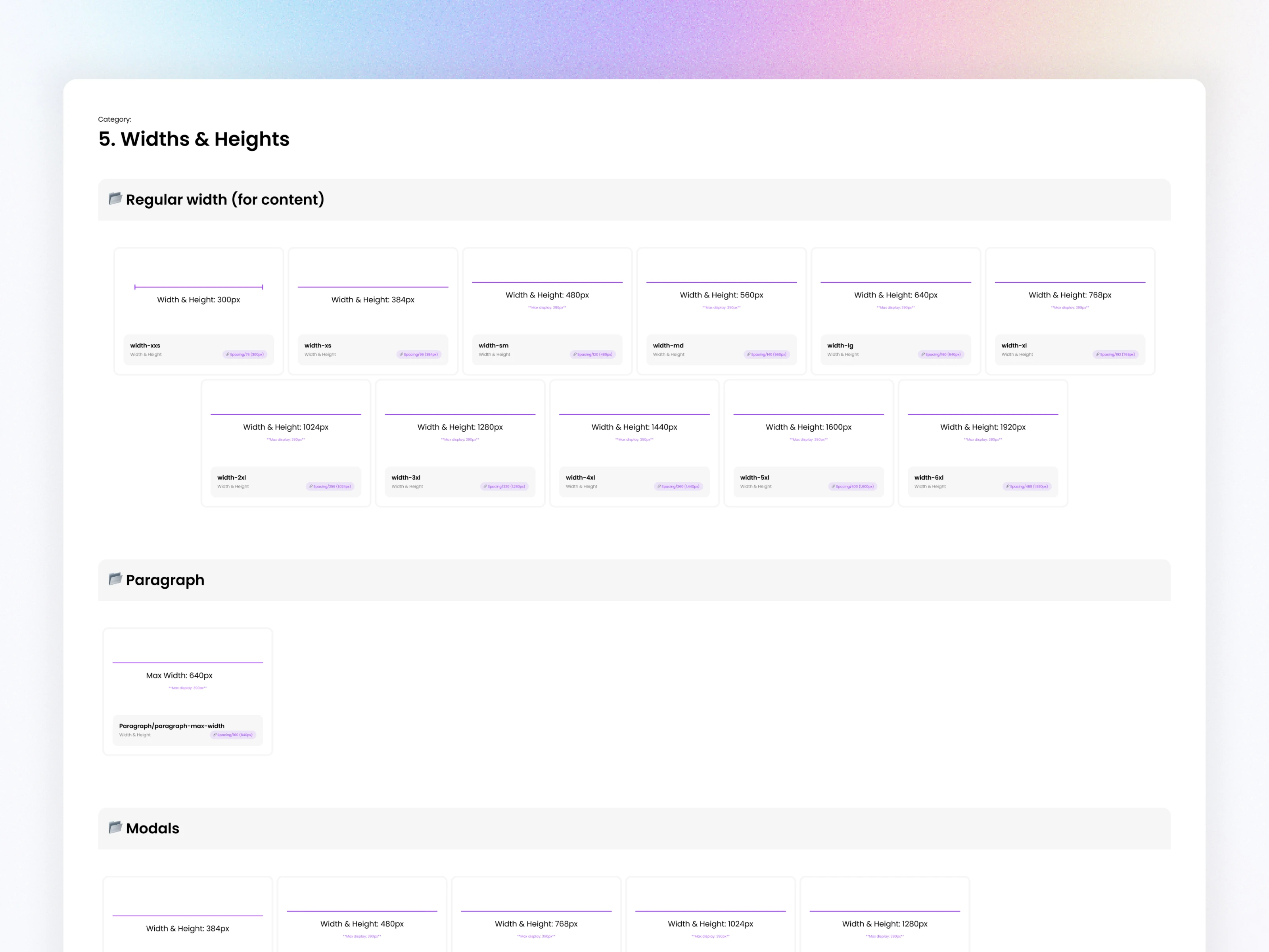 4.5 Size Tokens (Widths & Heights)