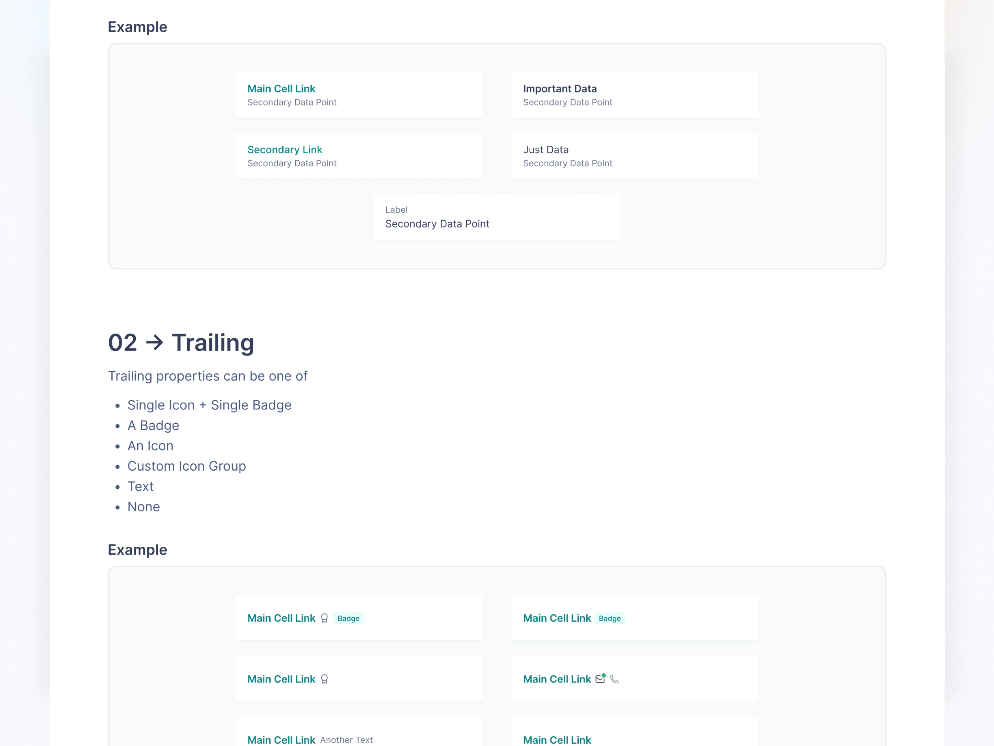Each component page includes:
