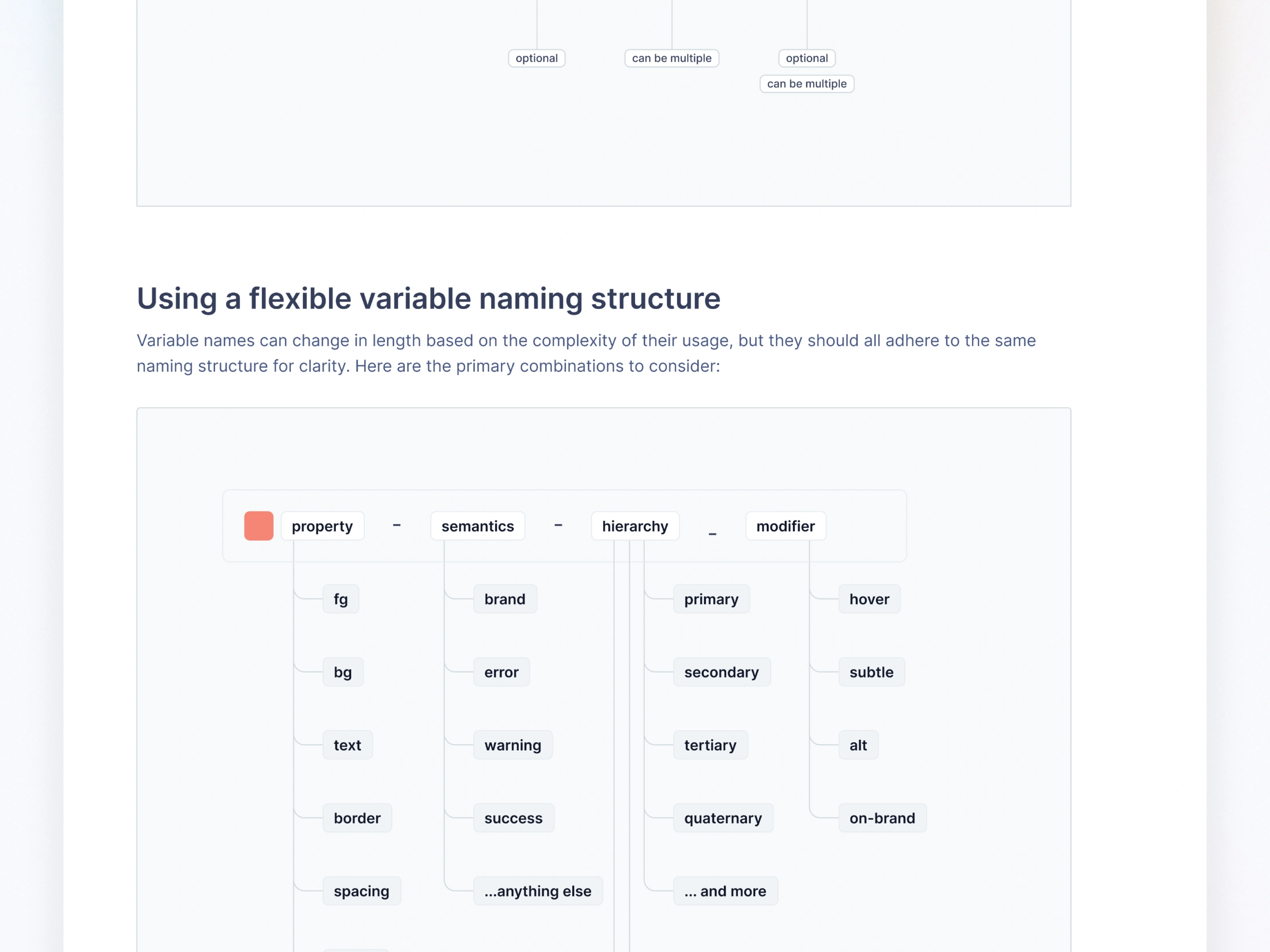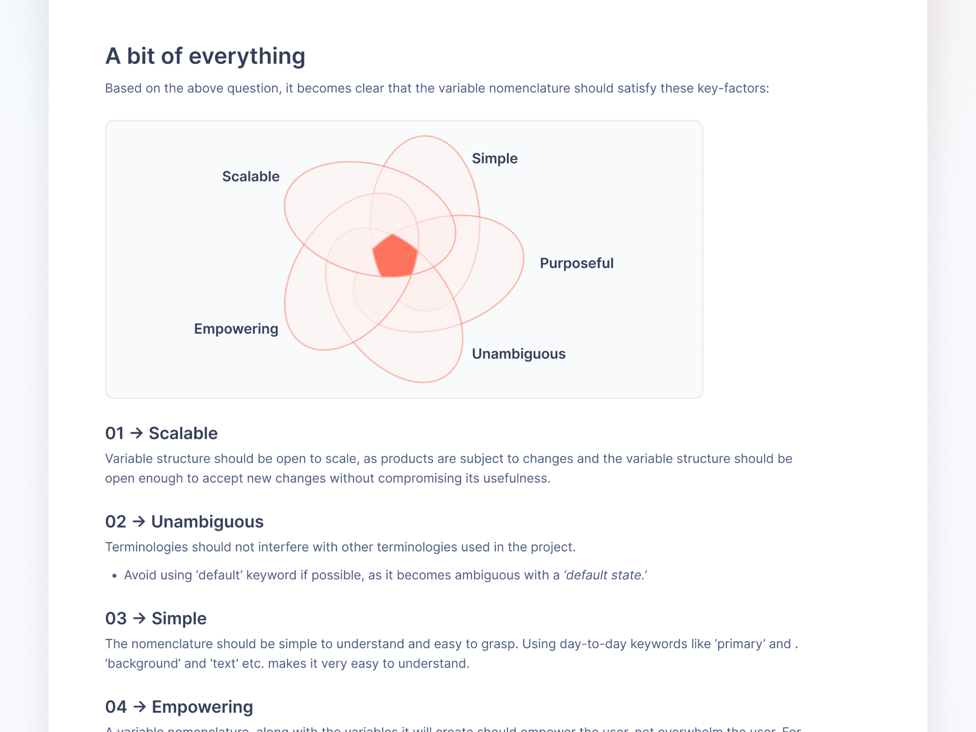 Scalable - Expandable variable and token structure that supports future products without breaking existing UI.