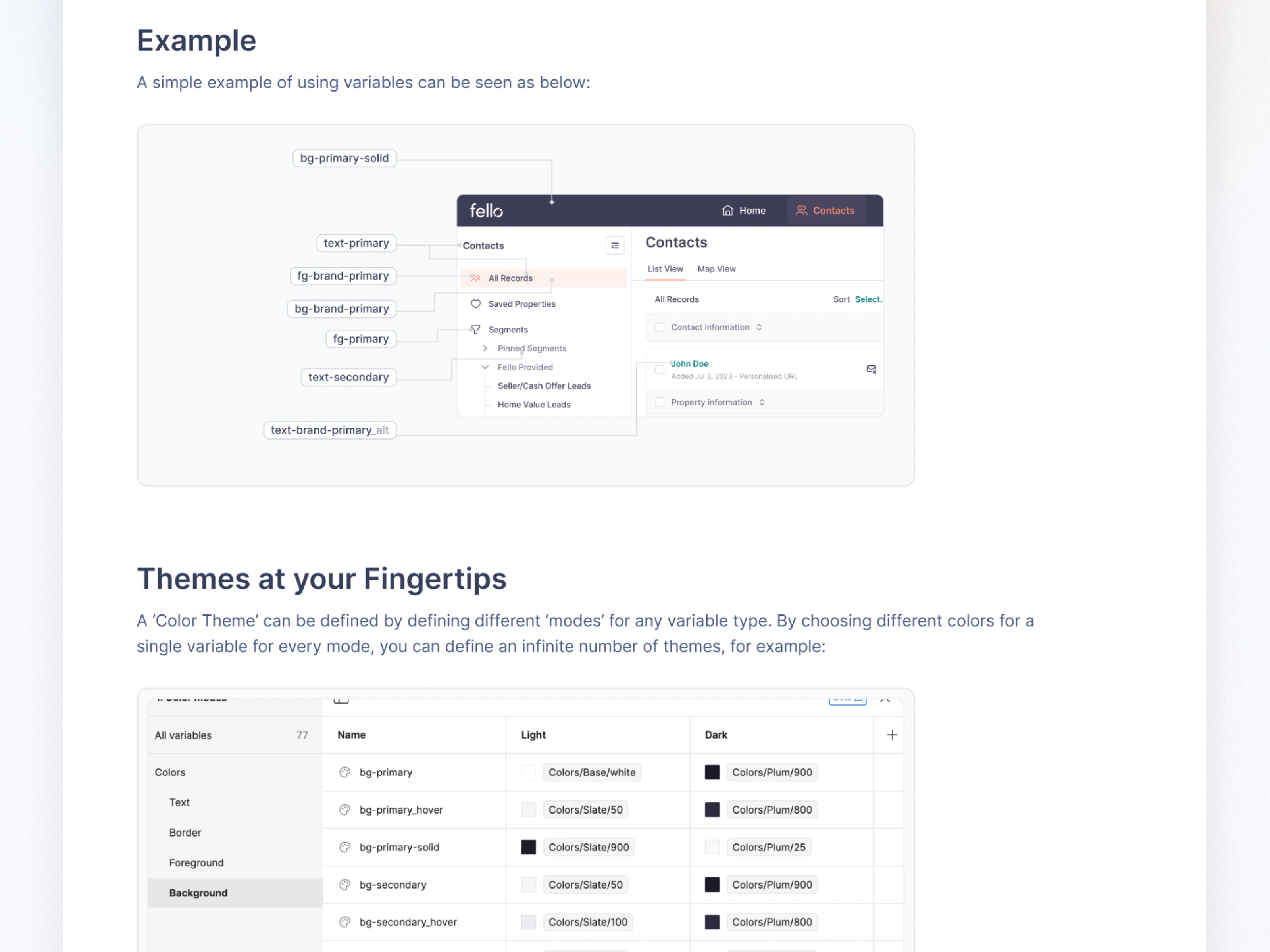 Theme-ready - Light/Dark mode toggle using variable modes.