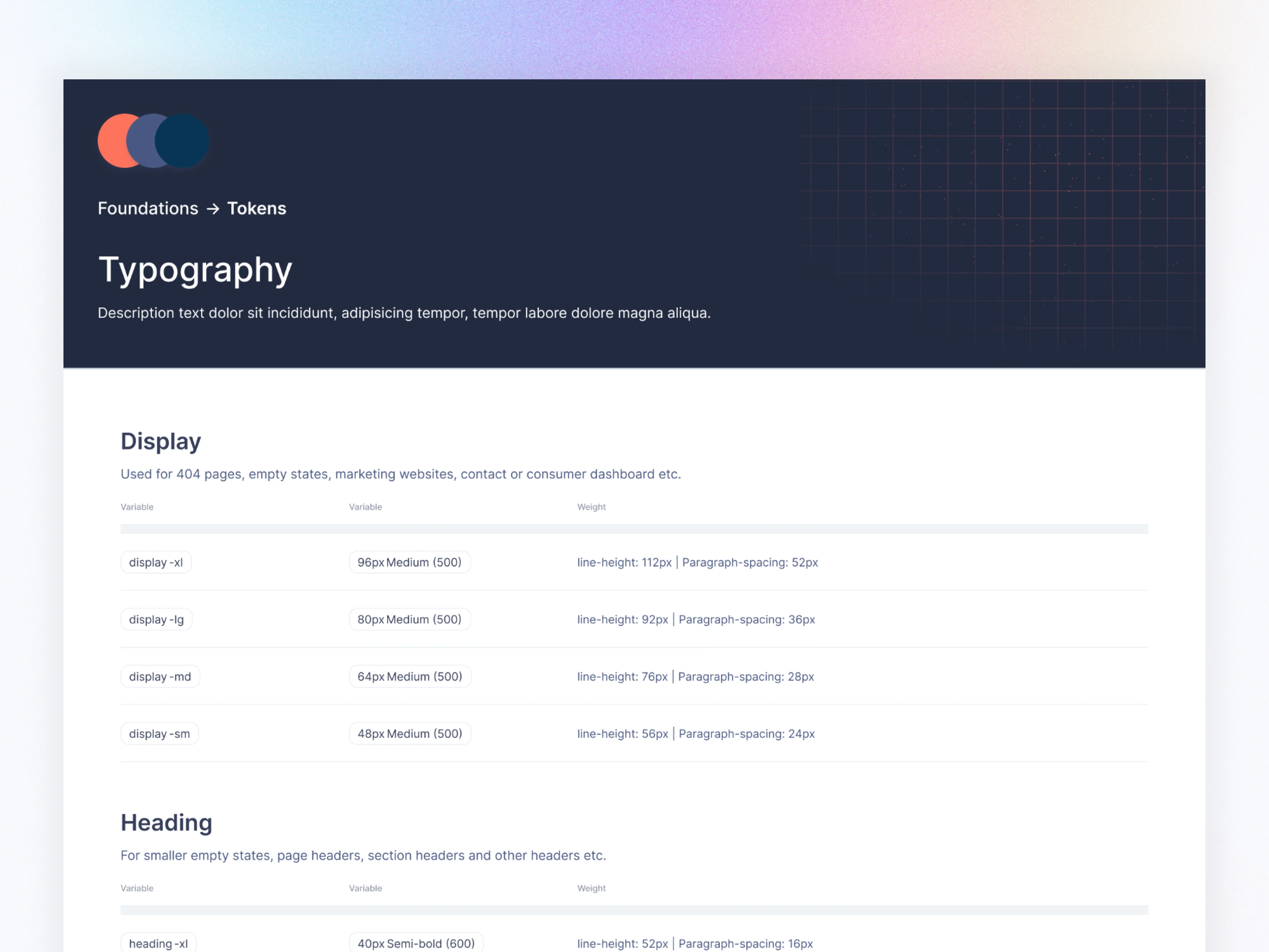 Each token includes font size, weight, line height, and paragraph spacing—making the entire system predictable.