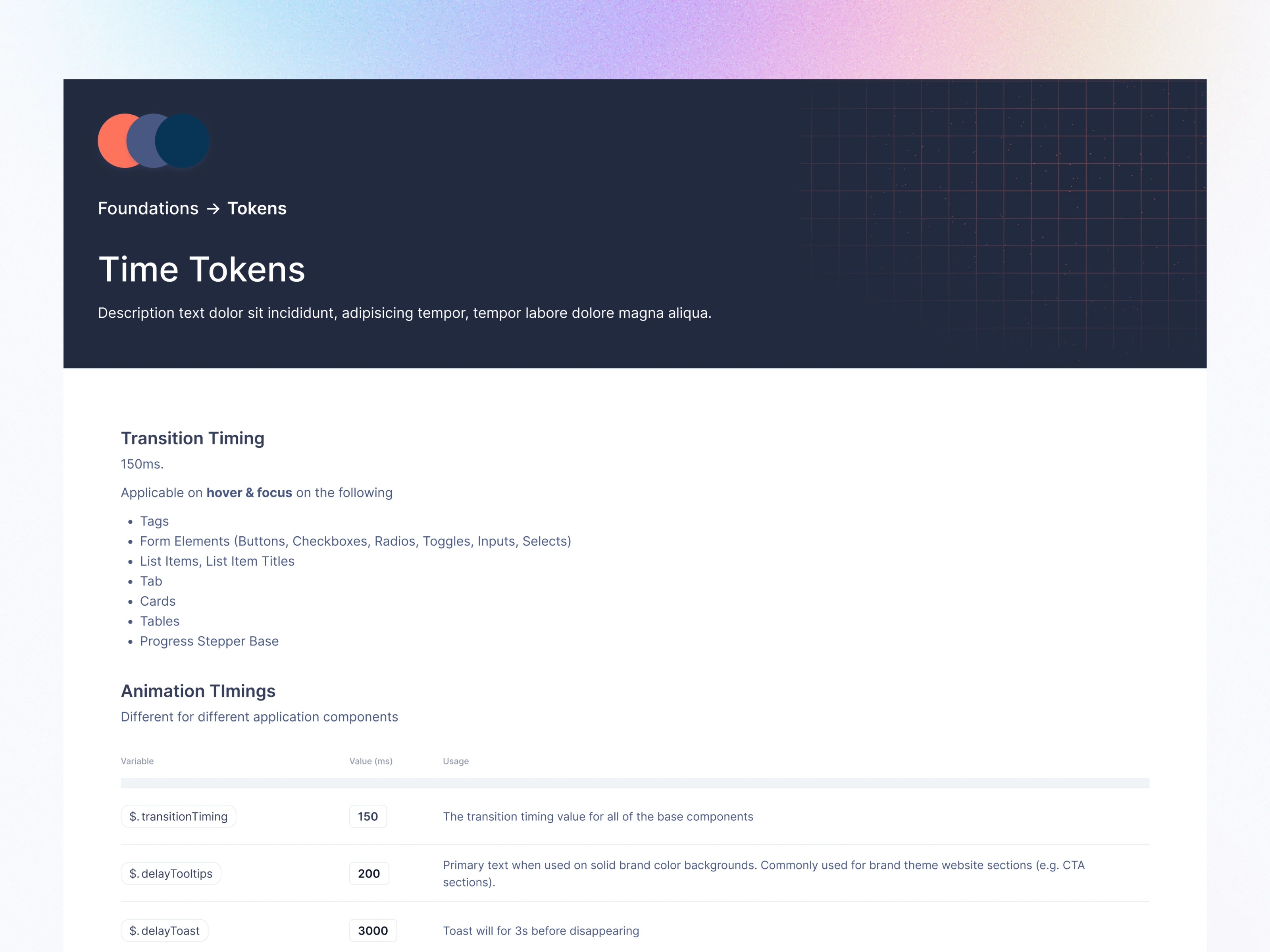 Tokens within all components