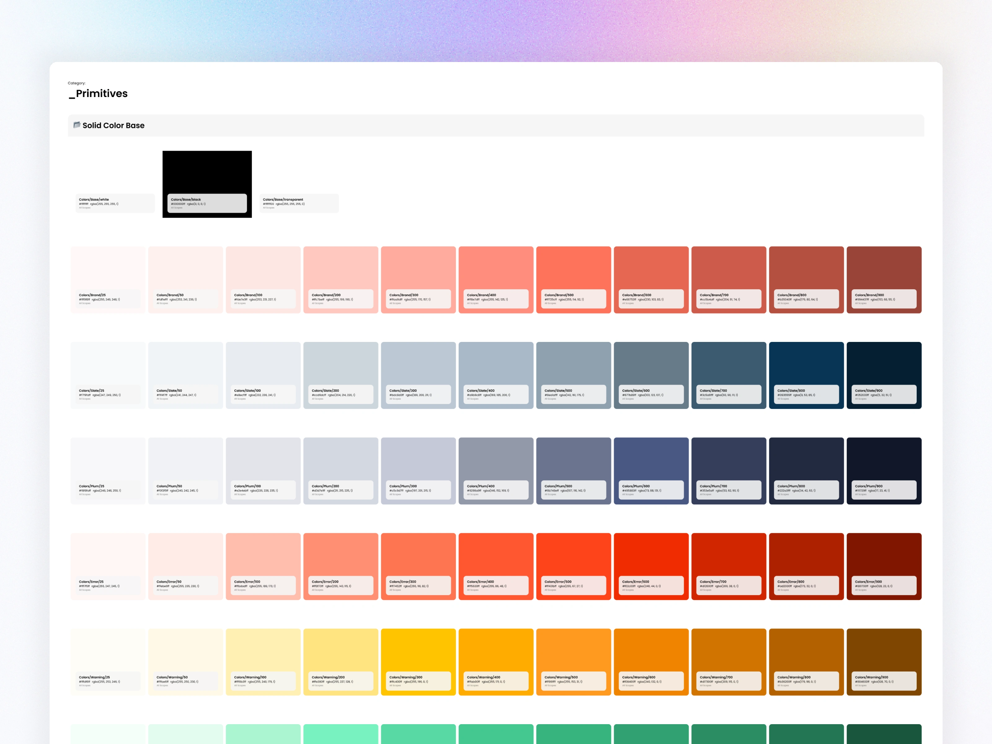 Primitive tokens: raw color values (e.g., Colors/Plum/900)