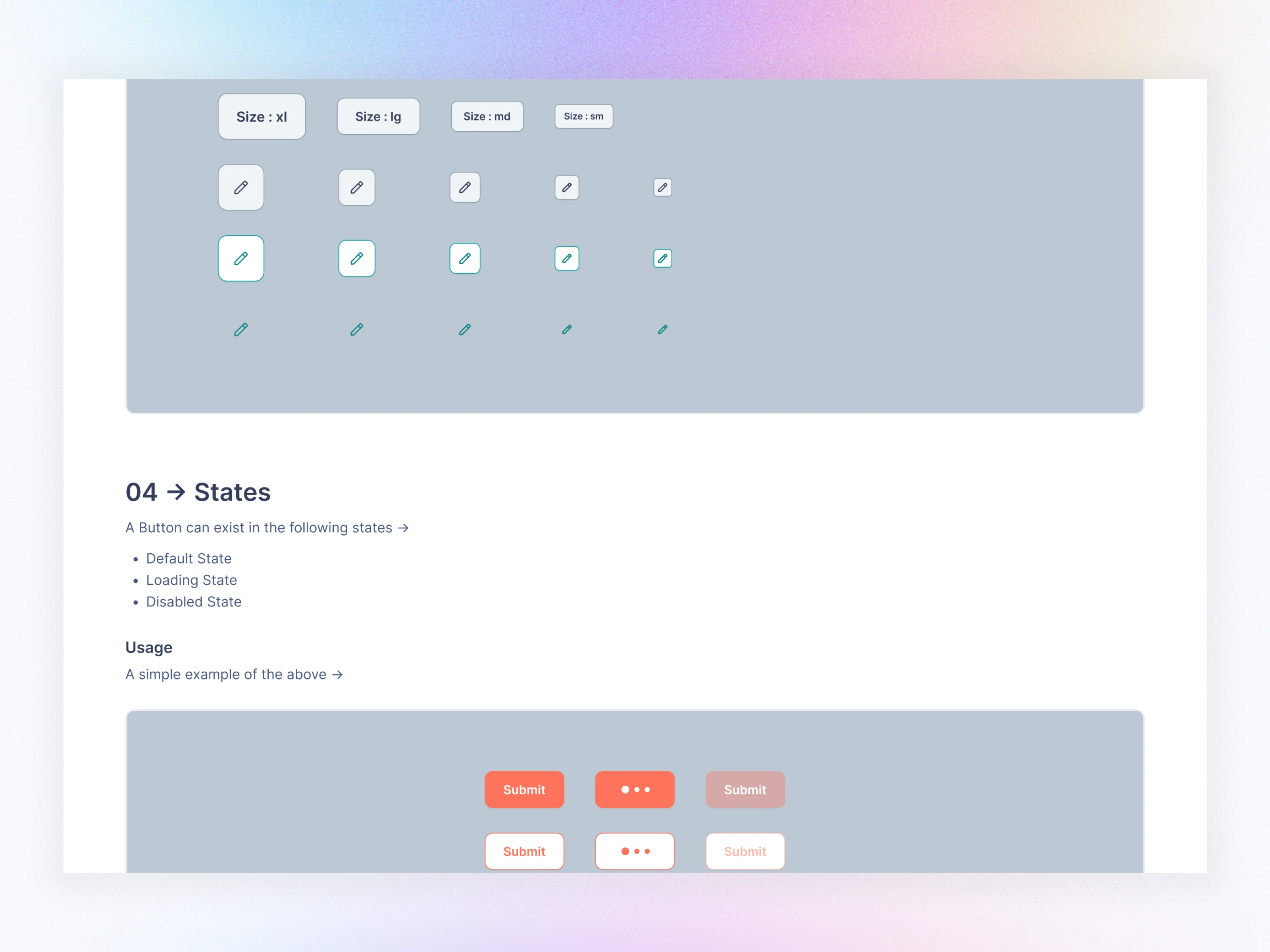 ✔ Variants (sizes, states, types)