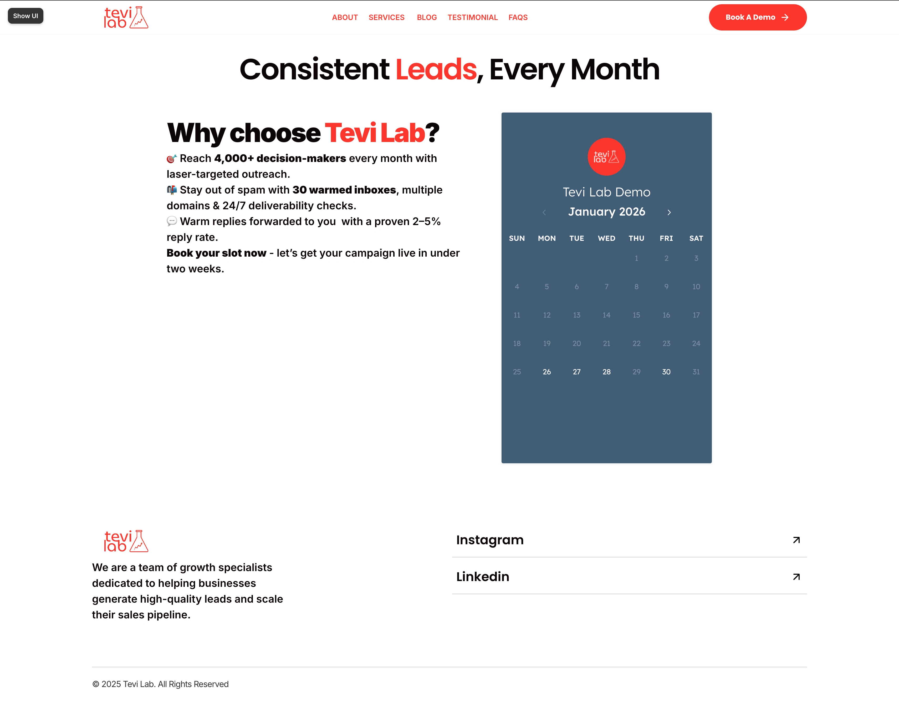 Tevilabs is a cold email marketing agency focused on generating consistent, high-quality conversations for B2B companies. The objective of this project was to design a website that clearly communicates results, builds trust quickly, and converts visitors into qualified leads.