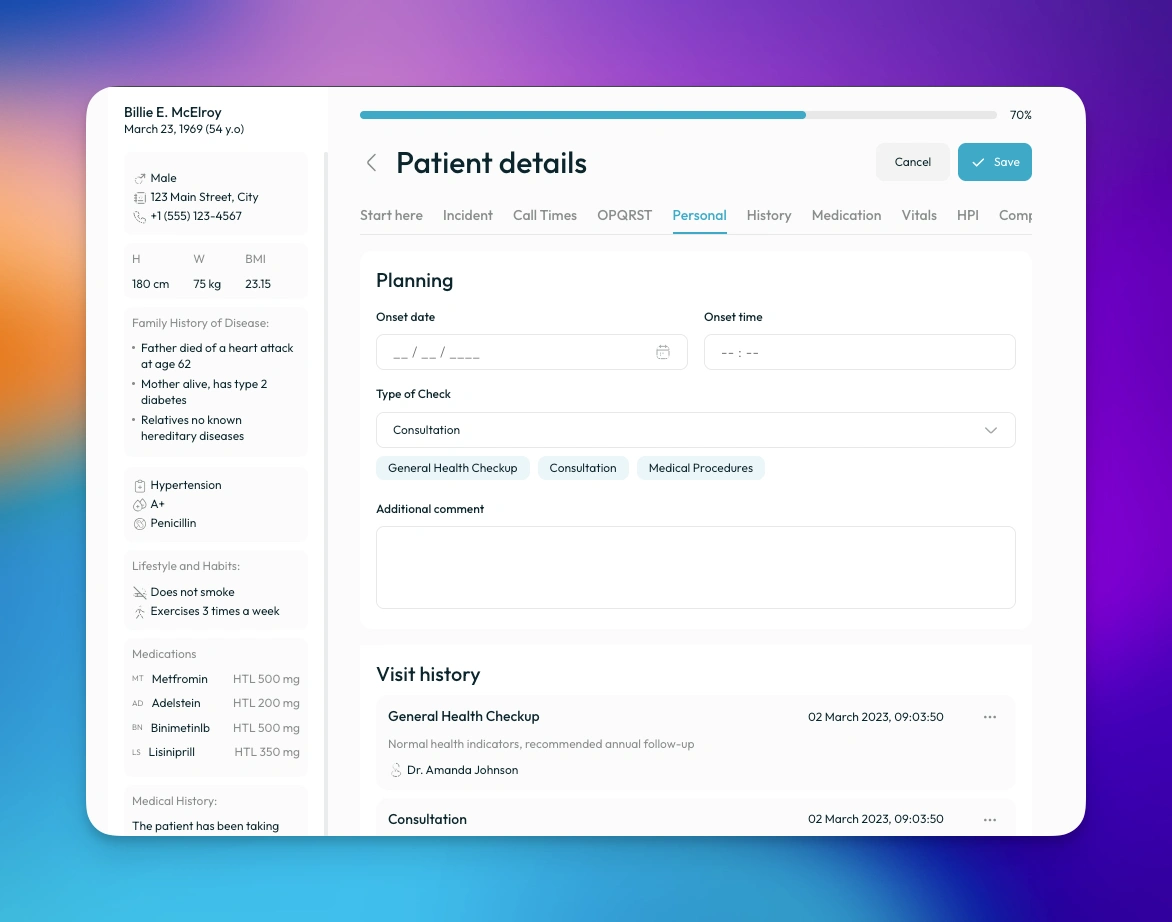 I focused on pixel-perfect implementation, consistent spacing, and clear information hierarchy to handle data-dense healthcare screens. Reusable UI patterns were used to ensure visual consistency across the application's sections.