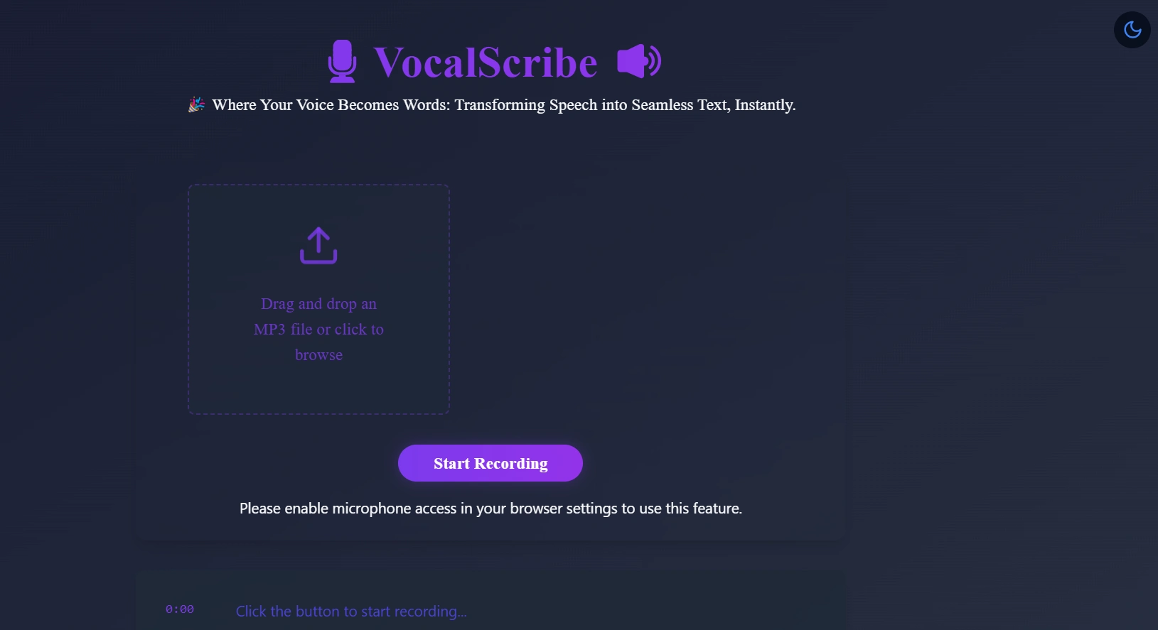 Developed VocalScribe, a web app for real-time audio transcription using React, TypeScript, and Tailwind CSS.