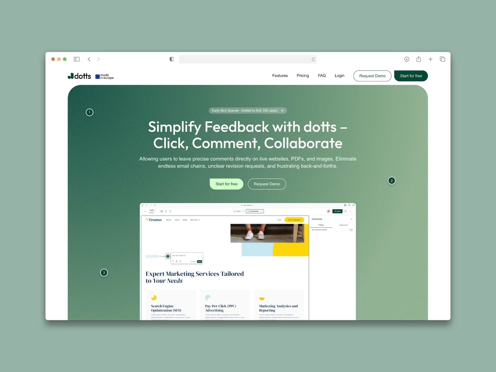 Just launched the website for dotts, a minimal and intuitive feedback tool that helps teams and clients leave visual comments directly on websites, images, or PDFs — all without the clutter.