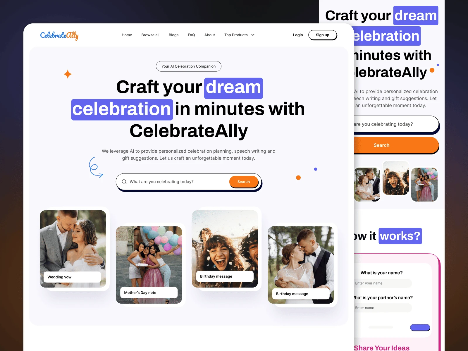 UX/UI Designer – crafted a friendly, AI-powered interface for custom celebration planning.