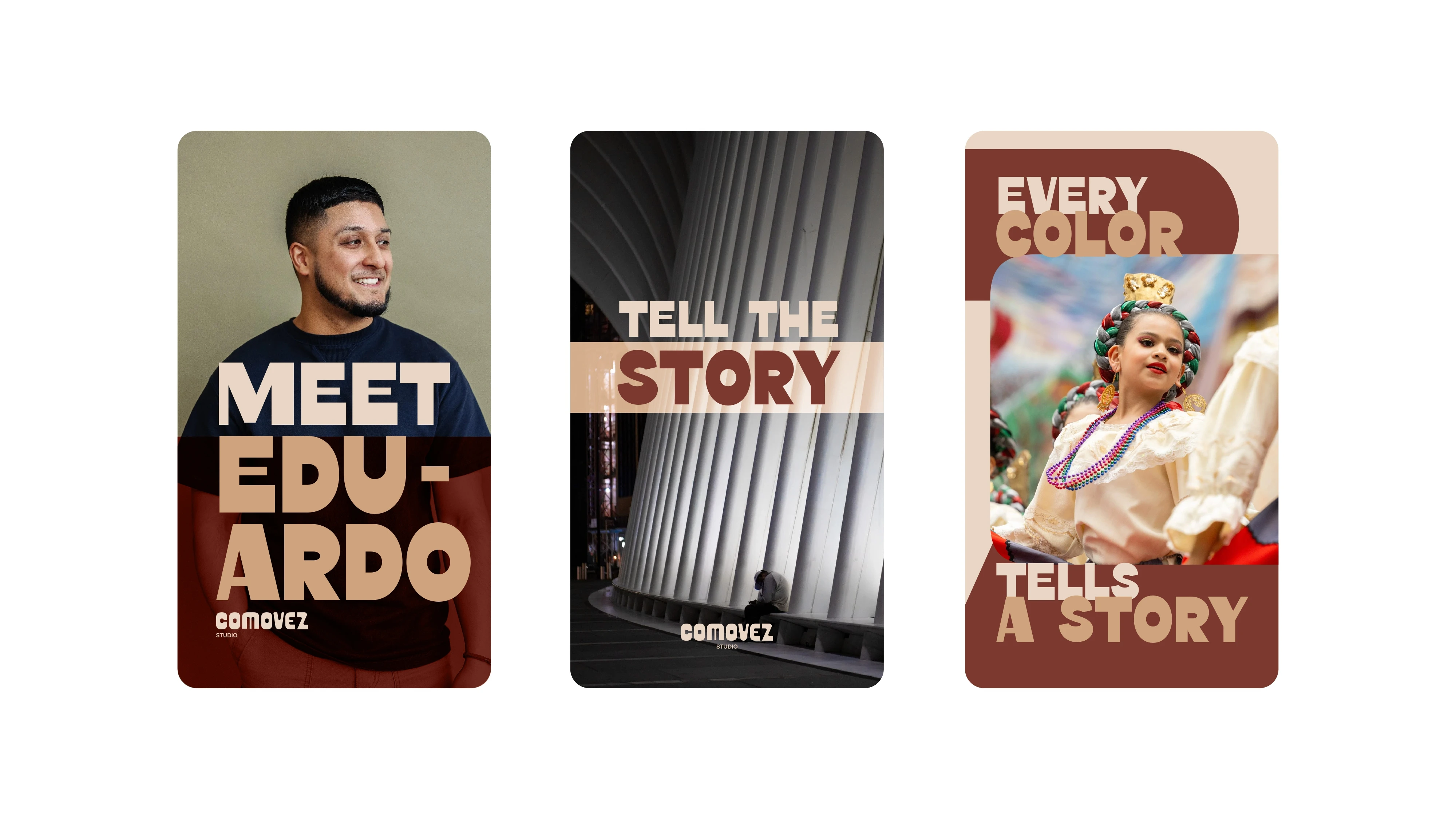 Designed Comovez Studio’s brand identity with a bold wordmark, warm earthy colors, and storytelling visuals for digital and print applications.