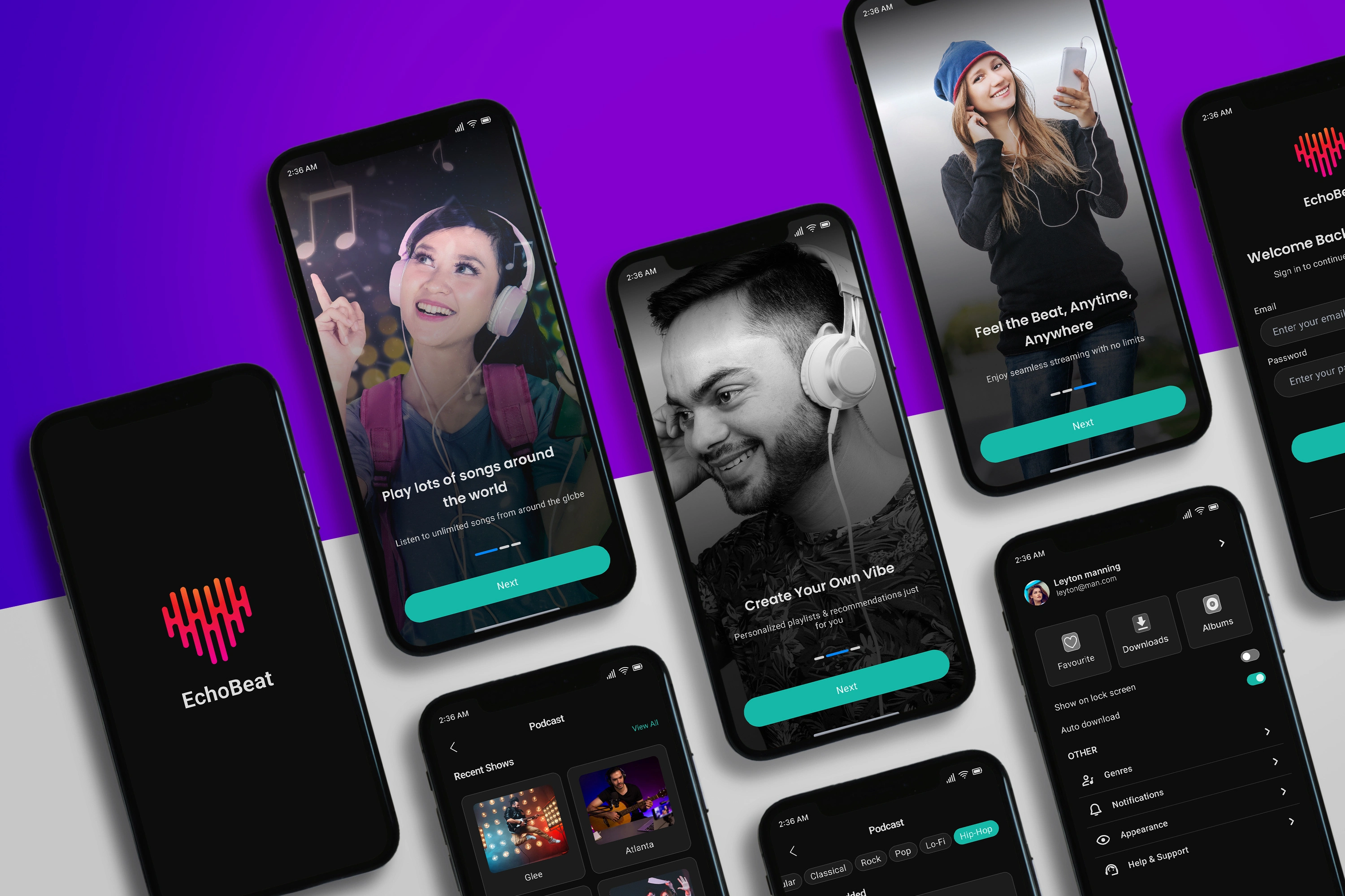 today we decided to share with you a modern, immersive music streaming app UI concept called EchoBeat with a clean dark mode interface. Everything from the acquisition process to music playback, every screen is designed to provide an intuitive, elegant and fluid user experience. Whether you’re listening to your favourite podcast or learning about trending artists, EchoBeat makes music come alive.