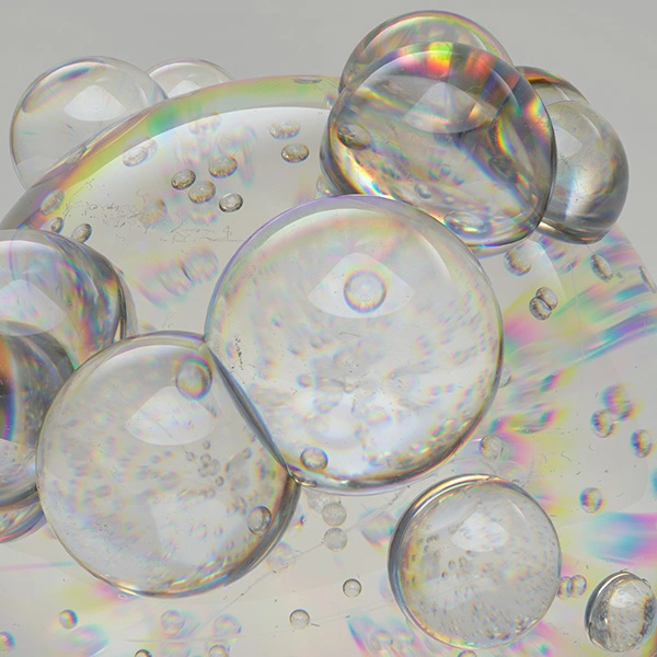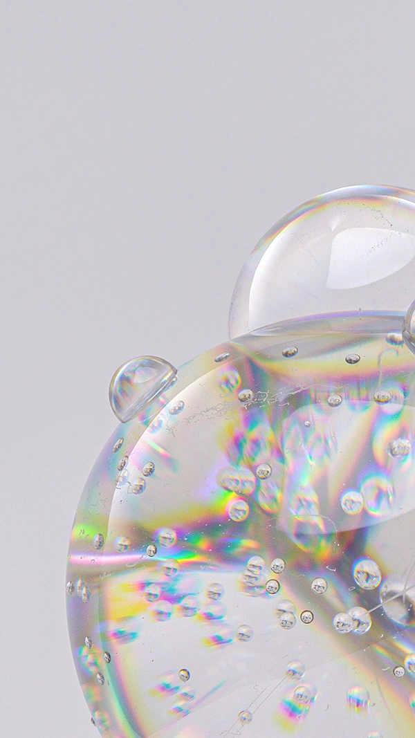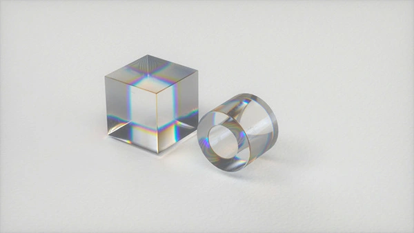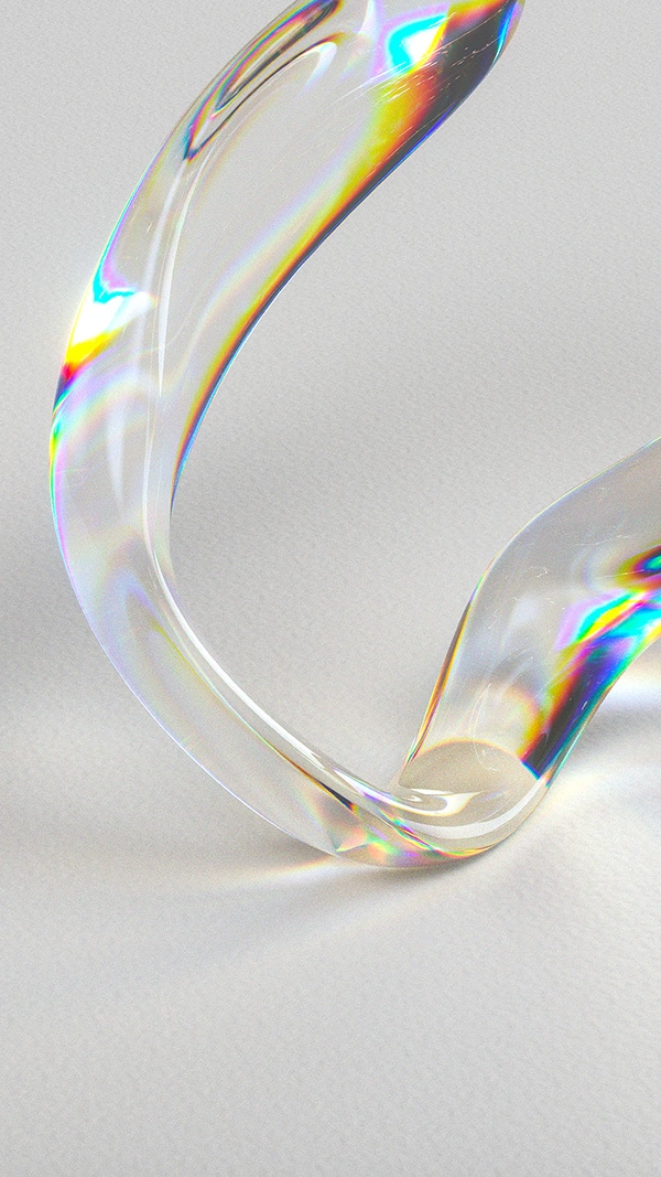 Refraction itself is a physical phenomena that describes the process of light changing its direction when traveling through a surface. Hence our vision of the objects behind the surface are distorted. In CG the term IOR describes this attribute and displays how strong the distortion is. During this series of experiments I combined that with chromatic dispersion where one colored light separates into its components of different wavelengths - colors.