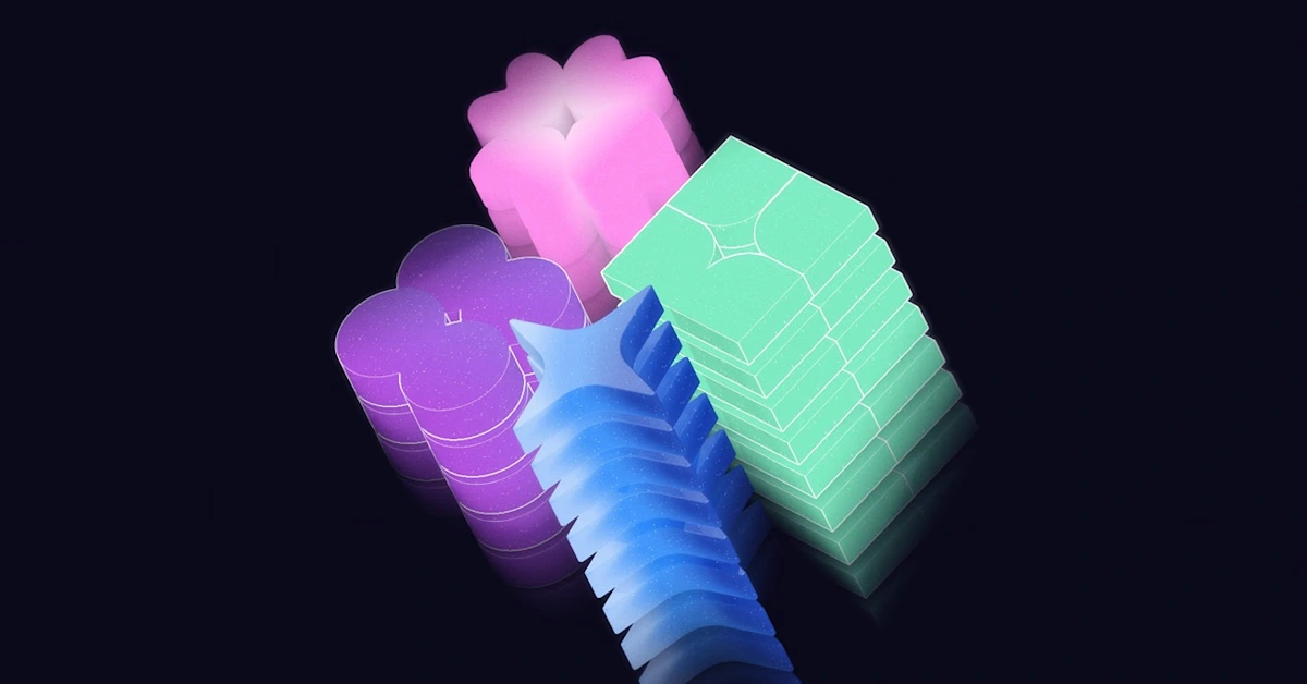 This 3D piece, "Abstract Shapes Clone," is a visually striking composition created using a tool like Spline, focusing on the powerful contrast of neon-bright colors against a deep black background. The design is built on the simple but effective principle of cloning and stacking various geometric and curved shapes, which are then given a vibrant, glowing texture. The key to its dynamic look is the use of motion blur applied to these repeated forms, making the static objects appear to be in rapid, luminous movement.