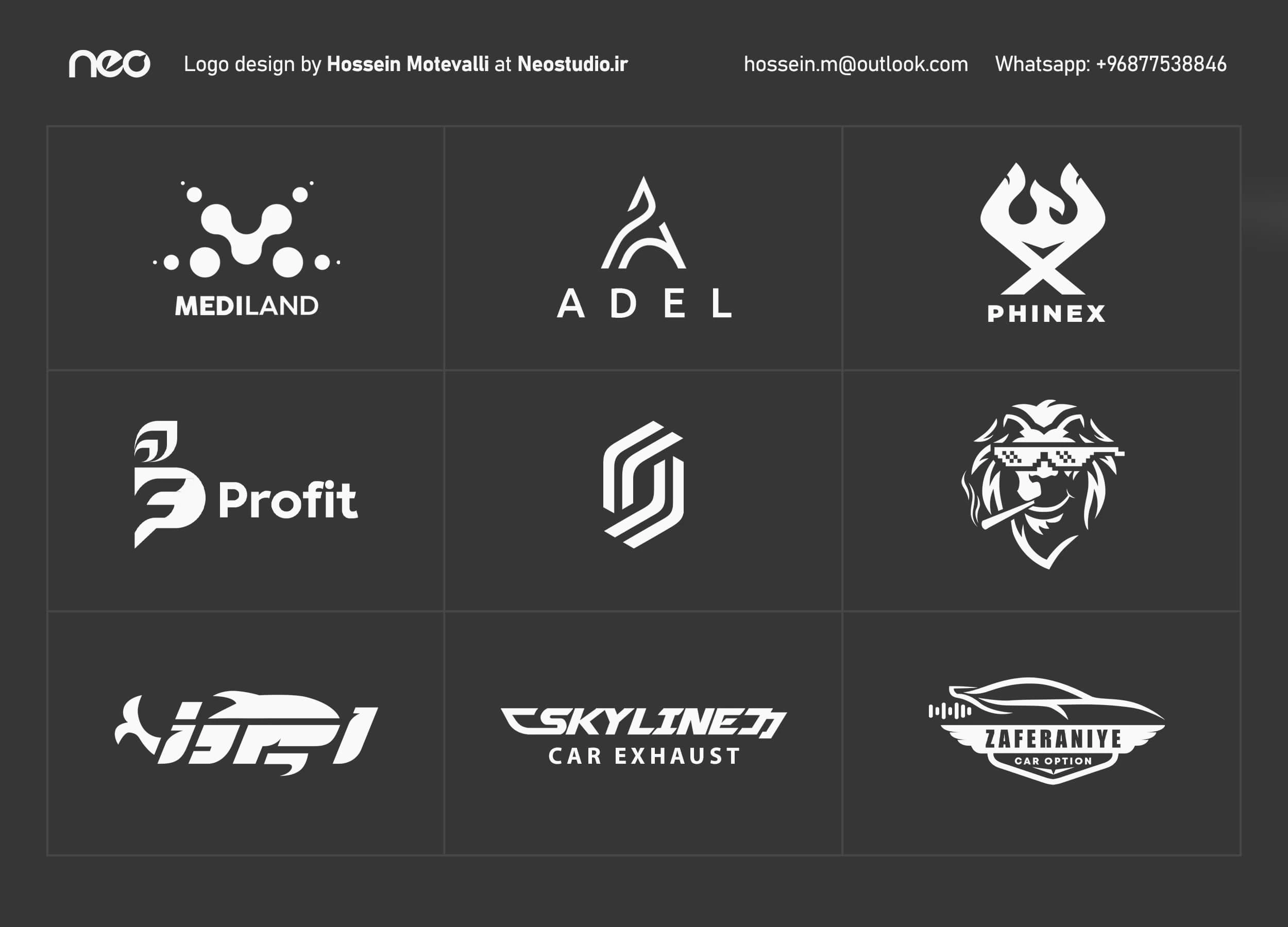Showcases of logo designs for various clients