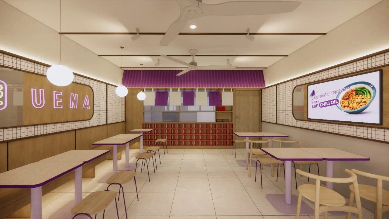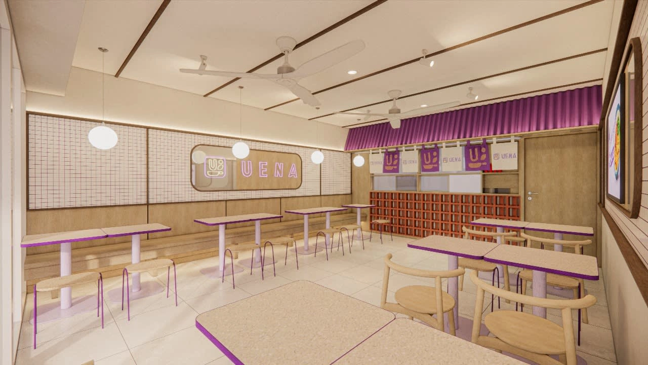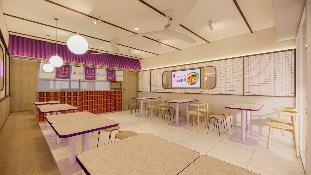 Designing a dine-in area for a food startup's outlet, aiming to create a comfortable and inviting ambiance for visitors as they enjoy their meals.