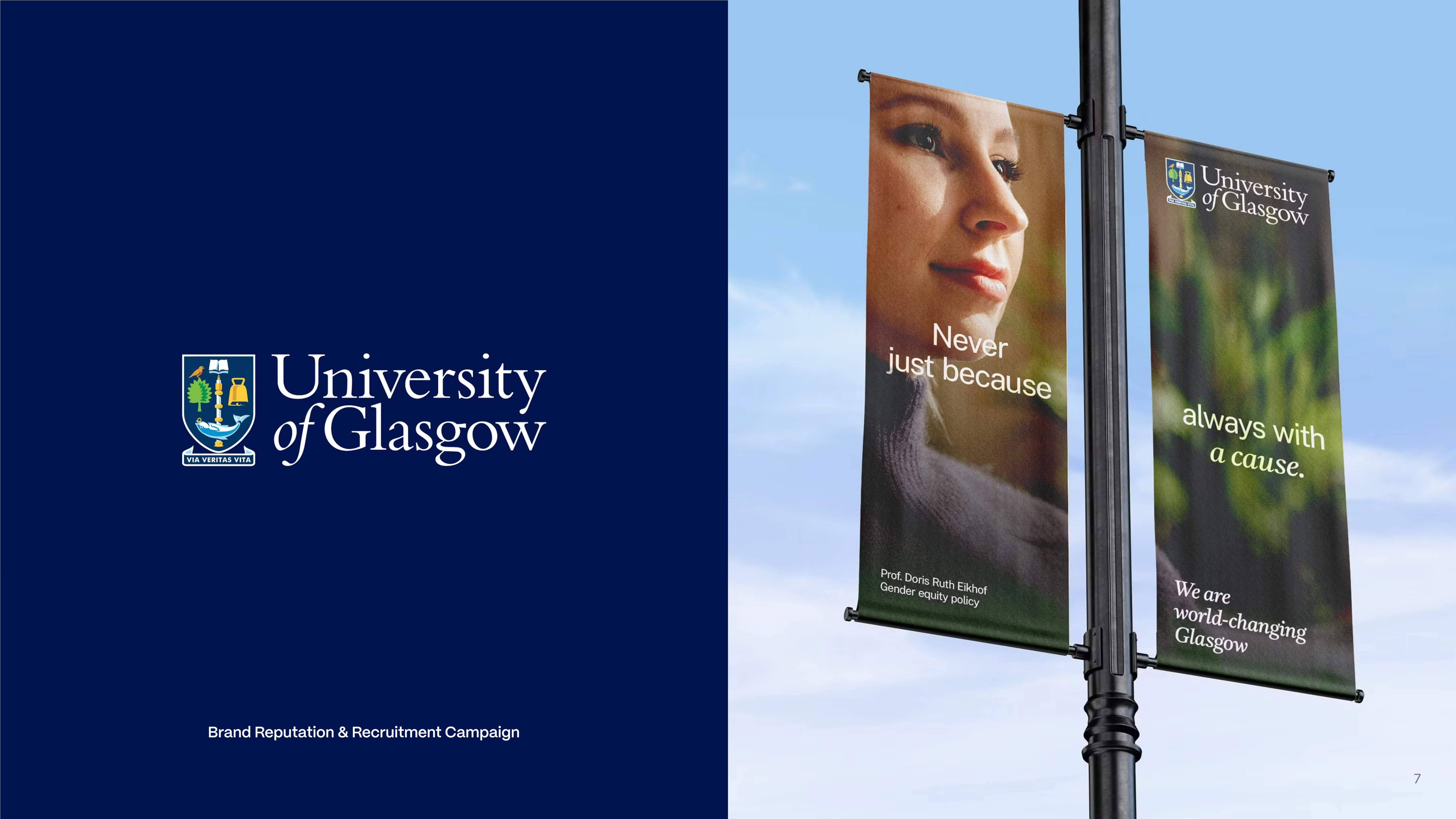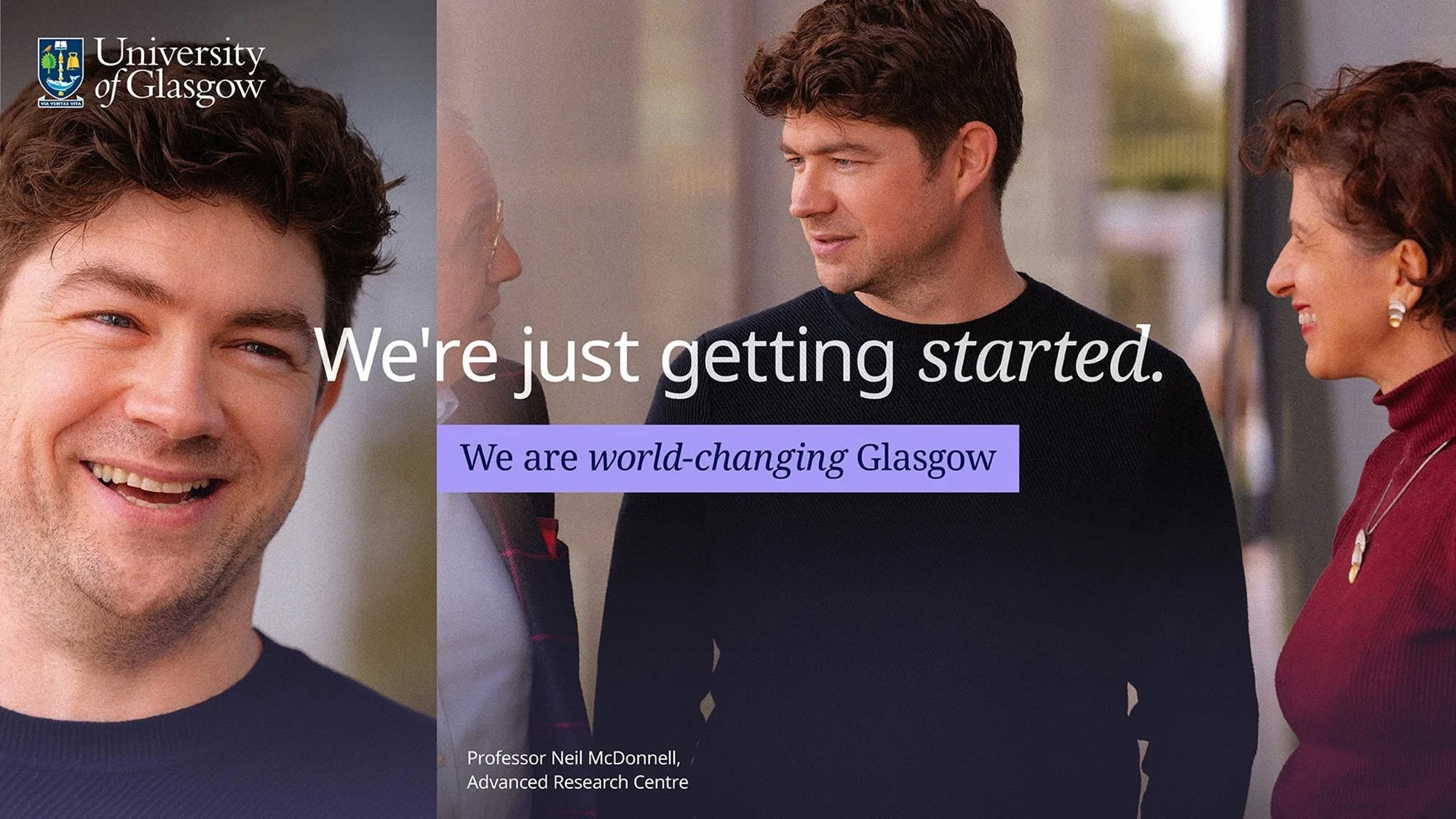 Glasgow faced a dual challenge: maintaining its status as a top-tier research institution while also attracting and engaging a new generation of students. The tagline 'World-Changing Glasgow' captured this ambition, but it wasn’t connecting emotionally. It needed more impact – something that resonated across audiences, from prospective students to global partners and the media.