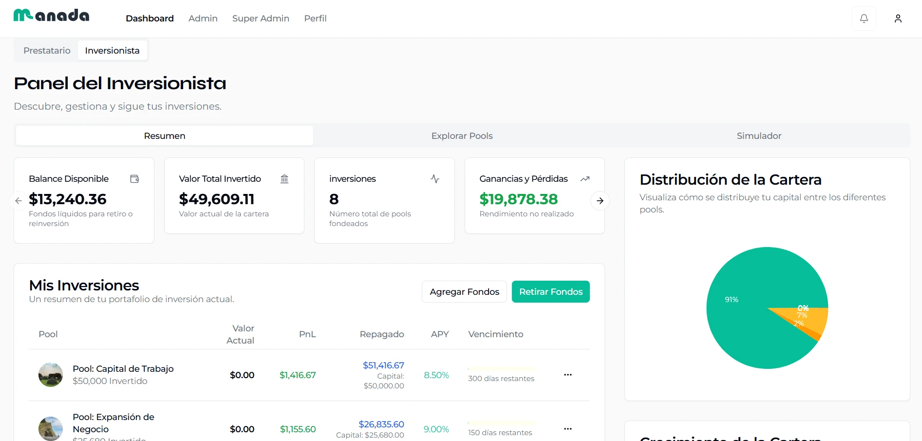 we designed and developed Manada finance's crowdfunding platform. Manada is a funding platform aiming to bridge the 180BUSD credit gap in mexican SMBs.