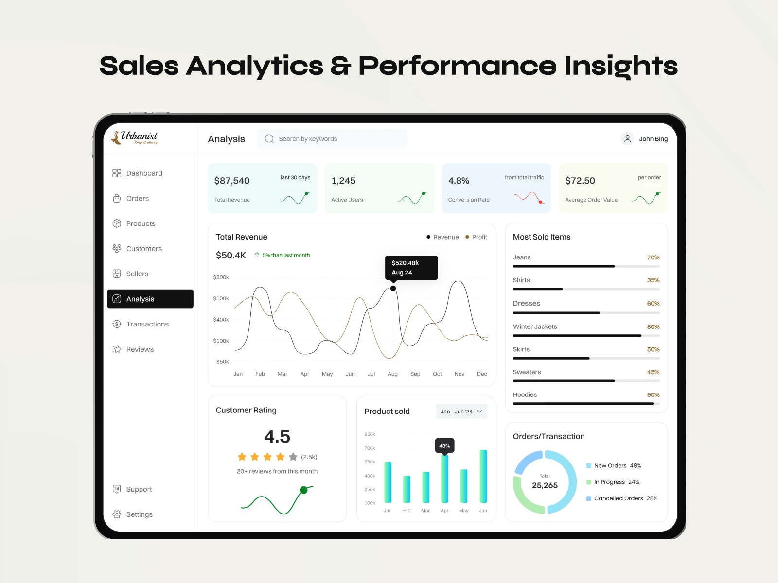 This project involved designing a modern E-commerce Admin Dashboard to help businesses manage sales, orders, products, customers, sellers, and analytics from a single, intuitive platform.