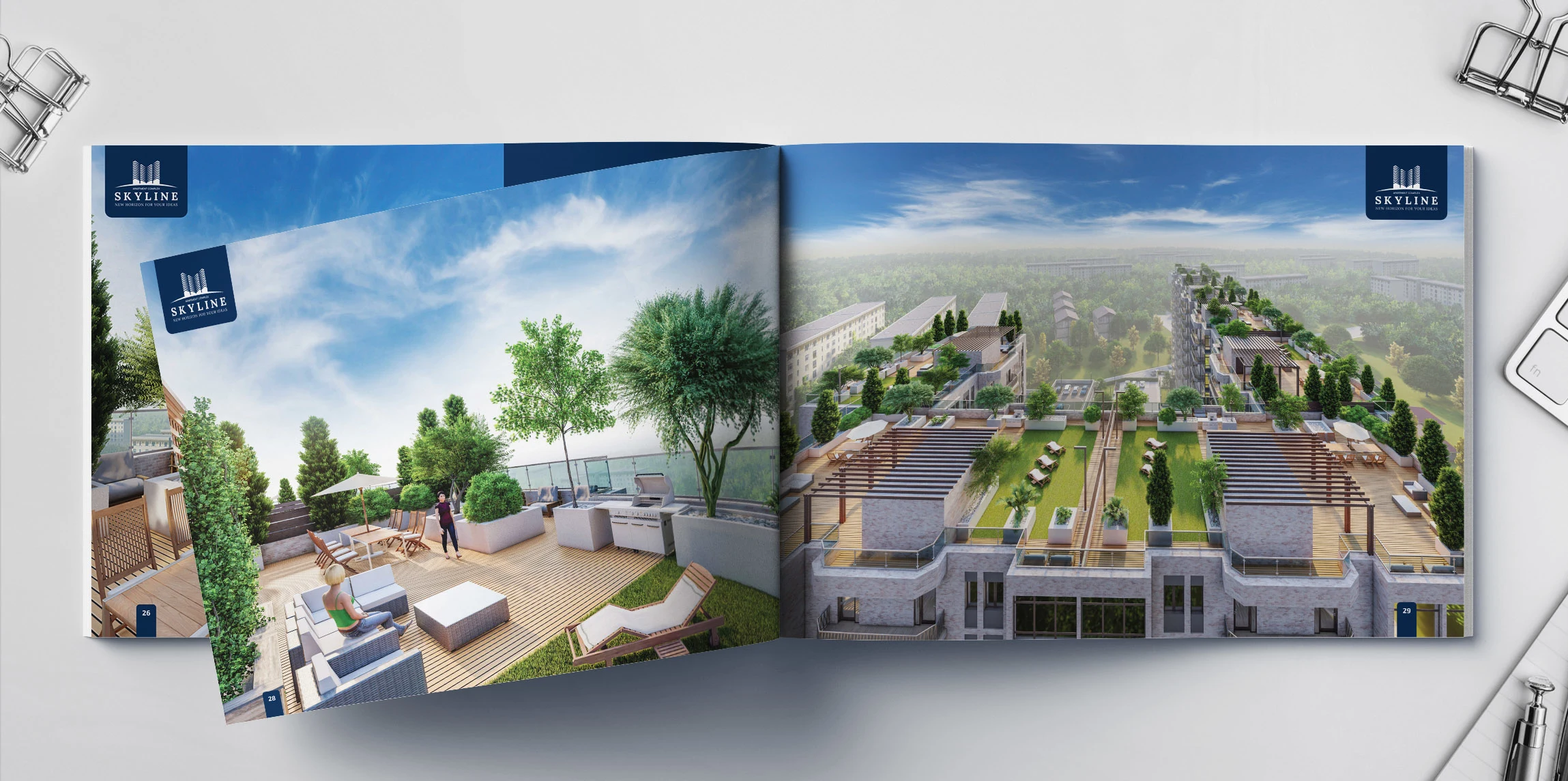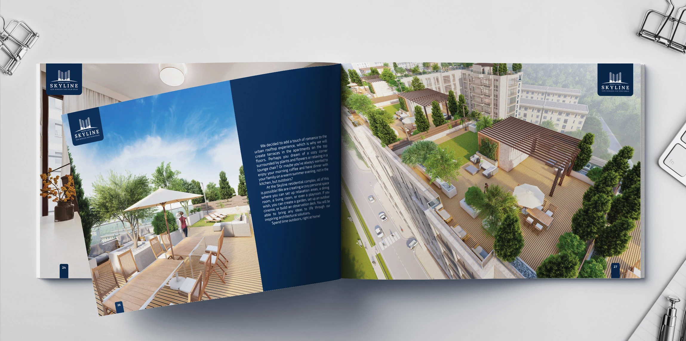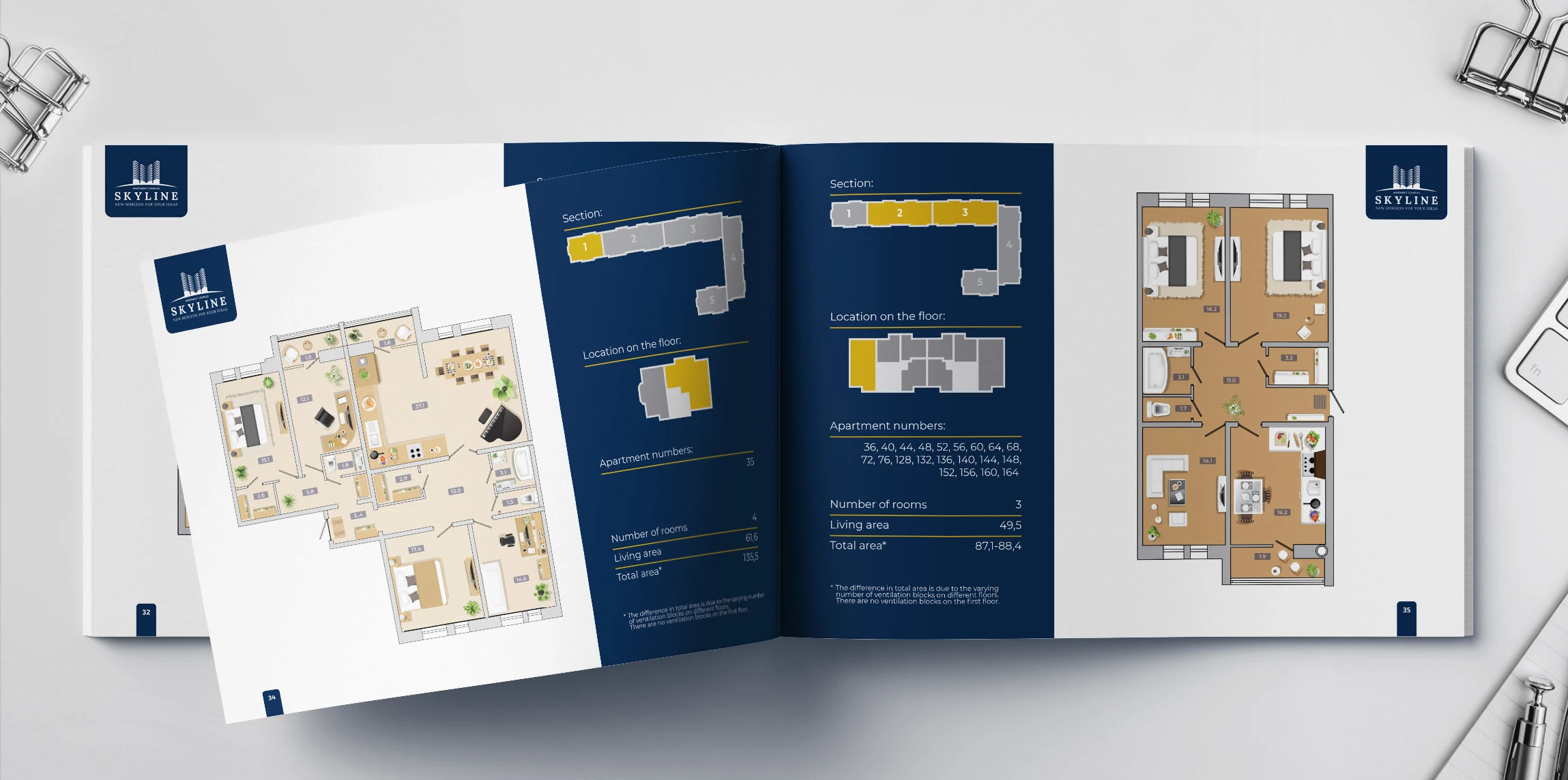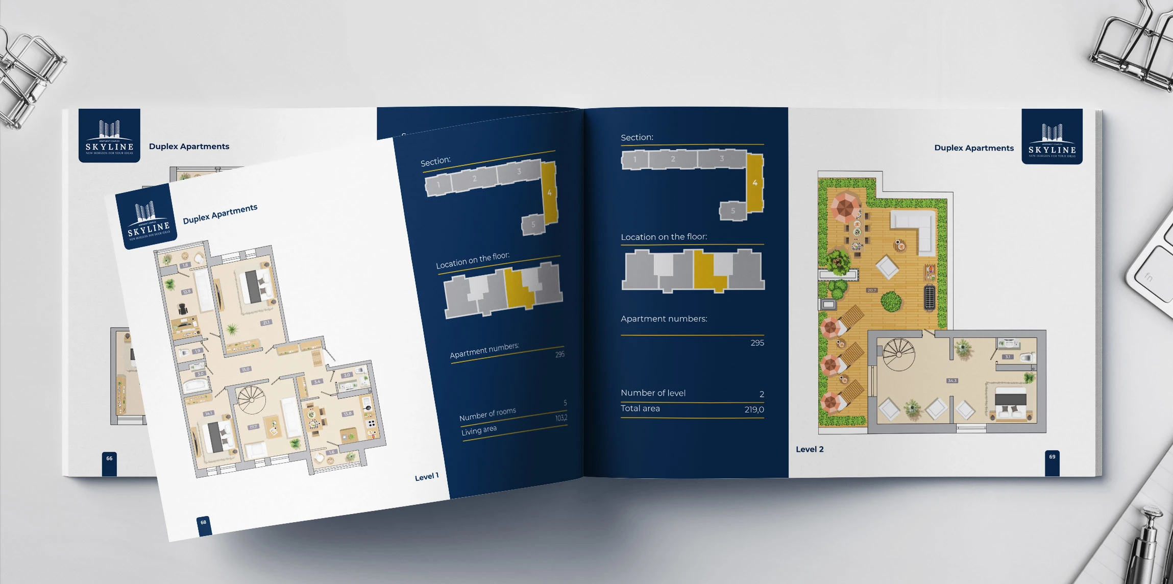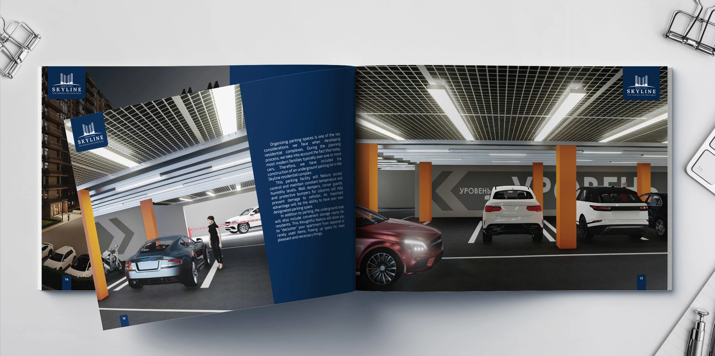 The client asked me to take the lead on the design. We started by creating a logo for the residential complex. Later, the client provided visualizations, but they were not very eye-catching. To enhance the presentation, I brought in a 3D designer who created striking visuals. I also enlisted a copywriter to craft compelling texts.