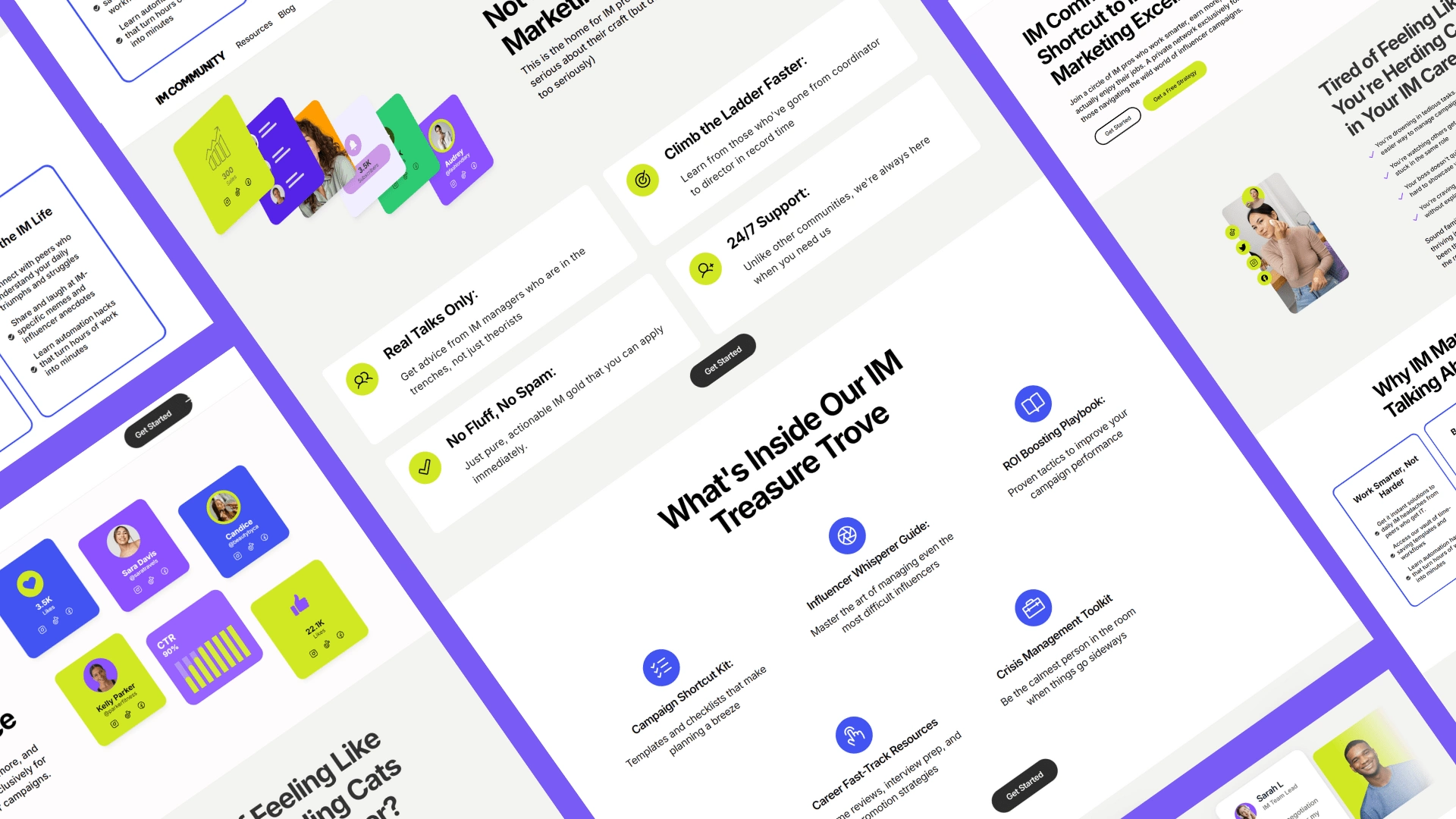 The design focused on a clean, modern aesthetic with bold typography and dynamic imagery, emphasizing accessibility and professionalism. Key features include a prominent hero section to immediately convey the community’s mission, strategically placed call-to-action buttons to drive engagement, and visually distinct sections that outline community benefits and resources. The color palette and iconography were chosen to evoke a sense of energy, inclusivity, and fun, making the site both appealing and easy to navigate.