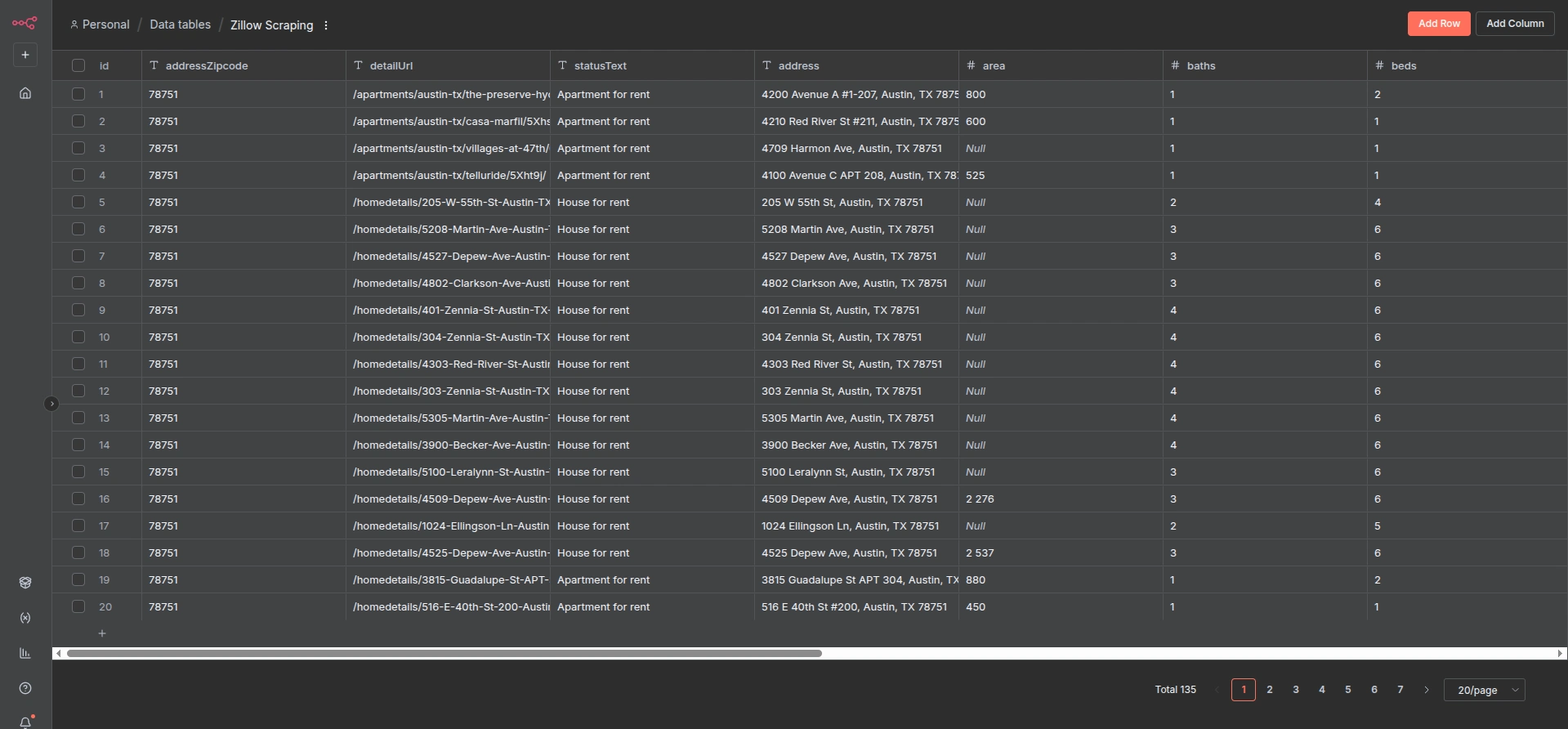 This project uses n8n and Python to scrape rental listings from Zillow on a regular basis, collecting up-to-date data for analysis. It includes IP rotation and proxy support to reduce the risk of getting blocked. The scraped data is periodically saved to n8n data tables, Google Sheets, and other storage options for easy access. An analytics dashboard is currently in development to help visualize trends and insights from the rental market. The system is designed to run automatically, making it easy to track changes over time and support data-driven decisions.