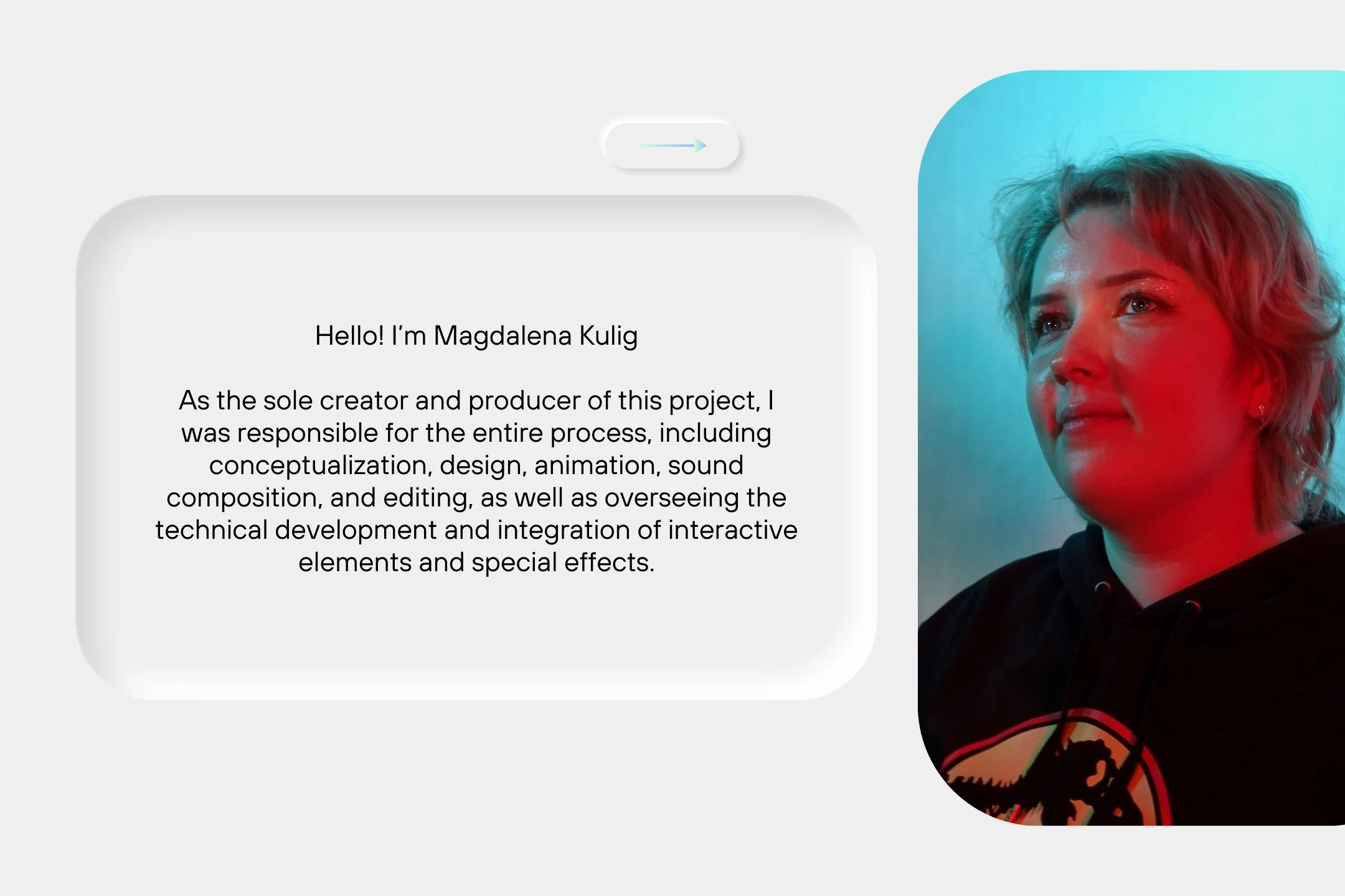 As the sole creator and producer of this project, I was responsible for the entire process, including, design, animation, sound composition, and editing.