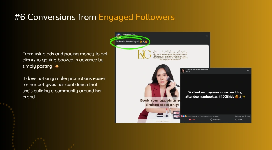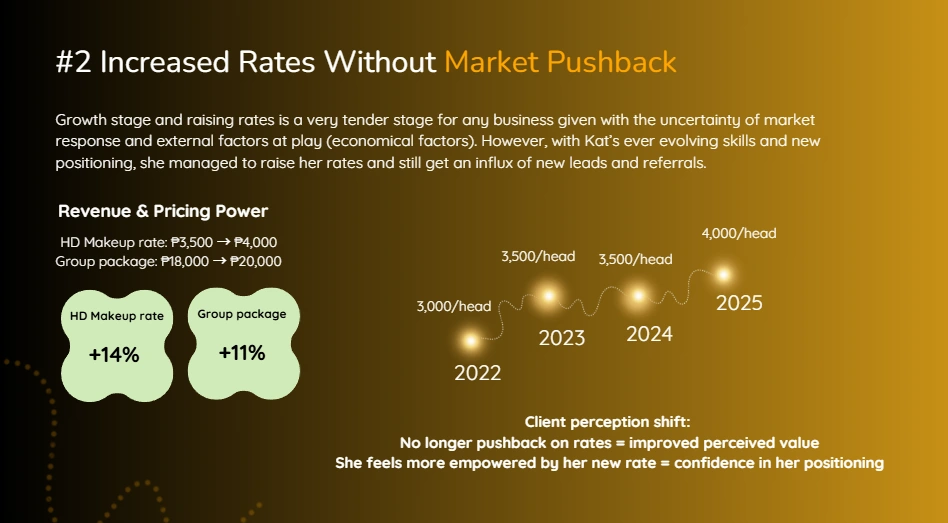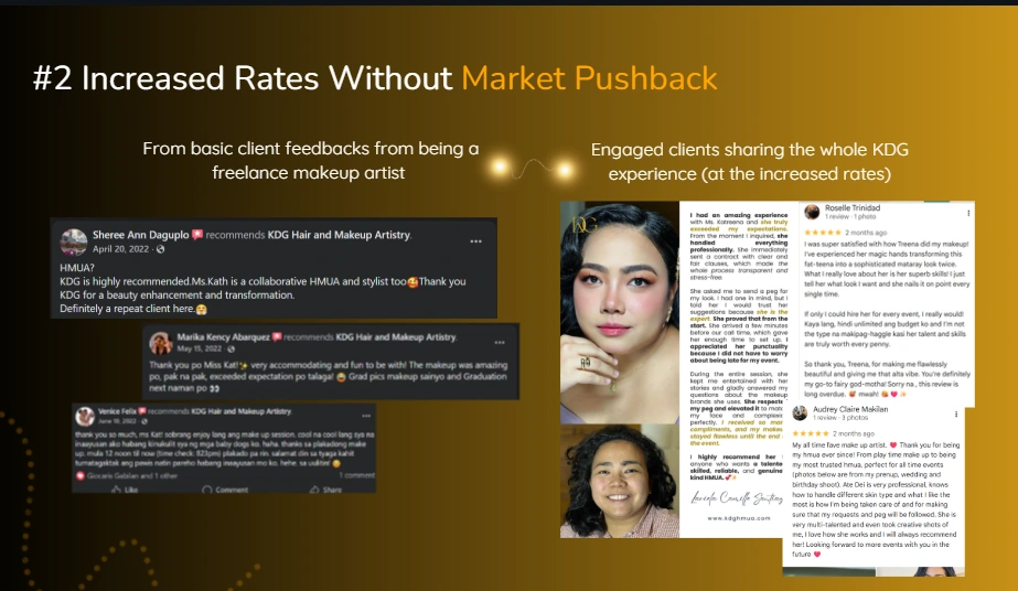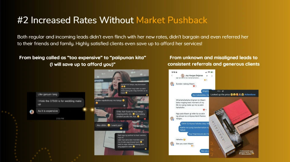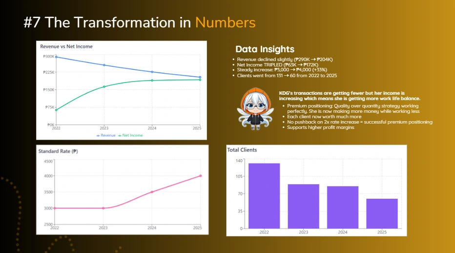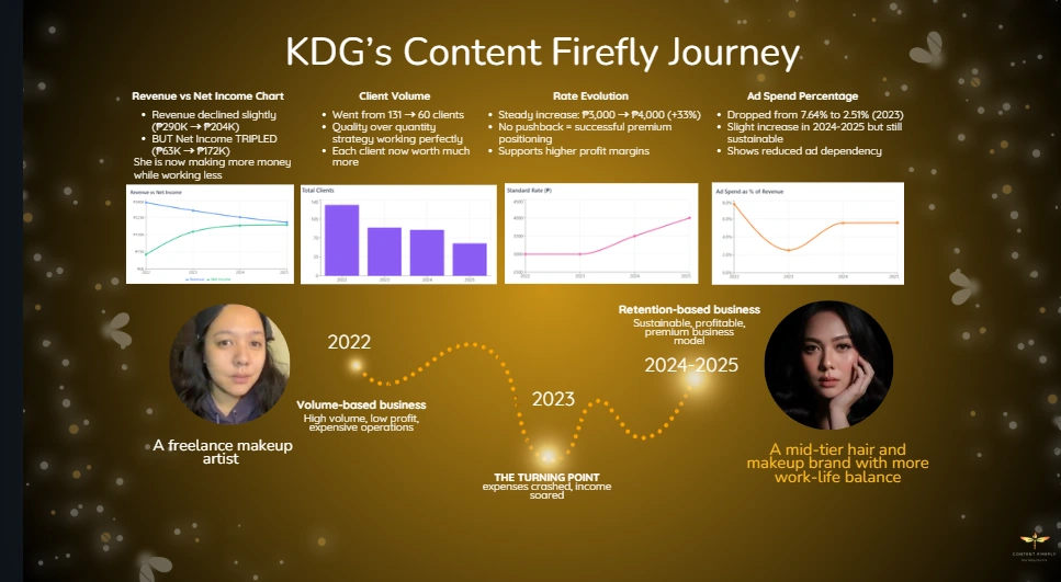 Like Katreena, who went from 131 exhausting clients making ₱63K to 60 quality clients making ₱192K—tripling her income while freeing up 6 bookings per month for her personal life and full-time job.