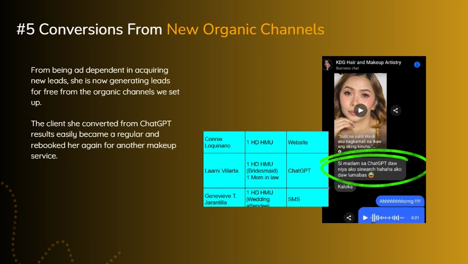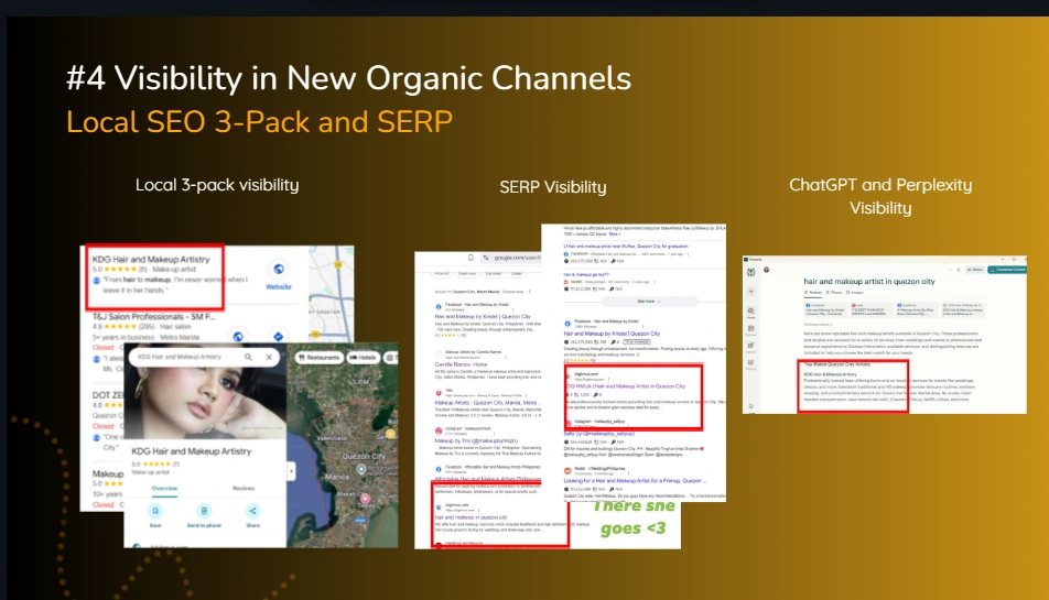 Optimized her visibility through Local SEO, Google 3-Pack, TikTok, and AI search