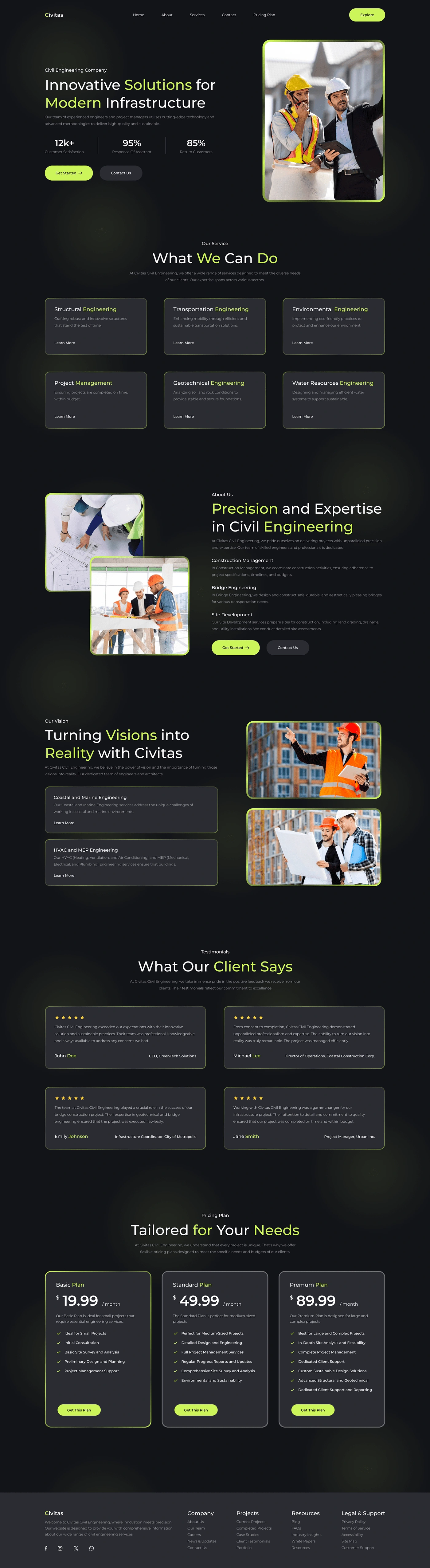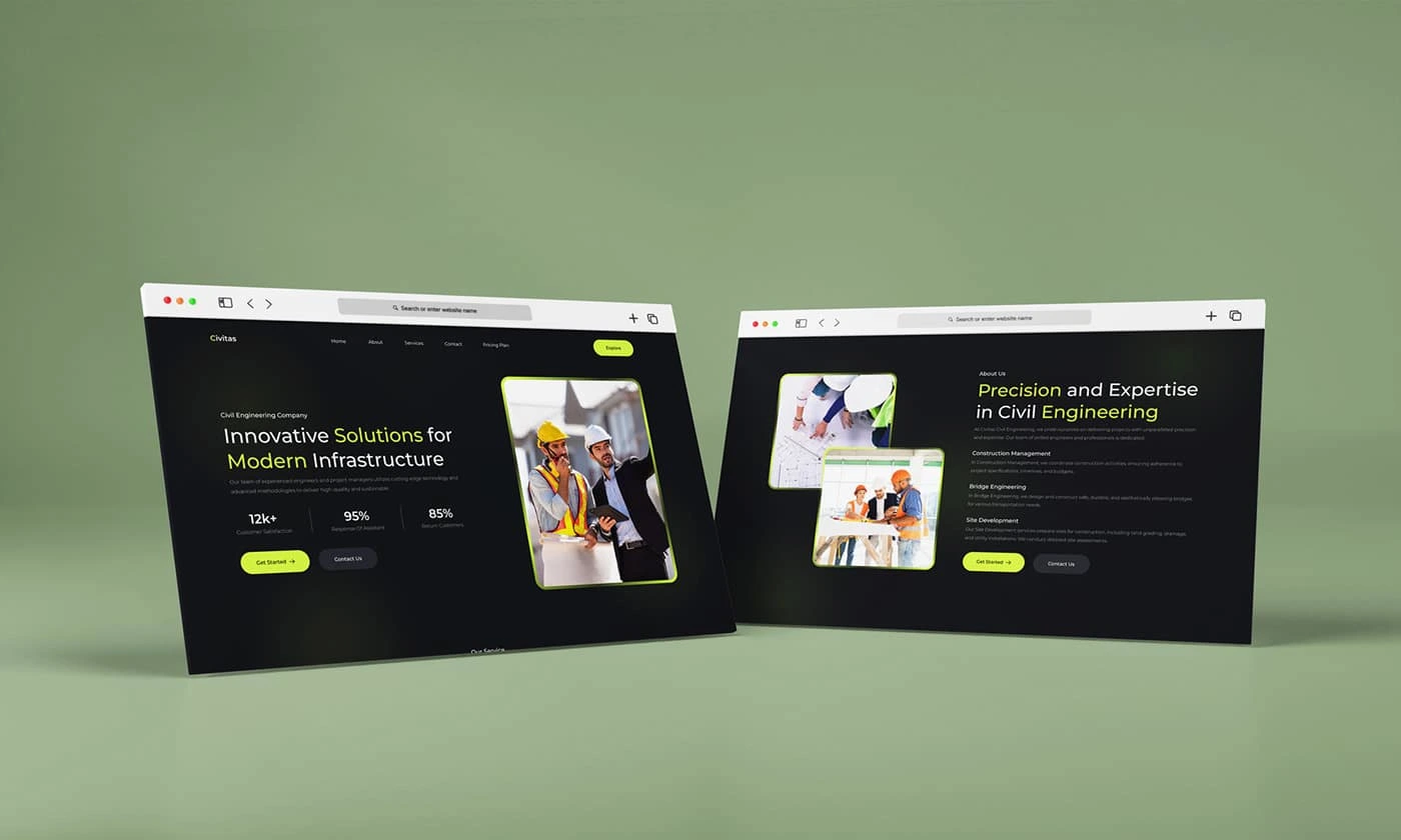 The Civitas website project combines sleek, modern design with a professional aesthetic suited for a civil engineering company.